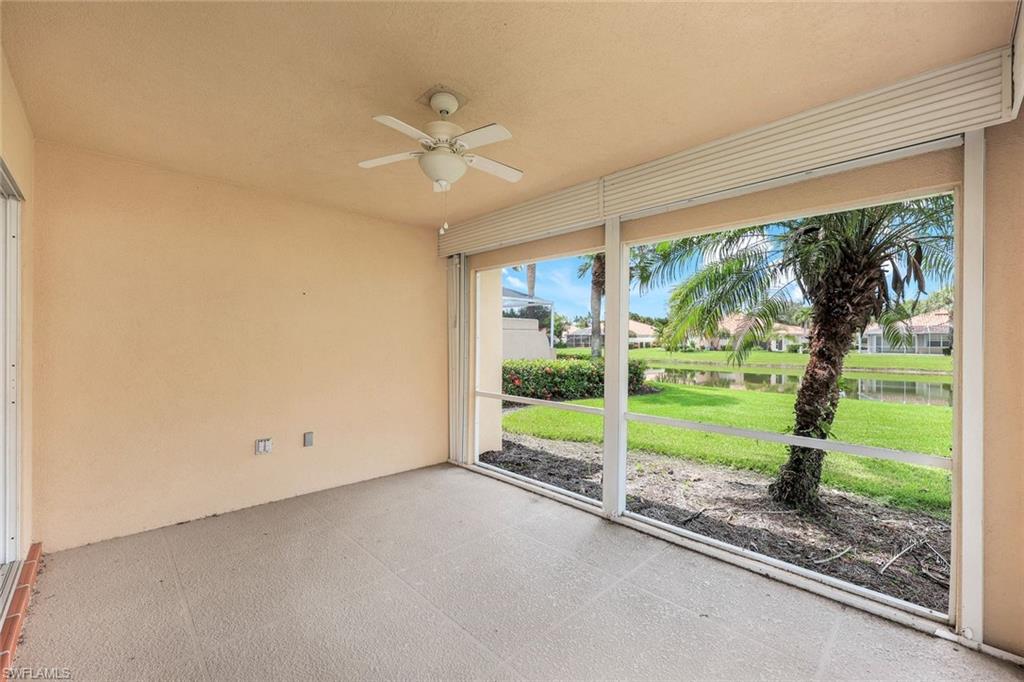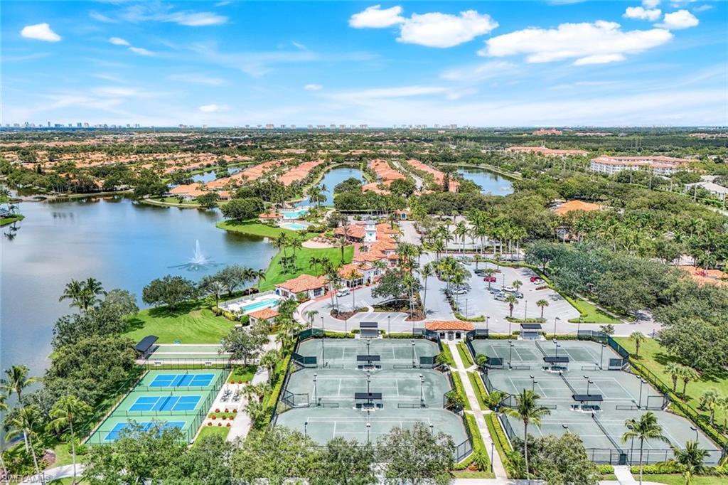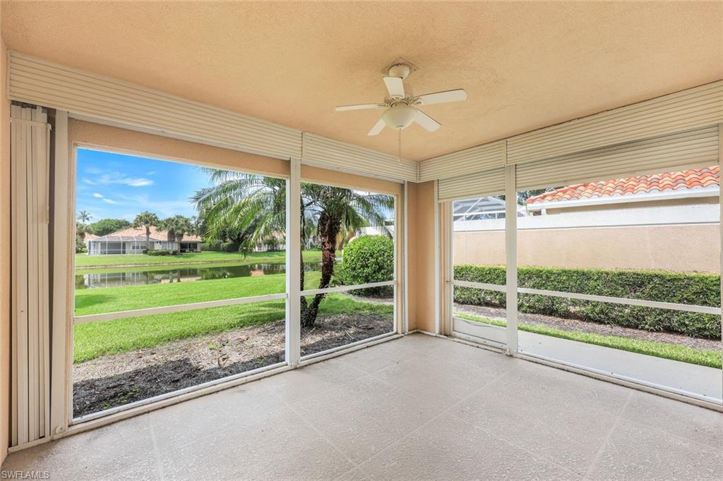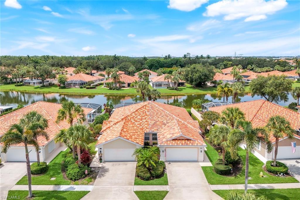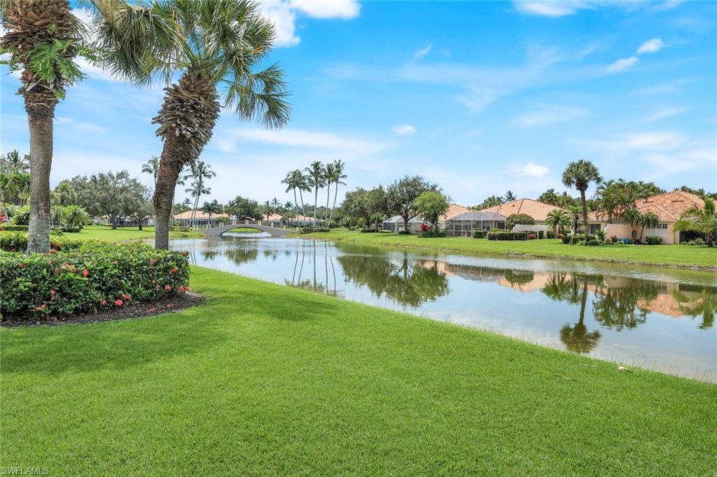 A New Roof in 2024, impact windows installed 2019, 2 bedroom, family/den area, 2 bathroom, and 2 car garage. This Capri is situated in one of the best locations in Village Walk. Positioned far from Vanderbilt Beach Road, and even further from I-75 with a great water view. You can update a home's interior but you cannot change the location and this Capri has the location! A short walk over 4 bridges leading to the Town Center with an abundance of amenities. The amenities in Village Walk are perfect for those who love an active lifestyle. Enjoy 3 swimming pools, one of which is a lap pool, outstanding fitness center, walking paths, 2 bocce courts, 6 tennis courts, 3 pickleball courts with a mix of 3.0 and 4.0 players. Pickleball is a seriously popular new sport and in Village Walk they take it serious. Enjoy "bone builder" classes, bingo, trivia night and an occasional movie night. The Spot Restaurant is very popular and a great place to eat delicious food, meet new friends, play trivia on Thursdays and it's all enhanced by a friendly staff. Very dog-friendly community with up to 3 large dogs. Village Walk is a superb location. About 4 miles to popular Mercado dining and another mile to Vanderbilt Beach.