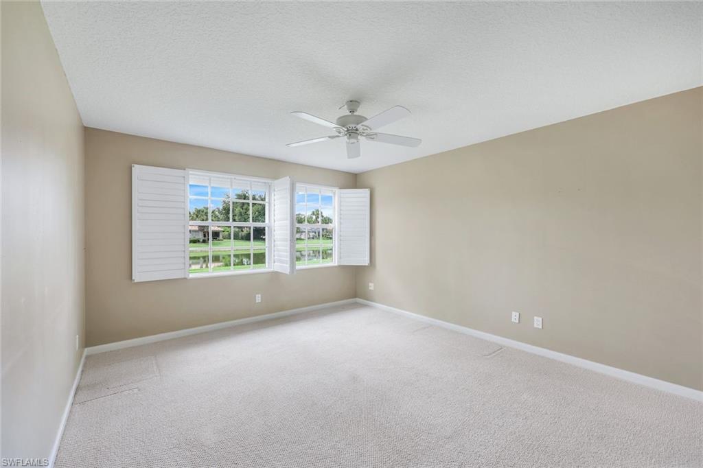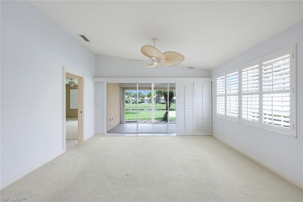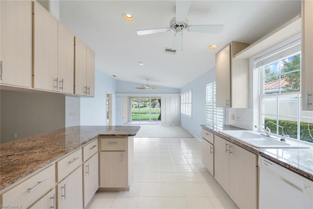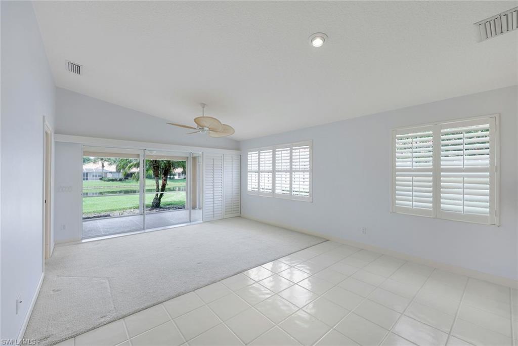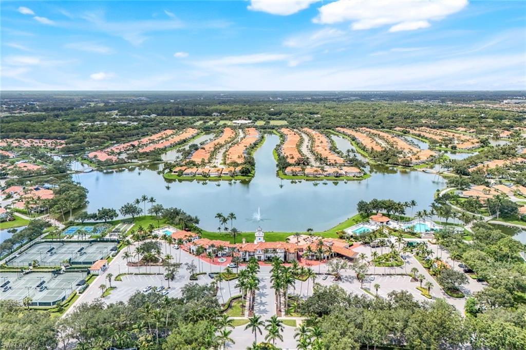 A New Roof in 2024, impact windows installed 2019, 2 bedroom, family/den area, 2 bathroom, and 2 car garage. This Capri is situated in one of the best locations in Village Walk. Positioned far from Vanderbilt Beach Road, and even further from I-75 with a great water view. You can update a home's interior but you cannot change the location and this Capri has the location! A short walk over 4 bridges leading to the Town Center with an abundance of amenities. The amenities in Village Walk are perfect for those who love an active lifestyle. Enjoy 3 swimming pools, one of which is a lap pool, outstanding fitness center, walking paths, 2 bocce courts, 6 tennis courts, 3 pickleball courts with a mix of 3.0 and 4.0 players. Pickleball is a seriously popular new sport and in Village Walk they take it serious. Enjoy "bone builder" classes, bingo, trivia night and an occasional movie night. The Spot Restaurant is very popular and a great place to eat delicious food, meet new friends, play trivia on Thursdays and it's all enhanced by a friendly staff. Very dog-friendly community with up to 3 large dogs. Village Walk is a superb location. About 4 miles to popular Mercado dining and another mile to Vanderbilt Beach.