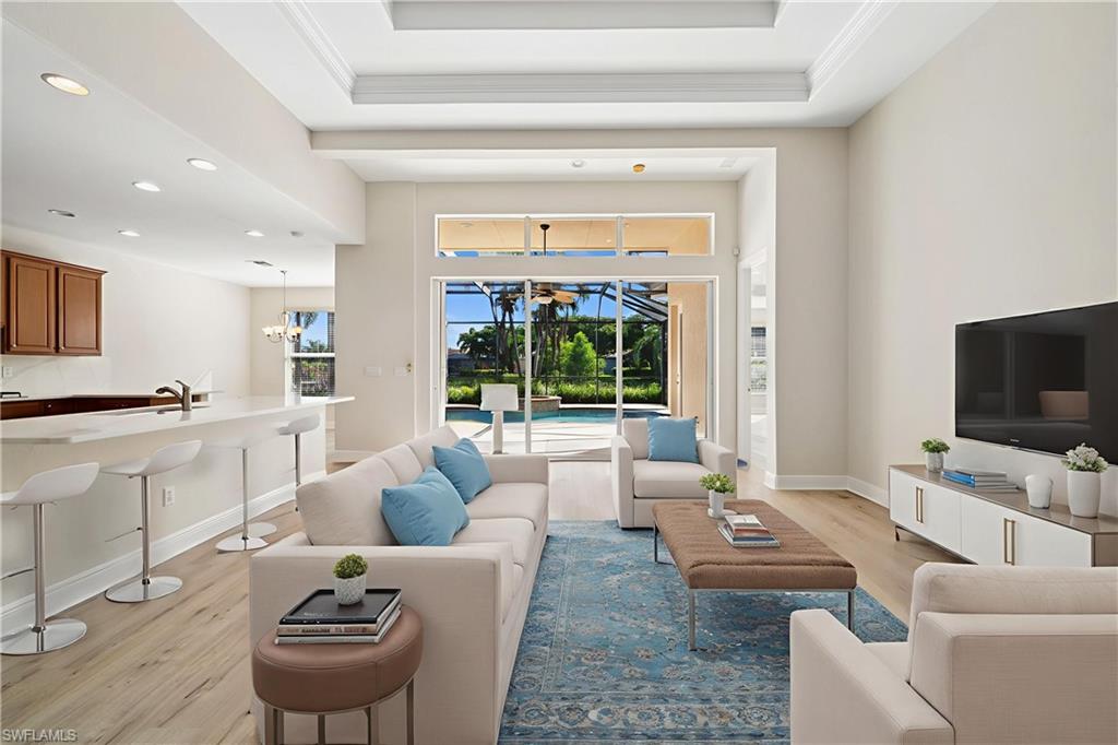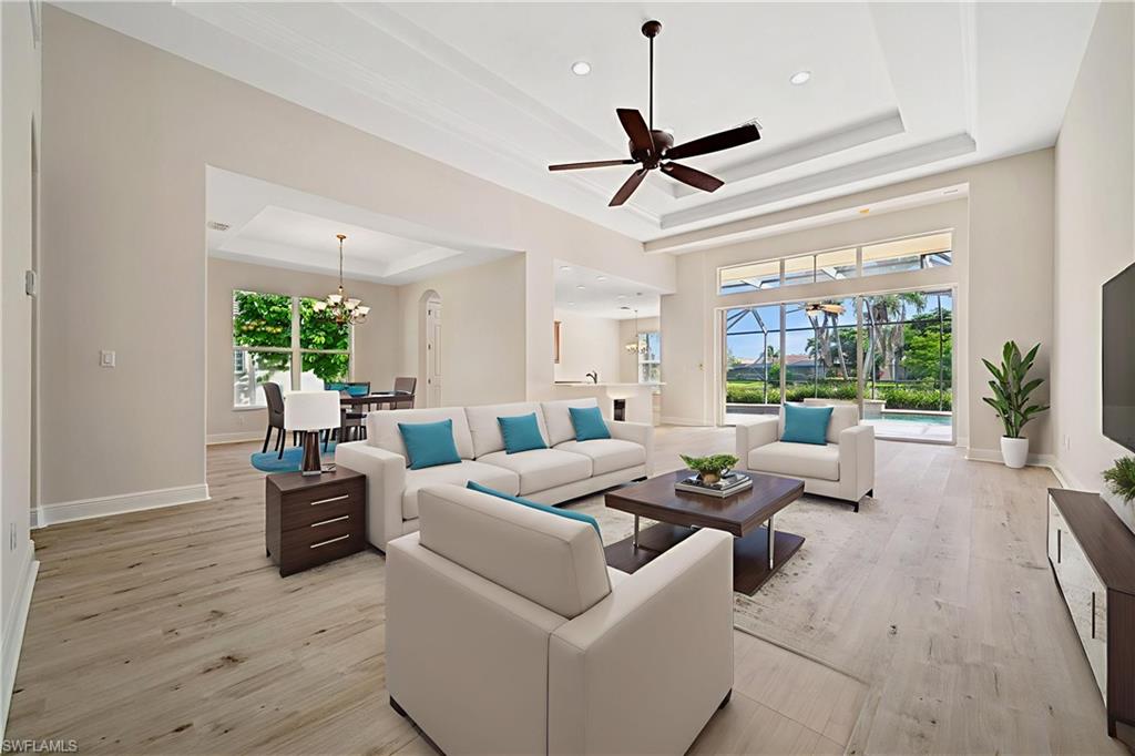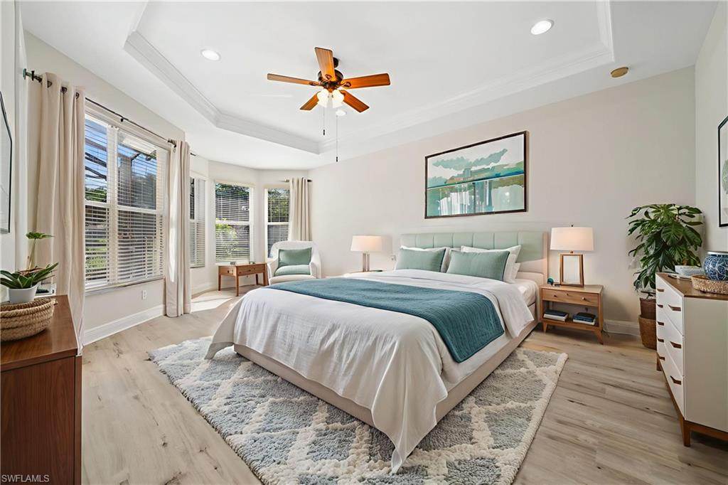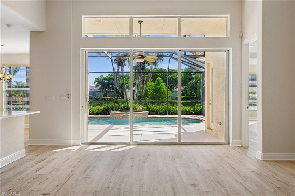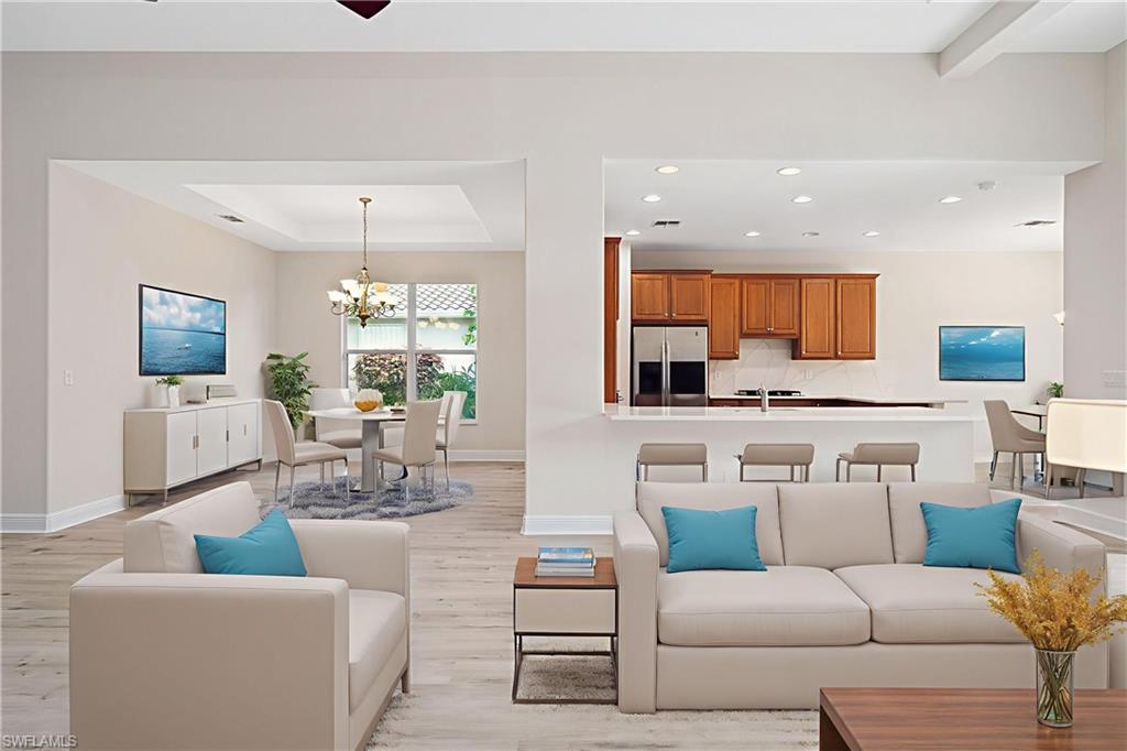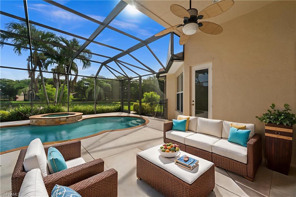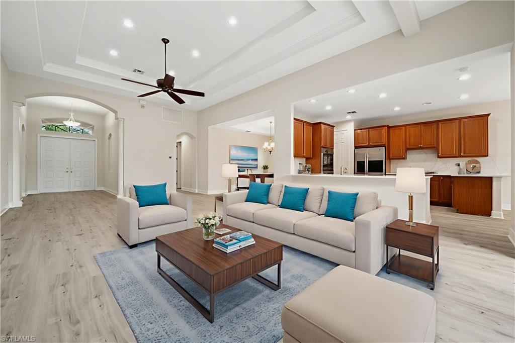 Fully Renovated Saranac Model in Belle Lago – Privacy, Elegance & Exceptional Upgrades Welcome to 19731 Maddelena Circle, where timeless design meets modern luxury in one of Belle Lago’s most sought-after floorplans – the Saranac. This 4-bedroom, 3-bathroom residence is perfectly positioned on a premium lot with no neighbor on one side, only peaceful common area greenspace, offering an extraordinary level of privacy in a prestigious gated community. Recently renovated, this home features luxury vinyl plank flooring throughout, fresh interior paint, and a reimagined kitchen showcasing quartz countertops, a matching backsplash, and stainless steel appliances. The home’s open layout is enhanced by soaring 14-foot ceilings, 8-foot doors, and an expansive great room, creating a light-filled, inviting atmosphere perfect for both entertaining and everyday living. Significant upgrades include a NEW tile roof and a NEW A/C system, providing peace of mind for years to come. The private, heated pool and spa overlook a tranquil lake, offering a serene retreat just outside your back door. Accordion shutters on the rear sliding doors provide added protection and convenience. The chef-inspired kitchen includes a natural gas cooktop, dual breakfast bars, and functional elegance ideal for hosting gatherings. The luxurious master suite features a sitting area, spa-style bath, and private access to the lanai, making it a true sanctuary within the home. Belle Lago is an upscale, amenity-rich community offering a zero-entry resort-style pool, 4 Har-Tru tennis courts, pickleball, bocce ball, a fitness center, billiards room, children's play area, and a scenic boardwalk through a protected nature preserve. Optional golf memberships including reciprocal rights are available through the neighboring Estero Country Club, accessible via private cart path. Centrally located near Coconut Point, Miromar Outlets, Gulf Coast Town Center, RSW Airport, and Barefoot Beach, this home offers a lifestyle of luxury, privacy, and convenience in one of Estero’s most desirable communities.