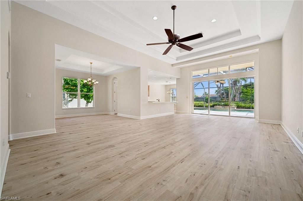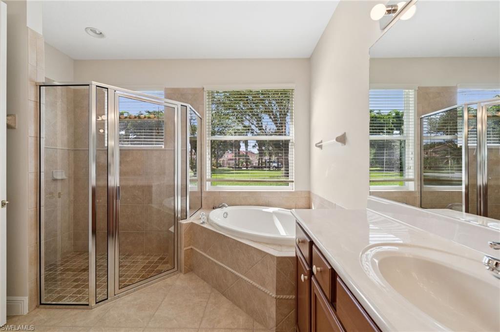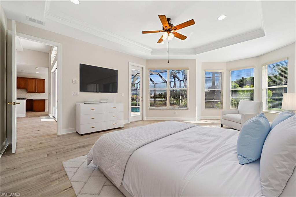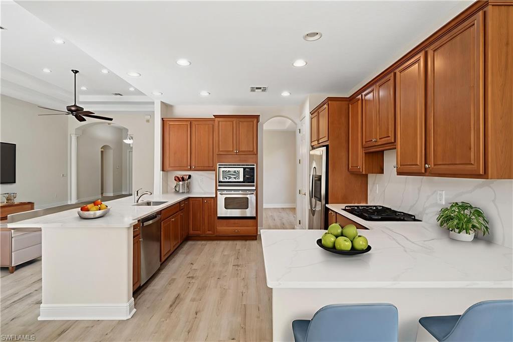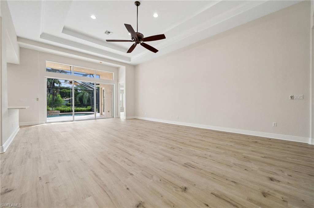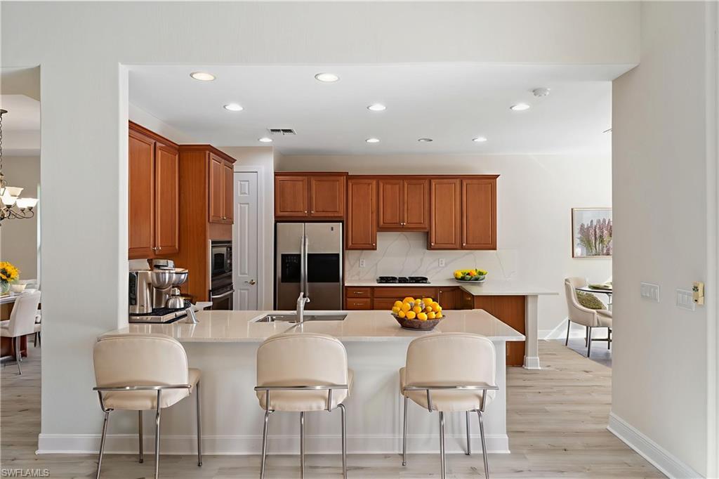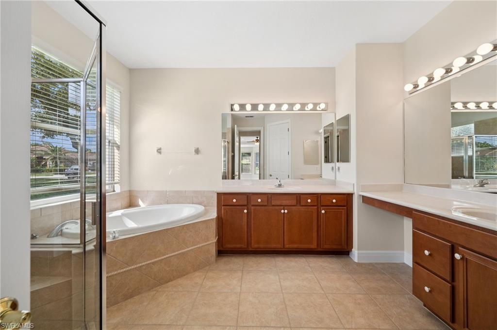 Fully Renovated Saranac Model in Belle Lago – Privacy, Elegance & Exceptional Upgrades Welcome to 19731 Maddelena Circle, where timeless design meets modern luxury in one of Belle Lago’s most sought-after floorplans – the Saranac. This 4-bedroom, 3-bathroom residence is perfectly positioned on a premium lot with no neighbor on one side, only peaceful common area greenspace, offering an extraordinary level of privacy in a prestigious gated community. Recently renovated, this home features luxury vinyl plank flooring throughout, fresh interior paint, and a reimagined kitchen showcasing quartz countertops, a matching backsplash, and stainless steel appliances. The home’s open layout is enhanced by soaring 14-foot ceilings, 8-foot doors, and an expansive great room, creating a light-filled, inviting atmosphere perfect for both entertaining and everyday living. Significant upgrades include a NEW tile roof and a NEW A/C system, providing peace of mind for years to come. The private, heated pool and spa overlook a tranquil lake, offering a serene retreat just outside your back door. Accordion shutters on the rear sliding doors provide added protection and convenience. The chef-inspired kitchen includes a natural gas cooktop, dual breakfast bars, and functional elegance ideal for hosting gatherings. The luxurious master suite features a sitting area, spa-style bath, and private access to the lanai, making it a true sanctuary within the home. Belle Lago is an upscale, amenity-rich community offering a zero-entry resort-style pool, 4 Har-Tru tennis courts, pickleball, bocce ball, a fitness center, billiards room, children's play area, and a scenic boardwalk through a protected nature preserve. Optional golf memberships including reciprocal rights are available through the neighboring Estero Country Club, accessible via private cart path. Centrally located near Coconut Point, Miromar Outlets, Gulf Coast Town Center, RSW Airport, and Barefoot Beach, this home offers a lifestyle of luxury, privacy, and convenience in one of Estero’s most desirable communities.