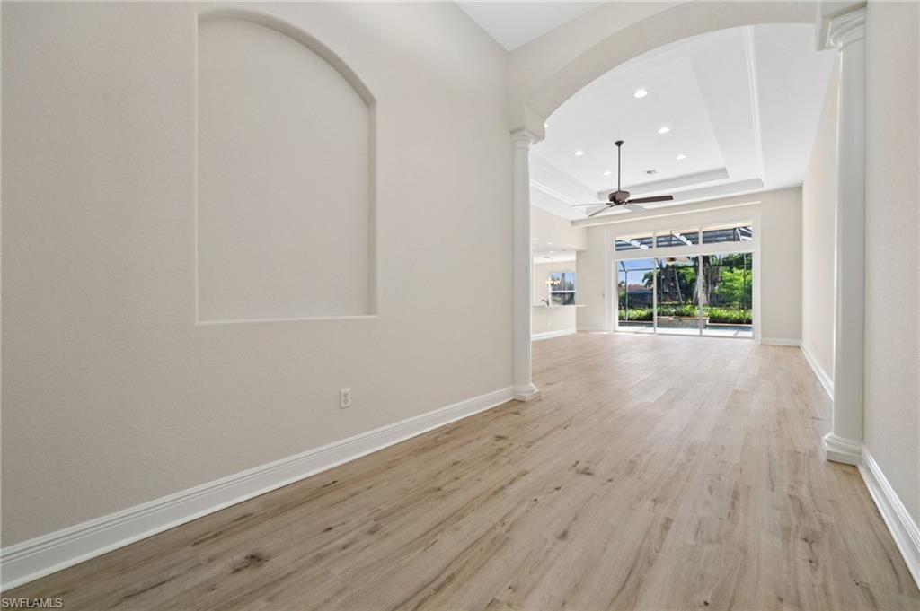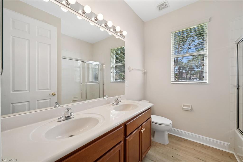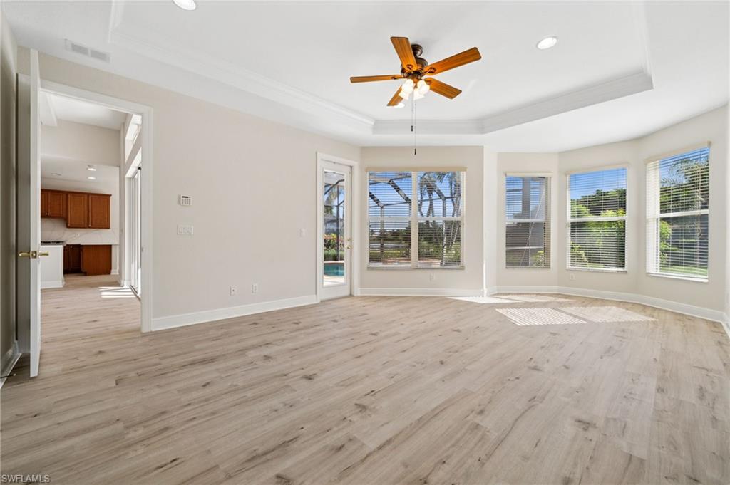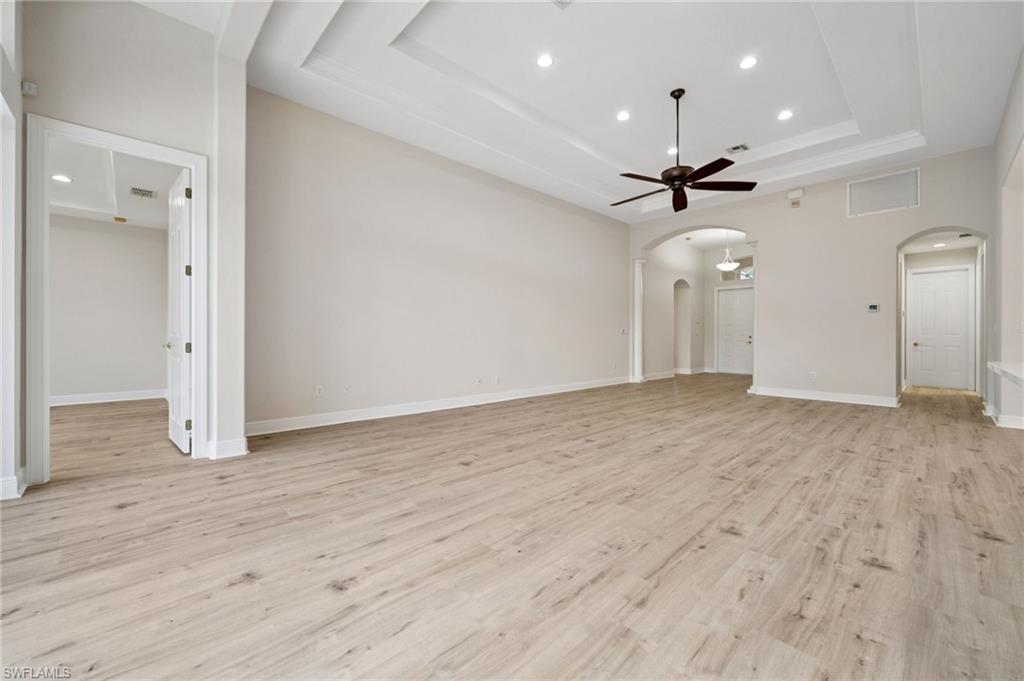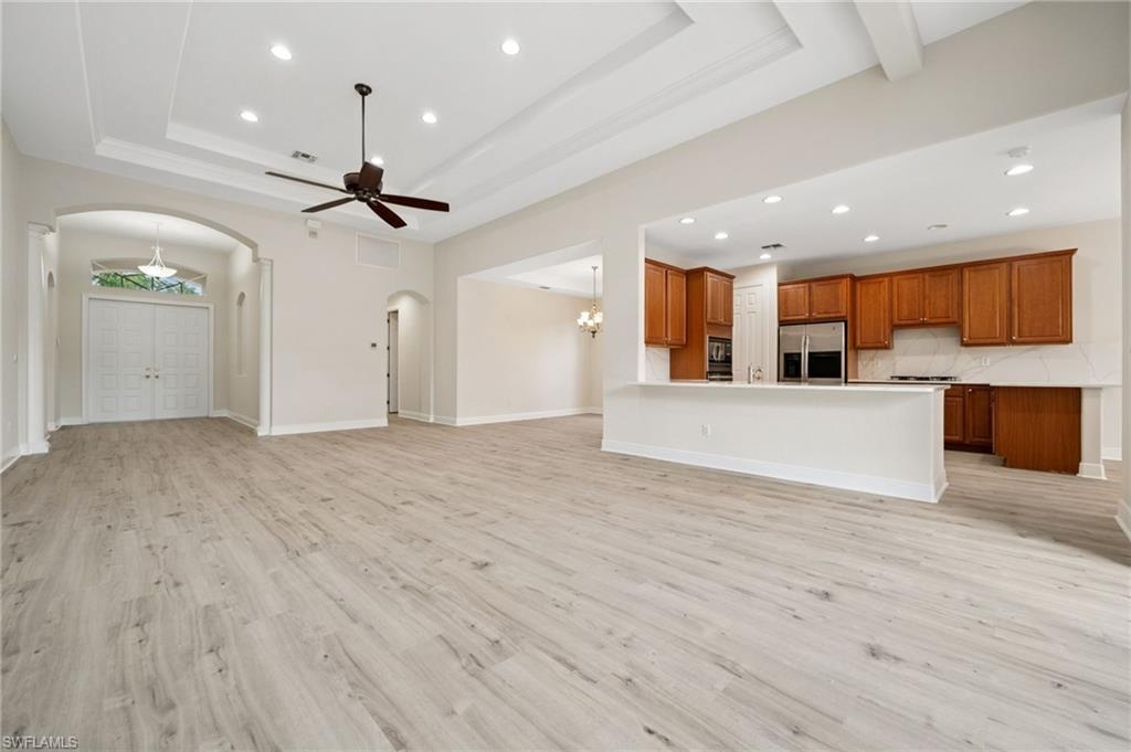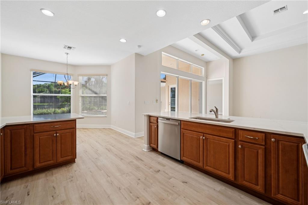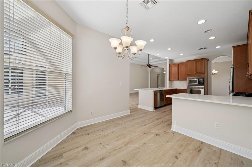 Fully Renovated Saranac Model in Belle Lago – Privacy, Elegance & Exceptional Upgrades Welcome to 19731 Maddelena Circle, where timeless design meets modern luxury in one of Belle Lago’s most sought-after floorplans – the Saranac. This 4-bedroom, 3-bathroom residence is perfectly positioned on a premium lot with no neighbor on one side, only peaceful common area greenspace, offering an extraordinary level of privacy in a prestigious gated community. Recently renovated, this home features luxury vinyl plank flooring throughout, fresh interior paint, and a reimagined kitchen showcasing quartz countertops, a matching backsplash, and stainless steel appliances. The home’s open layout is enhanced by soaring 14-foot ceilings, 8-foot doors, and an expansive great room, creating a light-filled, inviting atmosphere perfect for both entertaining and everyday living. Significant upgrades include a NEW tile roof and a NEW A/C system, providing peace of mind for years to come. The private, heated pool and spa overlook a tranquil lake, offering a serene retreat just outside your back door. Accordion shutters on the rear sliding doors provide added protection and convenience. The chef-inspired kitchen includes a natural gas cooktop, dual breakfast bars, and functional elegance ideal for hosting gatherings. The luxurious master suite features a sitting area, spa-style bath, and private access to the lanai, making it a true sanctuary within the home. Belle Lago is an upscale, amenity-rich community offering a zero-entry resort-style pool, 4 Har-Tru tennis courts, pickleball, bocce ball, a fitness center, billiards room, children's play area, and a scenic boardwalk through a protected nature preserve. Optional golf memberships including reciprocal rights are available through the neighboring Estero Country Club, accessible via private cart path. Centrally located near Coconut Point, Miromar Outlets, Gulf Coast Town Center, RSW Airport, and Barefoot Beach, this home offers a lifestyle of luxury, privacy, and convenience in one of Estero’s most desirable communities.
