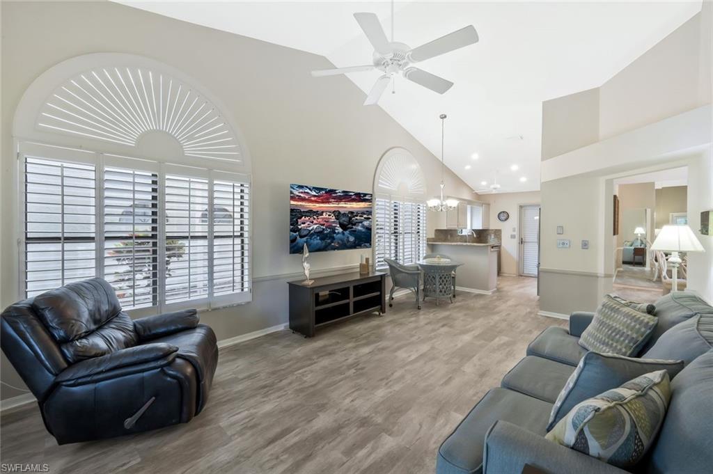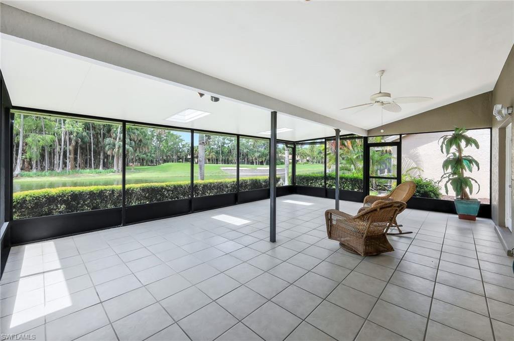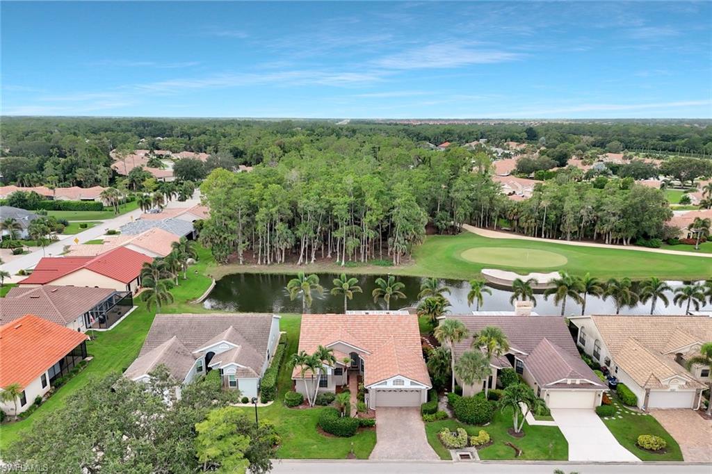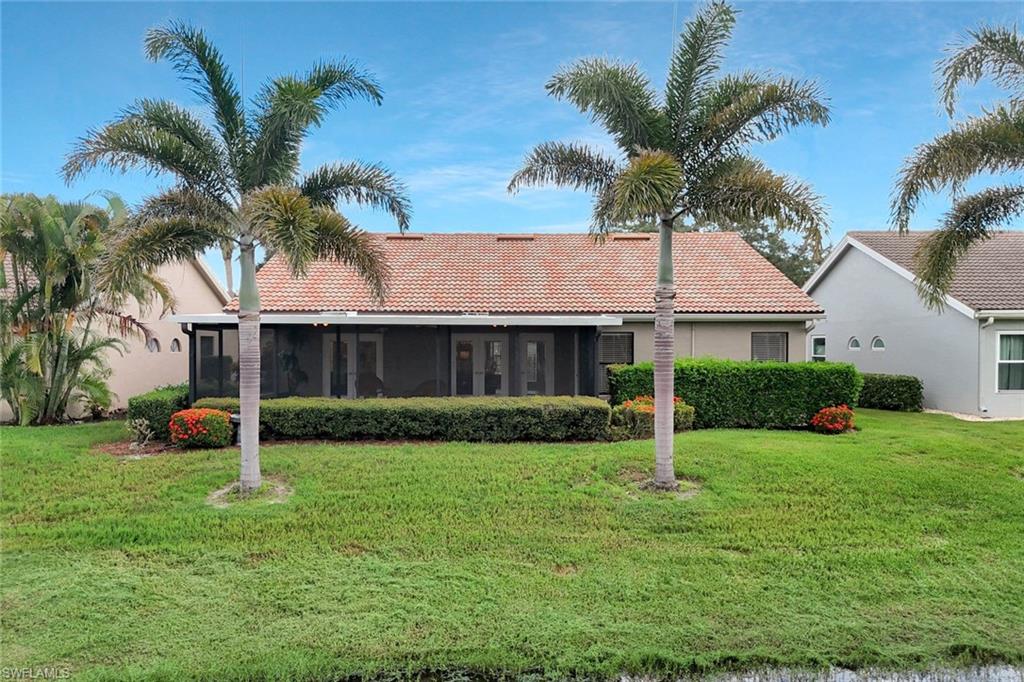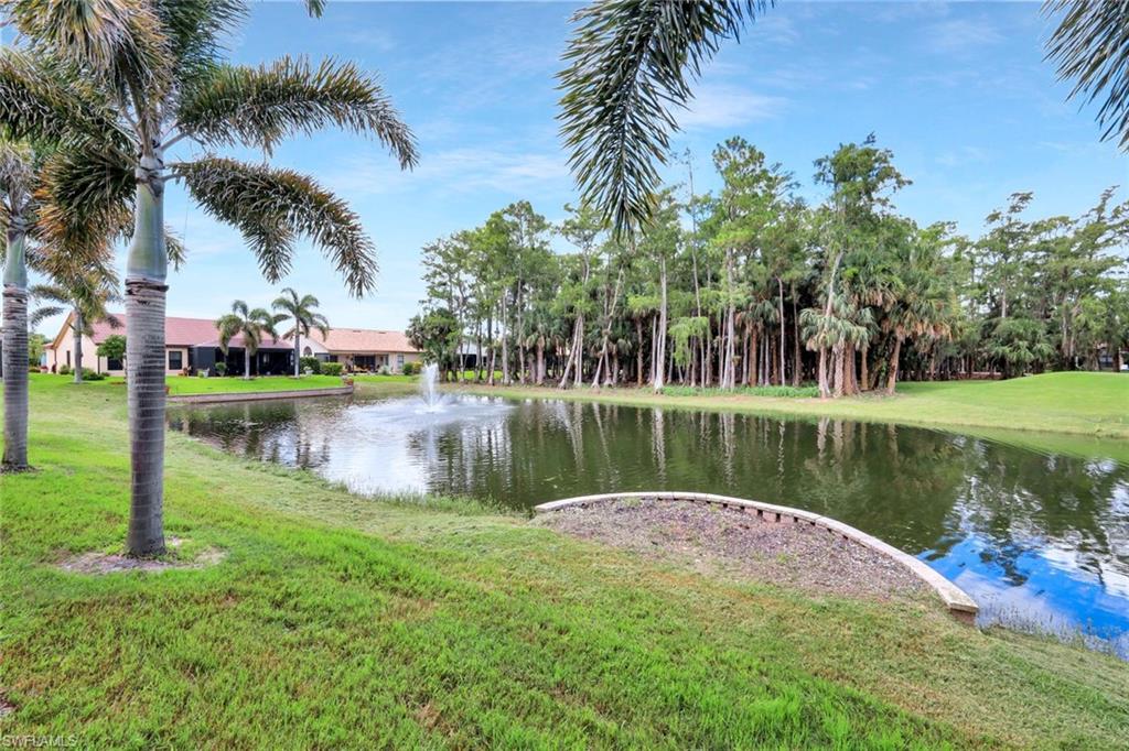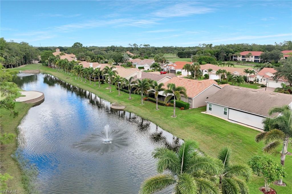 Exclusive Charter Golf Membership Included ($50,000 value)! Spacious 3 bedroom, 2 bath single-family home featuring 1,787 sq. ft. under air and a desirable split-bedroom layout. Enjoy a large main bedroom suite and a separate guest suite for added privacy. The floor plan showcases volume ceilings and abundant windows that fill the home with natural light. Relax or entertain on the expansive lanai overlooking a fabulous lake, tranquil fountain, and scenic golf course views. New A/C 2023. The 2-car garage provides ample space for storage, cars, and golf cart. The location is fantastic just a short walk to the clubhouse, community center, and pool Excellent value and an ideal opportunity to customize this home to reflect your vision and suit your lifestyle. Hunters Ridge is a Private Golf & Country Club, not a bundled community with only 420 golf members, no Chelsea system and our golf member enthusiasts can play the course as often as they like! Hunters Ridge is very friendly, casual, and offers a large variety of social activities. Only 6 miles from Barefoot Beach Preserve! Just minutes to the best shopping, dining, entertainment, and the RSW Airport. 18 hole championship golf course, golf simulators, large community swimming pool with food & beverage service, community center, fitness center, clubhouse, beautiful dining room and grill room, poolside cafe, tennis courts, pickleball courts and much more!