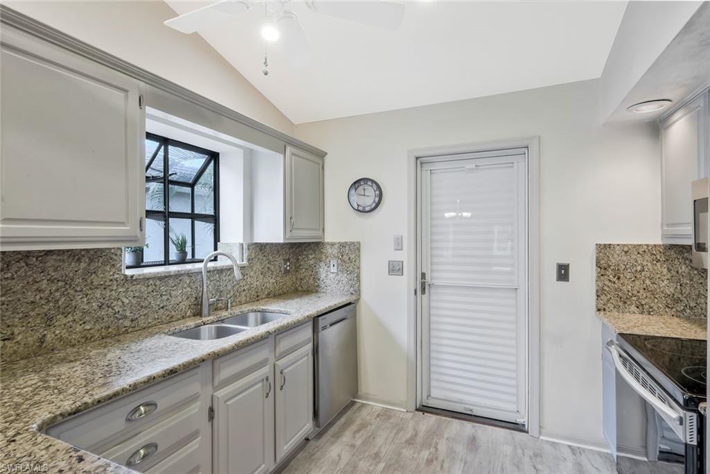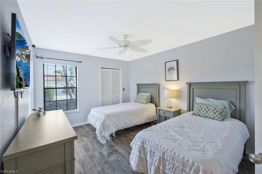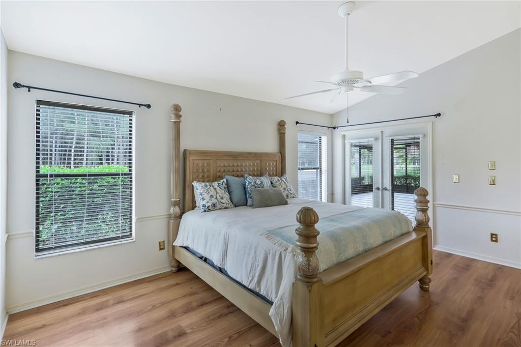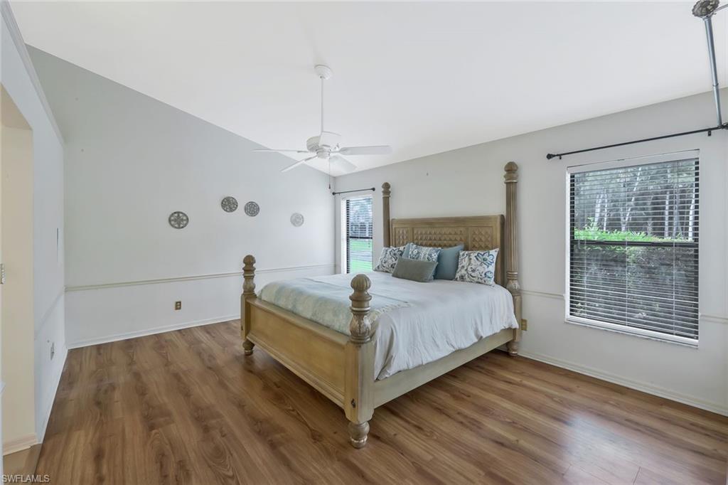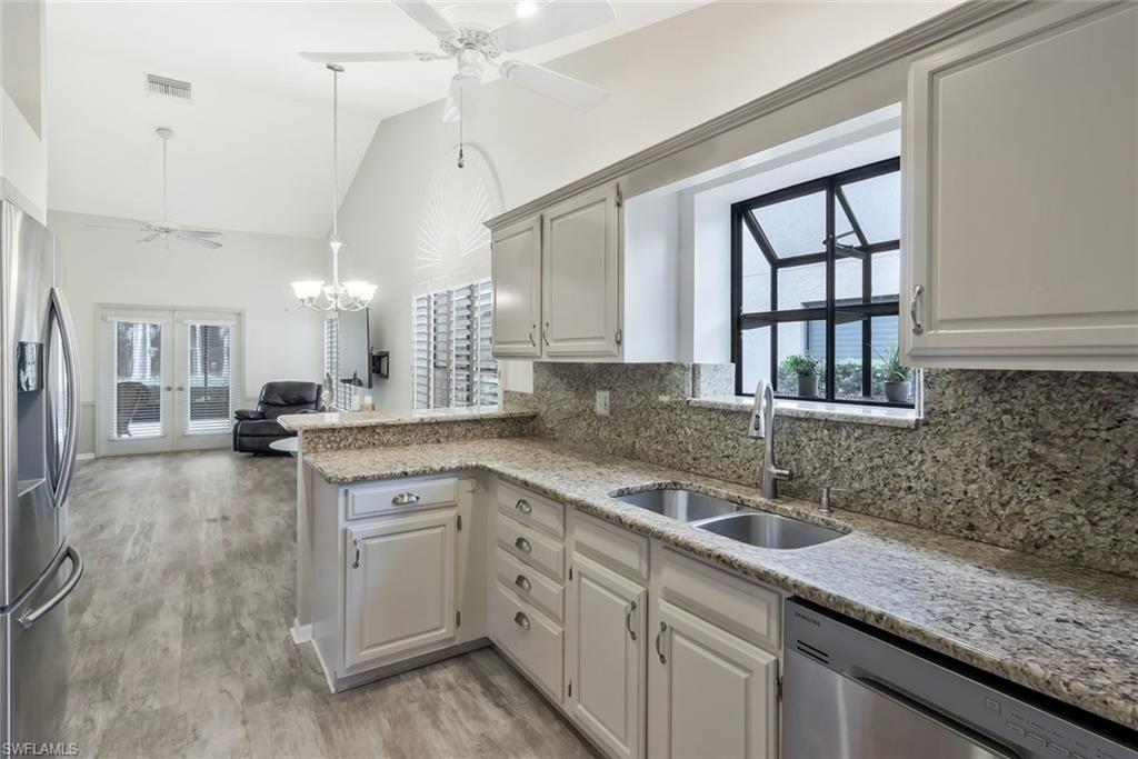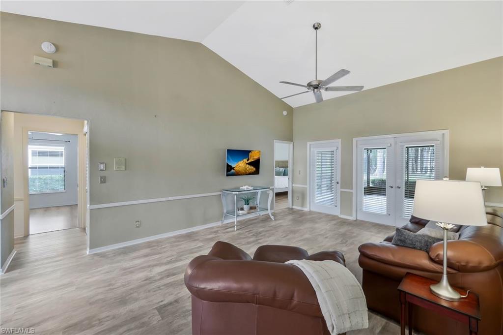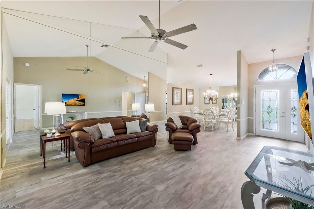 Exclusive Charter Golf Membership Included ($50,000 value)! Spacious 3 bedroom, 2 bath single-family home featuring 1,787 sq. ft. under air and a desirable split-bedroom layout. Enjoy a large main bedroom suite and a separate guest suite for added privacy. The floor plan showcases volume ceilings and abundant windows that fill the home with natural light. Relax or entertain on the expansive lanai overlooking a fabulous lake, tranquil fountain, and scenic golf course views. New A/C 2023. The 2-car garage provides ample space for storage, cars, and golf cart. The location is fantastic just a short walk to the clubhouse, community center, and pool Excellent value and an ideal opportunity to customize this home to reflect your vision and suit your lifestyle. Hunters Ridge is a Private Golf & Country Club, not a bundled community with only 420 golf members, no Chelsea system and our golf member enthusiasts can play the course as often as they like! Hunters Ridge is very friendly, casual, and offers a large variety of social activities. Only 6 miles from Barefoot Beach Preserve! Just minutes to the best shopping, dining, entertainment, and the RSW Airport. 18 hole championship golf course, golf simulators, large community swimming pool with food & beverage service, community center, fitness center, clubhouse, beautiful dining room and grill room, poolside cafe, tennis courts, pickleball courts and much more!