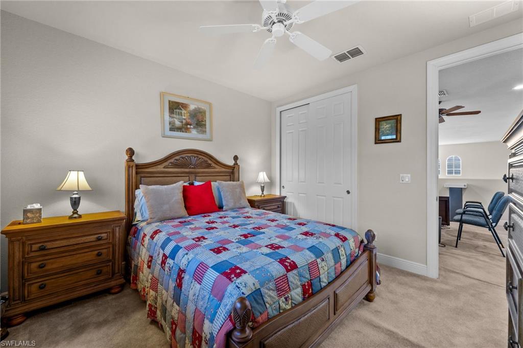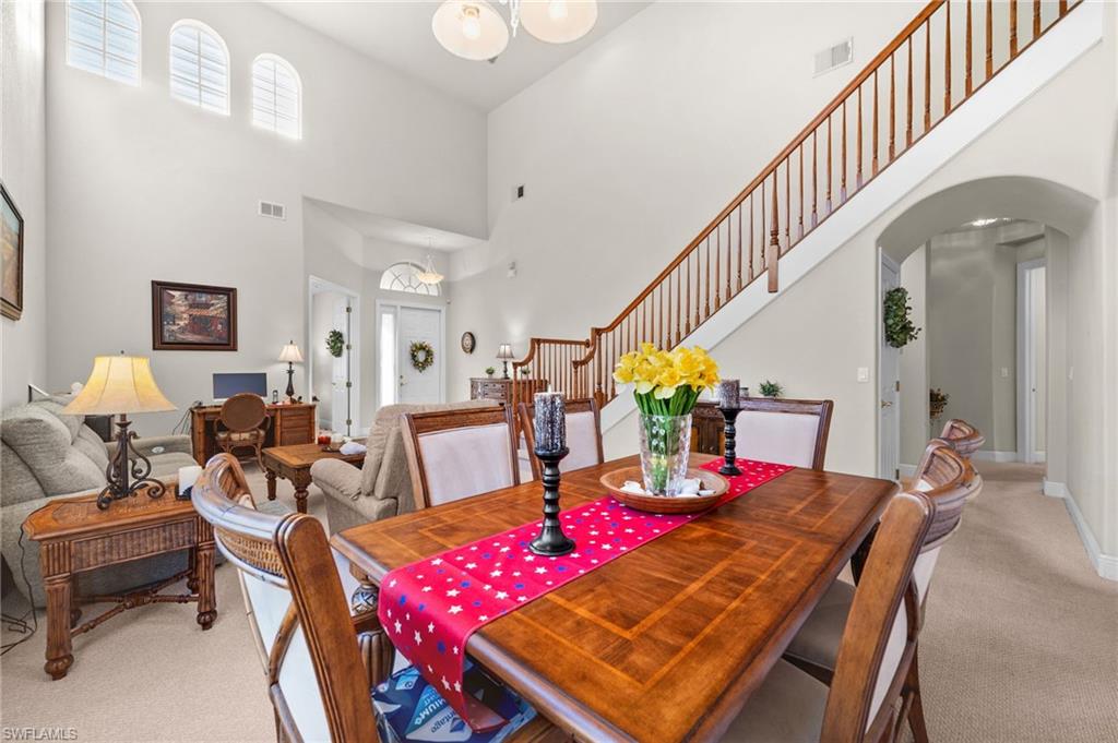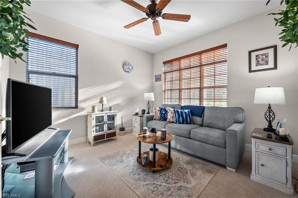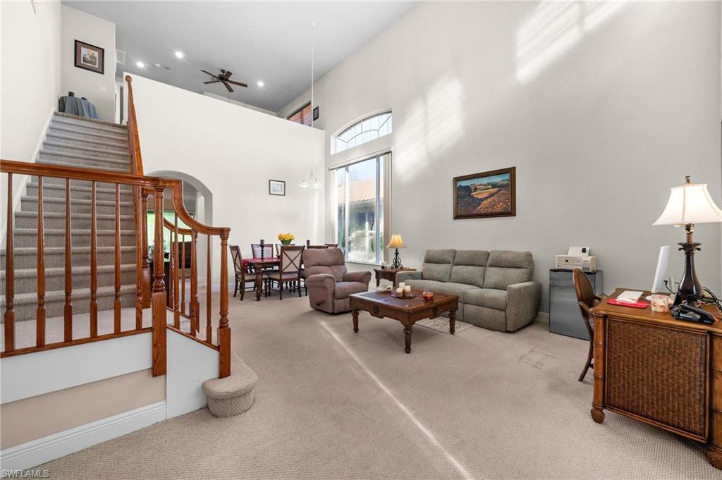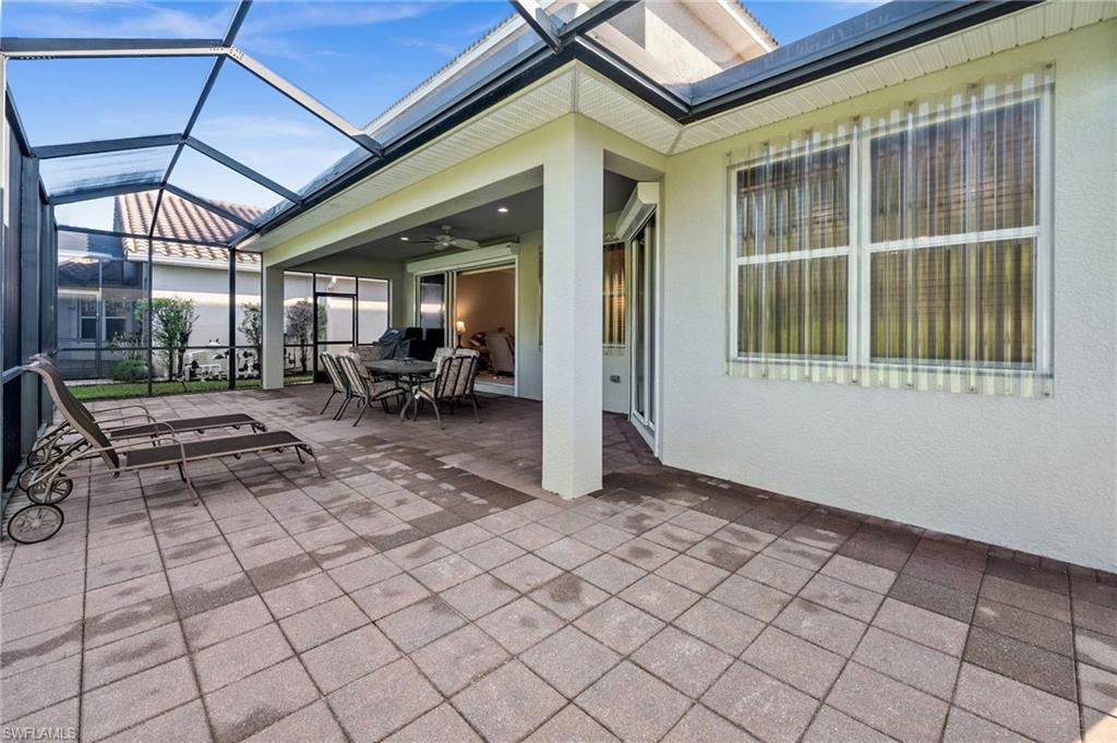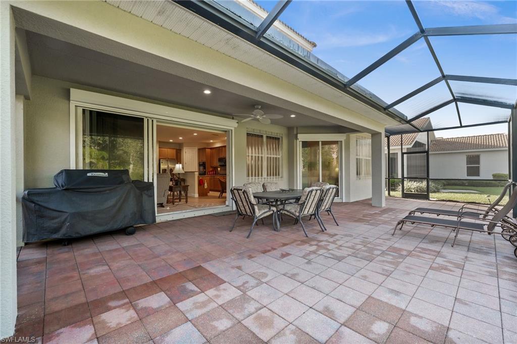 Welcome to Belle Lago’s Best Value – 19800 Casa Verde Way | Offered at $549,900 Step into elegance and comfort in this beautifully maintained 3-bedroom plus den, 2.5-bathroom home, offering a rare opportunity to enter the sought-after Belle Lago community at its lowest current price point. Enjoy soaring 20-foot ceilings in the main living area, creating a grand and airy atmosphere filled with natural light. The spacious kitchen is a chef’s dream, featuring granite countertops, natural gas cooking, and a functional layout ideal for both everyday living and entertaining. Retreat to the extended screened lanai, a perfect setting for relaxing or hosting guests while overlooking the lush, private backyard. Peace of mind is assured with a whole-house standby generator and two newer A/C units, ensuring comfort and reliability year-round. This home also offers a versatile den that can serve as a home office or flex space, along with a neutral interior palette and timeless finishes. A paver driveway and mature tropical landscaping add to the inviting curb appeal, while natural gas service brings added efficiency and convenience. This is your chance to enjoy luxury living in a premier community—without the premier price tag. Belle Lago is an upscale, amenity-rich community offering a zero-entry resort-style pool, 4 Har-Tru tennis courts, pickleball, bocce ball, a fitness center, billiards room, children's play area, and a scenic boardwalk through a protected nature preserve. Optional golf memberships including reciprocal rights are available through the neighboring Estero Country Club, accessible via private cart path. Centrally located near Coconut Point, Miromar Outlets, Gulf Coast Town Center, RSW Airport, and Barefoot Beach, this home offers a lifestyle of luxury, privacy, and convenience in one of Estero’s most desirable communities.