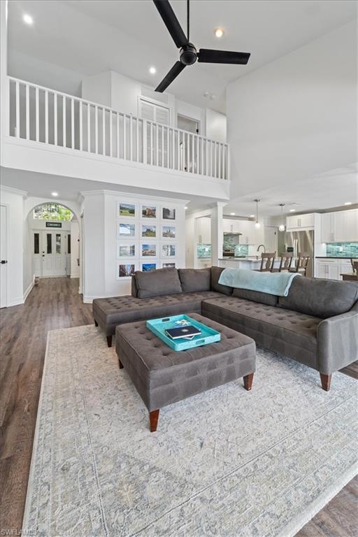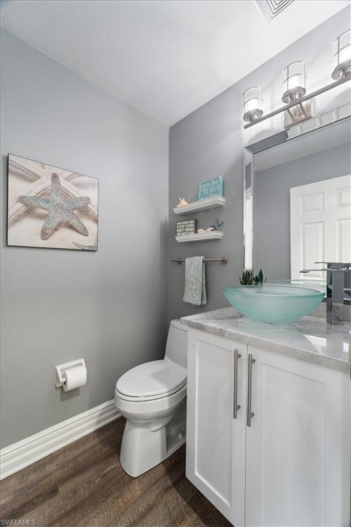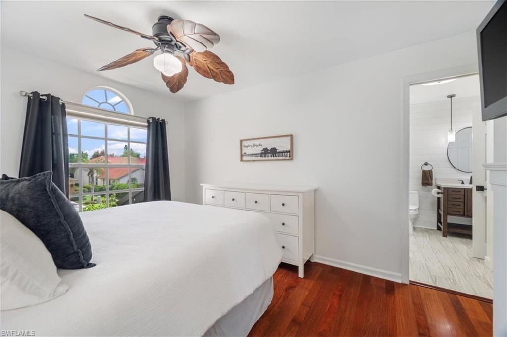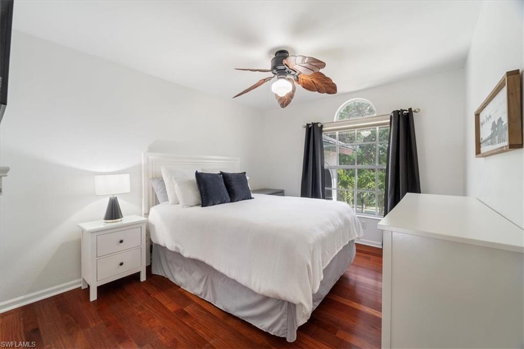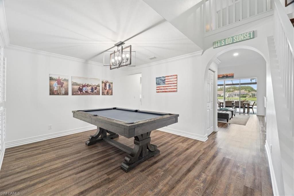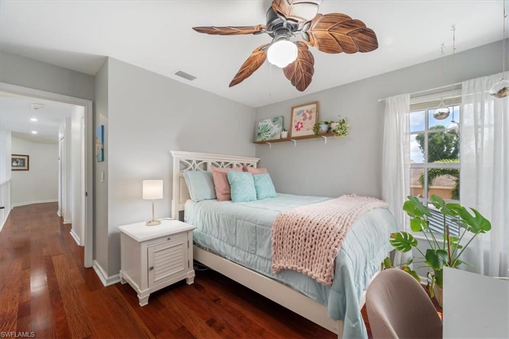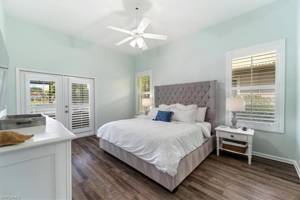 Welcome to an exquisite residence at 7550 Citrus Hill Lane in Naples, FL, where elegance meets comfort in this charming home. Spanning 2,412 square feet, this beautifully appointed four-bedroom, two-and-a-half-bathroom haven is nestled on a generous lakefront lot, offering an inviting sanctuary for discerning homeowners. Step inside to discover a welcoming ambiance with wood-like flooring gracing the main living area, setting a sophisticated tone throughout. The heart of the home, the stunning kitchen, is a chef's delight, featuring pristine white cabinets, luxurious quartz countertops, and a striking coastal blue/green backsplash that adds a touch of vibrancy and charm. You'll appreciate the sink reserve osmosis system for pure drinking and cooking water, complementing the whole-house water softener for enhanced comfort. Retreat to the serene master suite, where the master bathroom offers a spa-like experience with dual vanities, a spacious shower, and a relaxing soaking tub. The California closet provides ample space for a well-organized wardrobe. Designed for both work and play, this home includes a dedicated office space, catering to those who appreciate convenience and functionality. An AC duct air purifier ensures a healthy and fresh indoor environment. Step outside to the screened-in pool area, an ideal setting for relaxation or entertaining guests. Enjoy the tranquil views of the lake from the outdoor seating area, complete with a TV for ultimate leisure and enjoyment. The backyard is a true oasis, featuring an organic garden and several fruit trees, perfect for those who love fresh produce. The Orchards is a serene, gated enclave that promises an extraordinary lifestyle. Residents can enjoy a network of walking and biking trails, two heated swimming pools, a state-of-the-art fitness center, and courts for tennis and pickleball. Located in North Naples, close to shopping, dining, and SWFL's beautiful beaches, this home combines luxury and convenience with exceptional value, all while maintaining low HOA fees