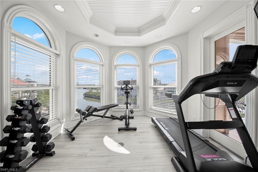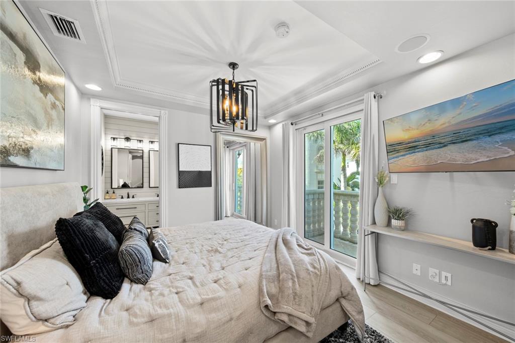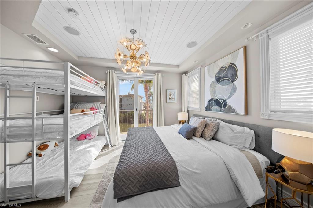 This magnificent waterfront residence epitomizes luxury and offers an exceptional coastal lifestyle and features 4 bedrooms plus den and 7 bathrooms. The standout feature is undoubtedly the vast 1,200 square foot roof deck, ideal for entertaining or simply enjoying the water views. Ascending to the fifth level via the elevator leads to a stunning garden area designed for both relaxation and social gatherings. Equipped with a fully stocked bar, generous seating options, built-in umbrellas, and a Sonos sound system throughout the property, it's a perfect setting for hosting up to 35 guests under the stars. The primary suite radiates opulence and comfort, featuring dual walk-in closets, a coffee bar for convenience, and a flexible area that can serve as an exercise room or study, providing a peaceful sanctuary within the home. The elevator connecting the ground floor to the roof deck adds an element of ease for both owners and guests. Each of the three guest bedrooms is equipped with its own ensuite bathroom, ensuring privacy and comfort for visitors. A striking spiral staircase enhances the architectural elegance of the home, leading from the ground level to the roof deck. The three-car garage, newly updated with an epoxy floor, along with additional parking space in front of each garage door, ensures plenty of room for vehicles and storage. Beautiful ceiling details throughout the home reflect the high level of craftsmanship and meticulous attention to detail that characterizes this beautifully renovated property. The home is conveniently located just a short stroll from popular beachfront venues like Doc's on the Beach, Coconut Jack's, and The Fish House, allowing residents to immerse themselves in the lively coastal ambiance. The updated pool and deck area, enhanced by a panoramic window screen enclosure, presents a serene view of the bay, along with boat lifts and Jet Ski docks, creating an idyllic outdoor retreat for leisure and enjoyment. Numerous covered seating arrangements offer ample space for soaking in the waterfront scenery. The modern quartz kitchen, with captivating views of the bay, offers a delightful backdrop for meal preparation, turning cooking into an enjoyable experience. This waterfront property encapsulates the essence of coastal luxury, offering an extraordinary blend of sophistication, practicality, and stunning vistas, promising an unparalleled living experience by the sea!