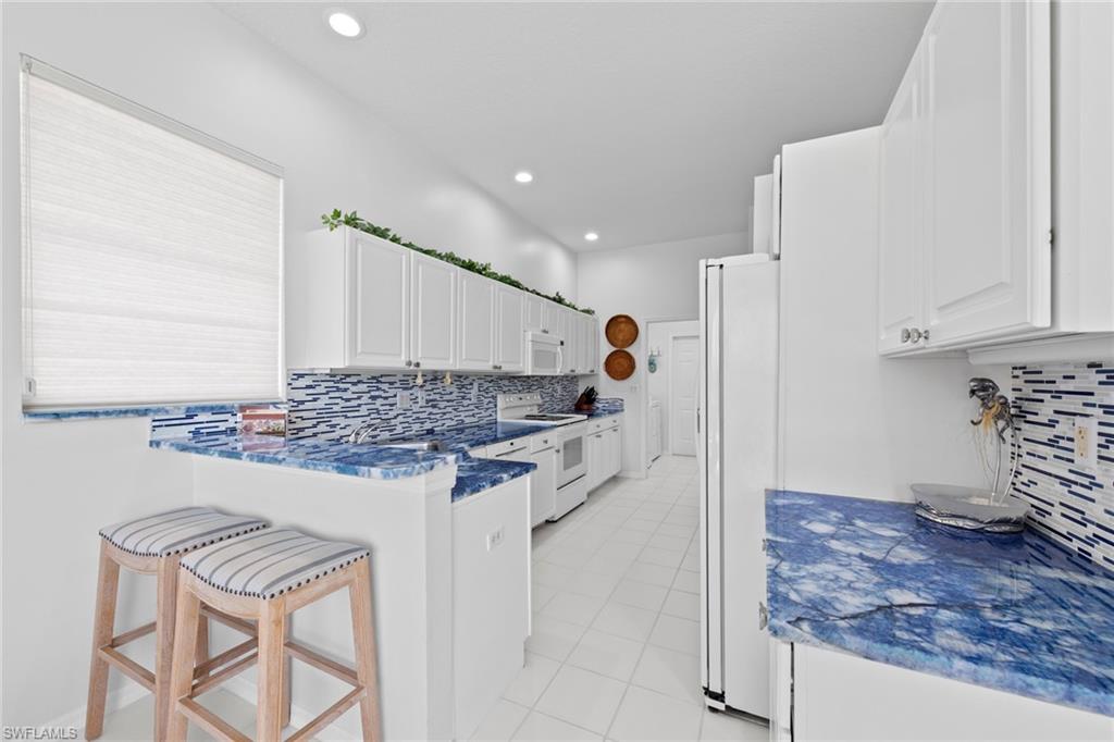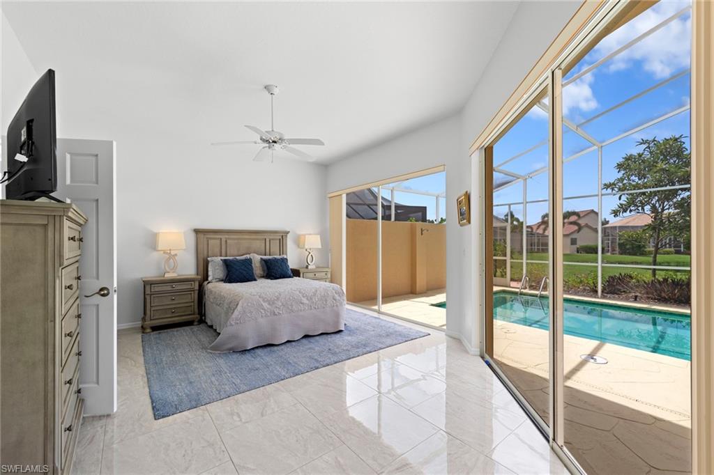 Welcome to 28448 Highgate Dr—a beautifully maintained 2-bedroom, 2-bath home offering serene lake views and the best of Southwest Florida living. Step through a private gated courtyard into a spacious, light-filled interior with vaulted ceilings and a seamless flow between the formal dining, living room, and foyer—all overlooking the tranquil lake. The bright kitchen features a breakfast nook, built-in desk, pantry, and expansive views of the screened, heated pool and peaceful water beyond. The oversized lanai faces south for optimal sunshine—an ideal setting for entertaining or relaxing poolside in total privacy. The primary suite is a true retreat, with lake views, a walk-in closet, and a spa-like bath with a soaking tub and dual sinks. Thoughtful upgrades include a newer roof (2019), a recently replaced pool heater, and a newer refrigerator for peace of mind. Located in the highly desirable Spanish Wells Golf & Country Club community, just minutes from shopping, dining, and the Gulf beaches, this home offers the perfect blend of comfort, convenience, and coastal charm.