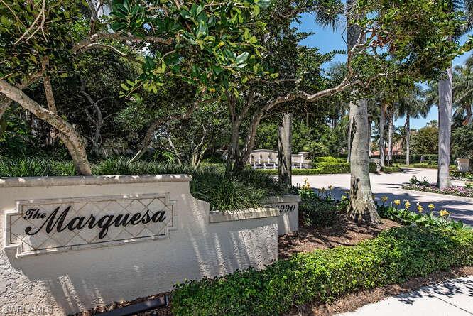 This EZ BREEZY MUST-OWN Bay Colony PRICE LEADER "pied-a-terre" is sure to capture your heart, and happily enjoys the full suite of 5 Diamond Bay Colony and Pelican Bay included Membership privileges. This Gem is tucked away in the boutique luxurious Marquesa tower of just 15 floors, 39 residences, with only 3 residences per floor. This JUST REFRESHED Gem offers a much-in-demand 9’ interior ceiling height, hard surface wood-look tile in all main areas, a freshly painted interior, new designer furnishings, a chef's kitchen with Poggenpohl white lacquer kitchen cabinetry and white Corian counters, plus 2 under-tower secured, deeded, parking spots. The newly screened and freshly painted generous SW lanai, accessible from all main living areas, will become your own private nightly unobstructed SUNSET stage, backdropped by pristine, tranquil estuary forever views. Enjoy Marquesa towers fitness room, sunny resort style pool and spa, casual deck gathering area, and open air grill, but don't forget your full menu of prestigious World Class Bay Colony and Pelican Bay included private membership privileges: 3 private Beachfront Dining Clubs to call your own, 2½ miles of pristine sugar white sandy beach, attended Beachfront services, active Tennis Clubs, state-of-the-art Fitness, miles of biking and walking paths and much more! Artis Center for the Arts and Mercato both just steps away!