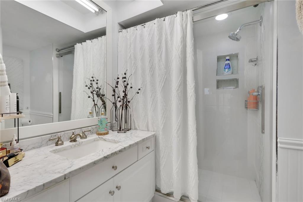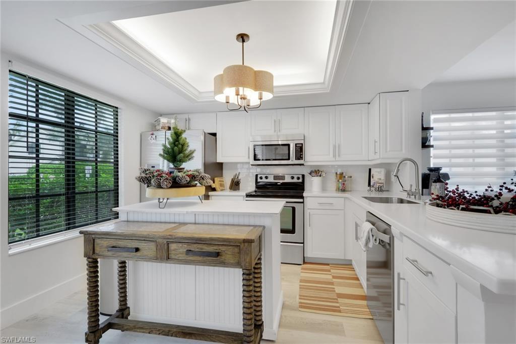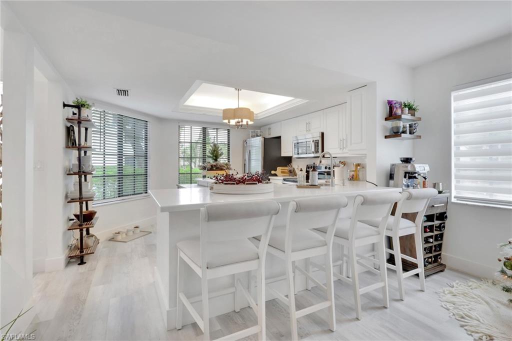 Welcome to your piece of paradise in the highly sought-after Pelican Ridge community! This beautifully remodeled townhome offers the perfect blend of luxury, convenience, and coastal living in Naples, FL with hurricane impact windows and doors throughout. This end-unit townhome boasts an abundance of natural light throughout its 1,748 sq ft of living space, enhanced by two skylights in the living room, which also features a cozy fireplace. Recently updated with a perfect coastal theme, you'll find beautiful light wood-look floors, freshly painted walls and baseboards, and bright, white kitchen cabinets. The kitchen is equipped with stainless steel appliances, a stylish subway tile backsplash, and elegant granite countertops. The primary bedroom is conveniently located on the ground floor, featuring a custom walk-in closet and an ensuite bathroom. Sliding glass impact doors open directly from the primary bedroom to your private, large screened lanai and a fenced backyard, creating a serene outdoor oasis. A half bathroom on the first floor adds to the convenience. Upstairs, a large loft flex space offers incredible versatility, perfect for an office/study, family room, game room, or easily convertible to a third bedroom. The second floor also includes a spacious second bedroom with an additional ensuite bathroom. This townhome also includes an attached one-car garage and a driveway for additional parking. For your peace of mind, the home has been meticulously updated with hurricane impact windows and sliding glass impact doors for superior storm protection. Pelican Ridge is exceptionally located, just 1 mile from Vanderbilt Beach, allowing you to enjoy stunning sunsets and pristine sands with ease. You're also within walking distance to Mercato, offering a plethora of popular restaurants and shops, including Whole Foods and Publix. For even more upscale shopping and dining, Waterside Shops are just 2 miles away. Enjoy relatively low HOA fees that include water, lawn and landscaping care, pest control (exterior and interior), master insurance, and professional management. Residents have access to two heated community pools, perfect for relaxing and socializing. Pelican Ridge is a well-maintained and quiet retreat, and it's pet-friendly (allowing a maximum of two pets per lot, with a weight limit of 25 pounds when full grown. This meticulously maintained and thoughtfully updated townhome is not just a residence; it's a lifestyle.
