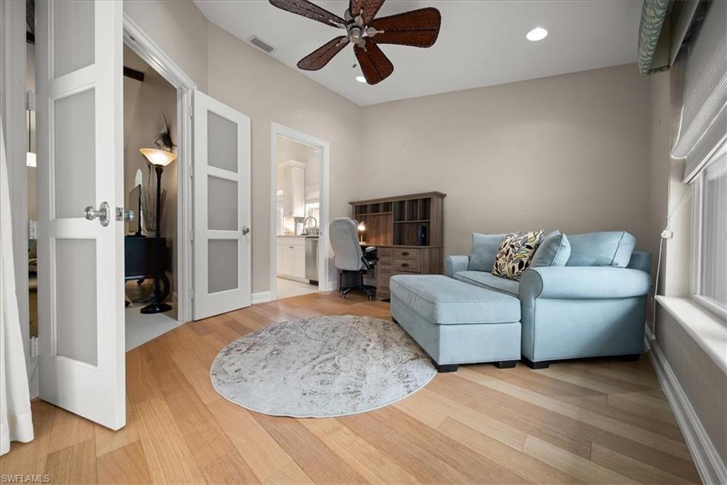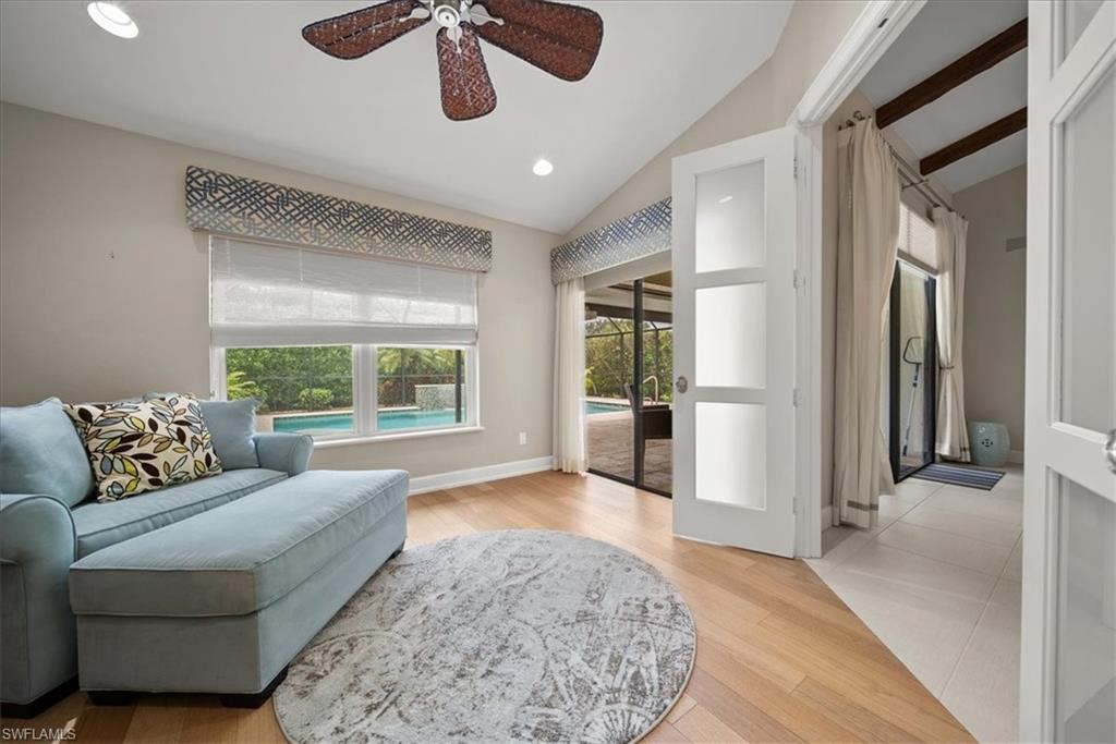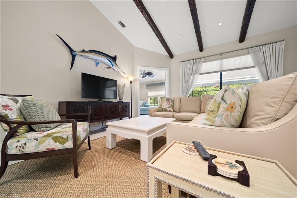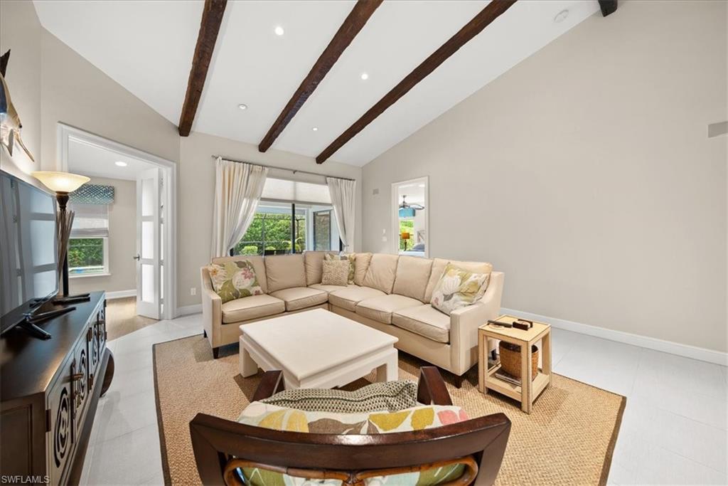 Discover 725 Kings Way — a stunning, fully renovated and furnished retreat in the prestigious Foxfire community! This beautifully updated home offers 2 bedrooms plus a den, a 2-car garage, and peace of mind with hurricane impact doors and windows. The flow of the home offers privacy with ample room for relaxing. The primary suite feels like a private spa with its own door to the pool, a walk-in closet and a luxurious multi-head shower designed for ultimate relaxation. Step outside to your own personal paradise — a screened lanai showcasing a sparkling pool with a soothing waterfall, perfect for lazy afternoons or lively gatherings. There is a covered lanai area perfect for outdoor dining. At Foxfire, every day feels like vacation with 27 holes of championship golf, an elegant clubhouse, on-site dining, fitness facility, driving range, bocce courts, and clay tennis courts — all just minutes from the vibrant heart of downtown Naples and the white sandy beaches.