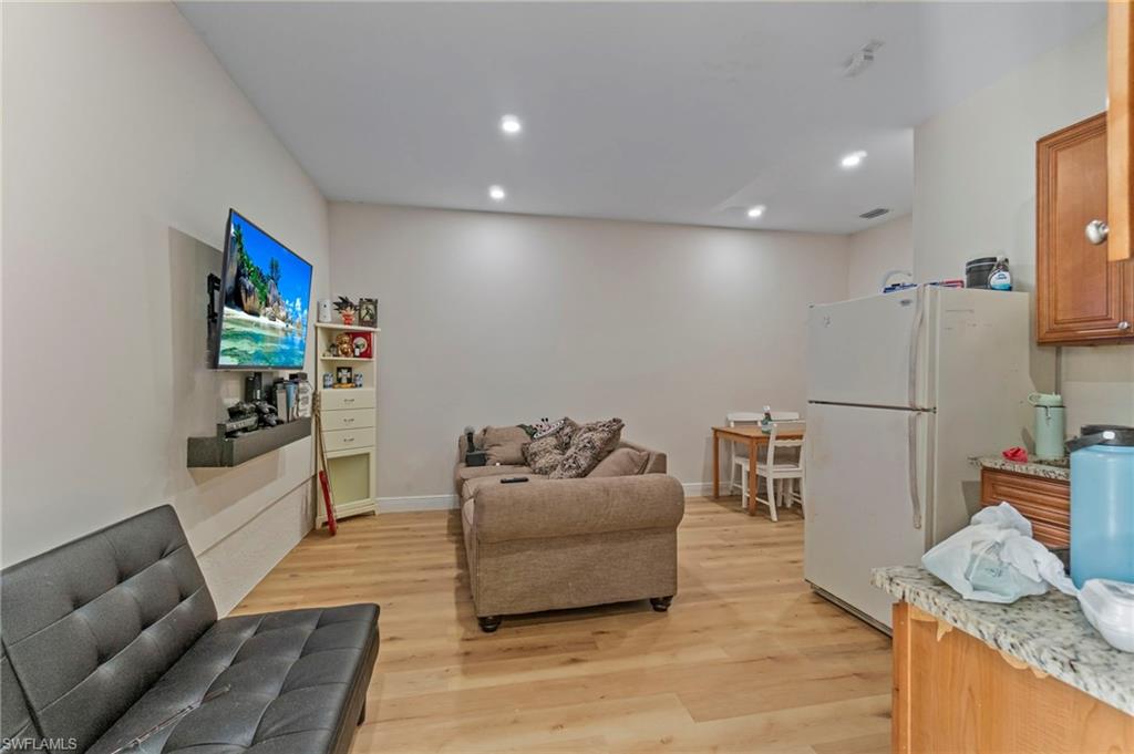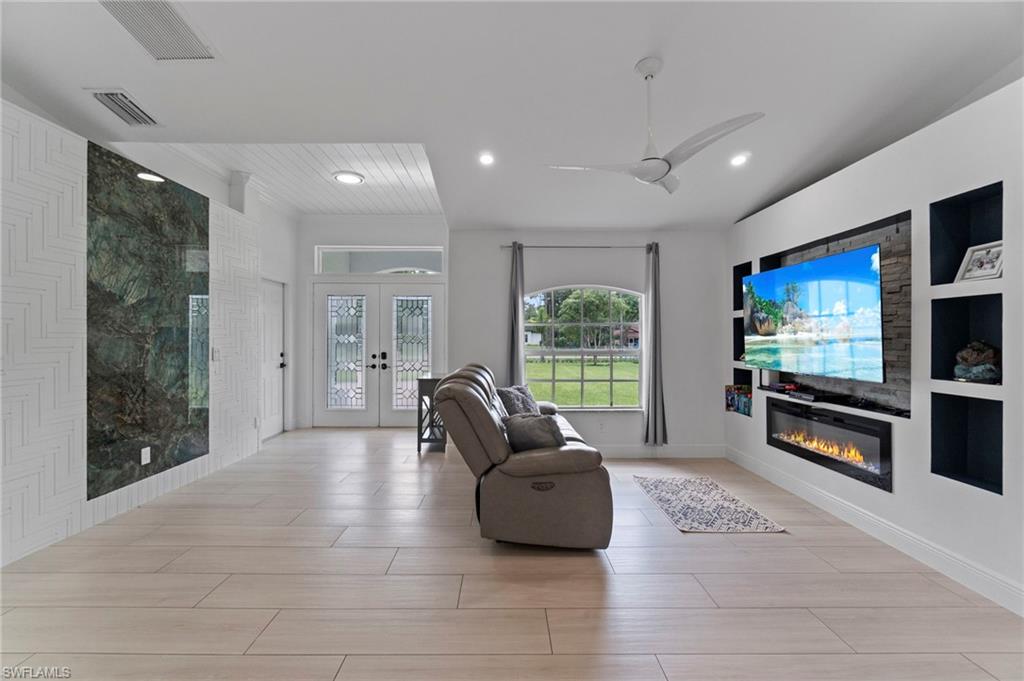 Welcome to your UPGRADED, private tropical G.G.Estates retreat - where you can HAVE IT ALL! This beautifully remodeled 3-bedroom, 2-bathroom home sits on 1.59 lush, landscaped acres and includes an attached 2-bedroom 1-bath guest apartment—ideal for multi-generational living, guests, AND/OR INCREDIBLE INCOME PROPERTY! Additional income can be realized with the equipped RV pole barn in the back acreage. Inside, you’ll find a bright, open layout with MODERN CUSTOM UPGRADES throughout. New luxury flooring, fresh interior and exterior paint, and multiple decorative accent walls are just a few of the designer additions! The spacious living area features an elegant electric fireplace, creating a warm and inviting atmosphere. The fully renovated open kitchen is a showstopper with crisp quartz countertops, updated white shaker cabinetry, modern pendant and recessed lighting, and an enormous walk-in pantry for abundant storage. Both bathrooms have been tastefully updated with new fixtures and modern tiled finishes, along with thoughtful upgrades like new lighting and faucets throughout the home. Step outside to an expansive screened-in patio with a built-in grill—perfect for year-round entertaining or quiet mornings surrounded by tropical beauty. Recent major improvements include a NEW roof (2024), NEW A/C (2024), NEW water heater (2025), and a NEW reverse osmosis water system (2023). The property has been professionally cleared and landscaped, with updated sod & irrigation along w/mature tropical trees including mango, coconut, and manymore. Calusia hedges provide added privacy, while a gated chain link fence makes the yard ideal for pets and children. Solar-powered security lighting at the entry adds peace of mind. Alongside the beautifully paved driveway is a DRIVE-AROUND ACCESS TO THE BACK OF THE PROPERTY leading to the dedicated RV PAD, which can offer great rental potential. In addition, the converted garage functions as an ADDITIONAL INCOME-GENERATING EFFICIENCY APARTMENT & is approximately 600 ft.²!! Conveniently located near the future Everglades Boulevard-to-I-75 connection, this one-of-a-kind property offers space, flexibility, and income opportunity—blending comfort, style, and LONG-TERM VALUE IN ONE EXCEPTIONAL OFFERING.