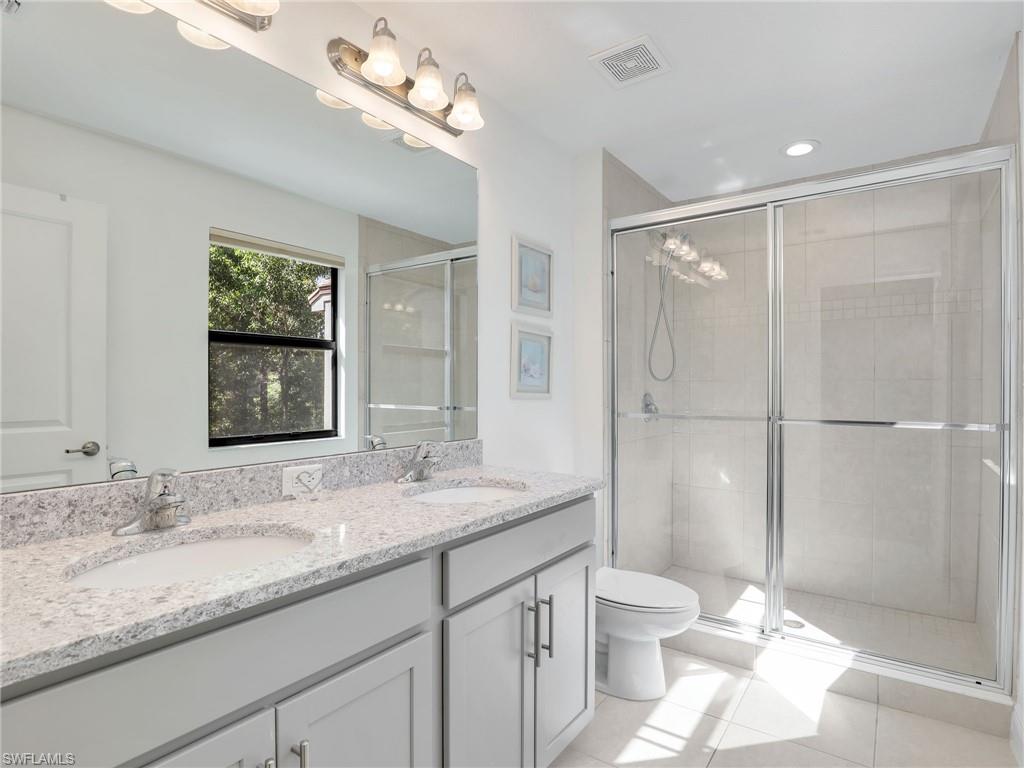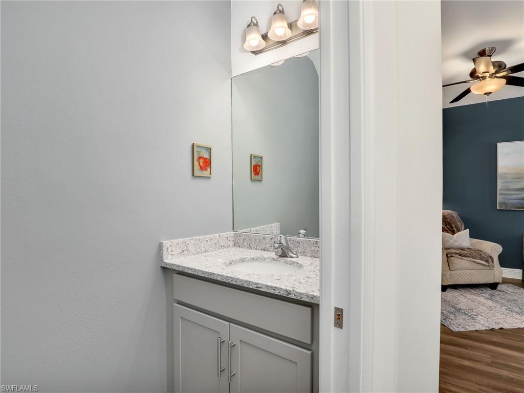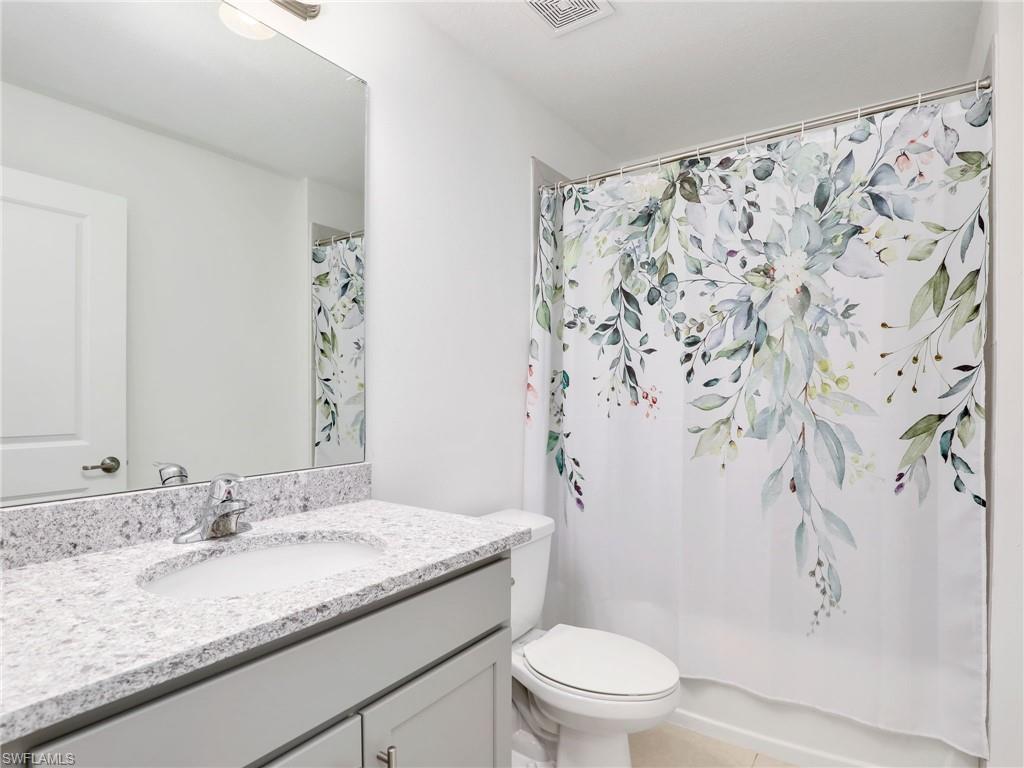 This LIKE-NEW home built in 2022 offers over 1,700 square feet of thoughtfully designed living space. 3 spacious bedrooms and 2 1/2 bathrooms with a 1 car garage as well as a front porch sitting area and screened in lanai in the back AND a screened in balcony off of the primary bedroom. This NEWER home has stylish finishes throughout, this property is move-in ready and being offered very tastefully furnished. Enjoy luxury touches including quartz countertops, stainless steel appliances, and durable luxury vinyl flooring. Out back, you'll find unlimited privacy, a fenced-in yard perfect for pets, children, or outdoor entertaining, and yes — the golf cart IS included! Living in Bonita Fairways you will have access to incredible RESORT-STYLE amenities including: A PUBLIC 18-hole executive golf course designed by Gordon Lewis (no membership required), a 19,000 sq. ft. clubhouse featuring a fitness center, restaurant/café, meeting rooms, library, and banquet space and a resort-style pool & spa, tennis, pickleball, bocce, shuffleboard, and scenic walking trails. This location is close to the airport as well as Southwest Florida’s finest restaurants and beaches. Whether you're seeking a full-time residence, seasonal retreat, or investment opportunity. ***** THERE ARE TWO VIRTUAL TOUR LINKS YOU CAN CLICK ON FOR MORE INFORMATION *****