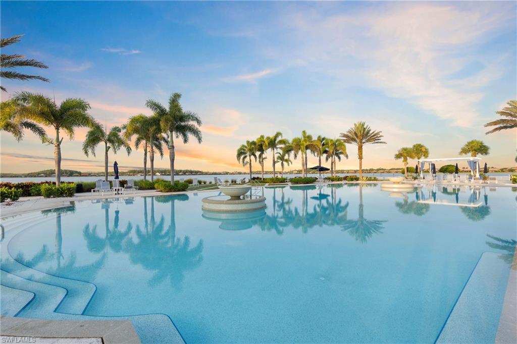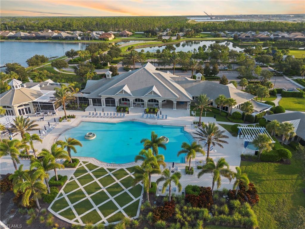 LAKEFRONT TRANQUILITY WITH WOODS & WILDLIFE! Enjoy an active, outdoor llifestyle in the Resort Style Gated Community of Corkscrew Shores! Rare view offers privacy & tranquility with no rear neighbors. Spacious tropical yard with elbow room features a covered lanai (with hook-up for your outdoor kitchen). Screened-in heated POOL & SPA WITH CASCADING WATERFALL & unobstructed view thru the 'picture window' enclosure! Indoor/outdoor dining options intermingle with full wall of zero-corner sliding glass doors. FURNISHED & READY FOR YOU NOW! Open floor plan- Pinnacle model by Pulte Homes. 3 bedrooms (2 ensuite), den/office & 3 full baths. Chefs kitchen with white cabinets, oversized island with seating, beverage nook with wine cooler & granite counters. Owners retreat with fresh paint & flooring, huge walk-in closet. Feel protected with hurricane IMPACT windows. 3 car garage with epoxy coated flooring. Low traffic cul-de-sac treelined street with sidewalks. NO CDD OR CLUB FEES. NOT IN A FLOOD ZONE. Amenity island overlooking the 240-acre lake features: Zero edge pool w/fountains, spa, indoor/outdoor restaurant & bar, firepits. Kayak & canoe launch, fishing pier, boating (non-gas), 24-hr state of the art fitness, movement studio, basketball, tennis, bocce, ping pong, pickle-ball courts, playground, picnic area. Close to FGCU, Airport, Hertz Arena, open air shopping & dining.