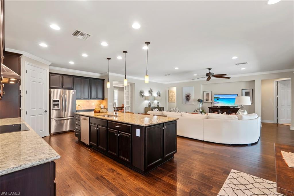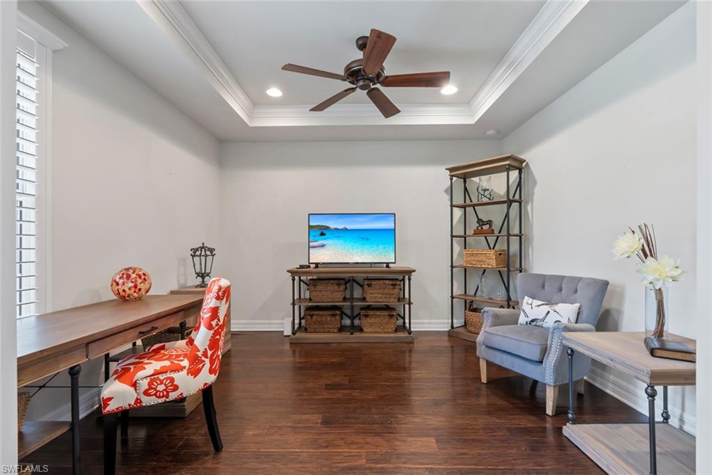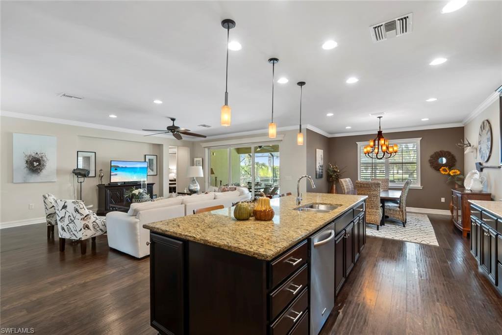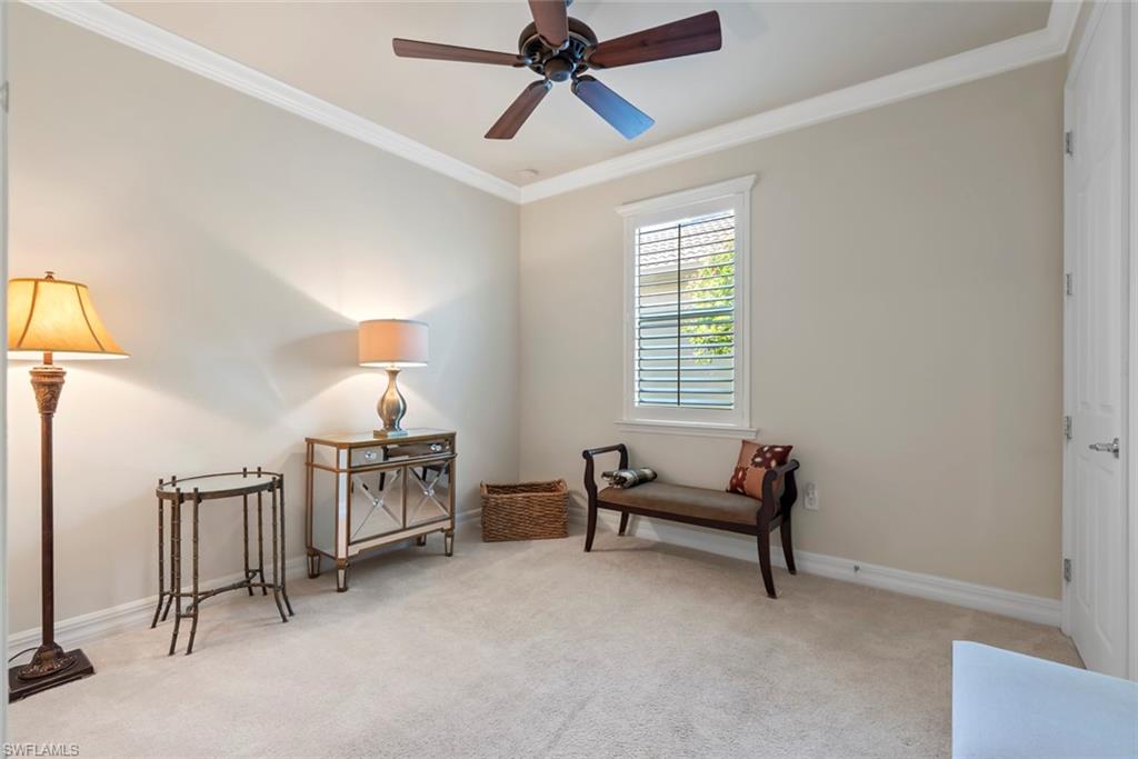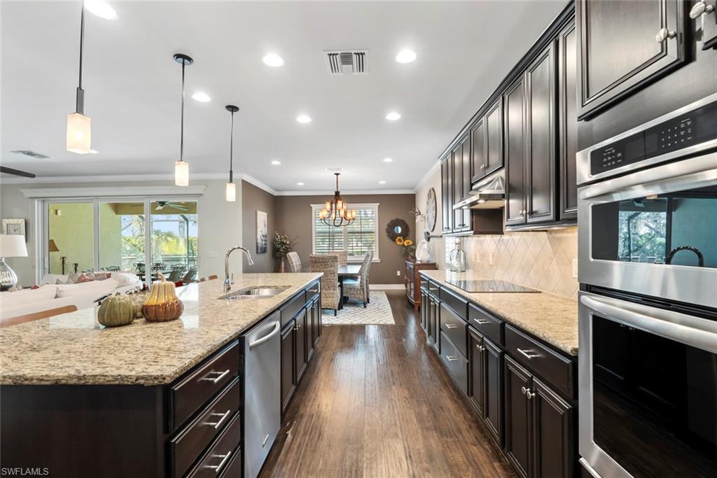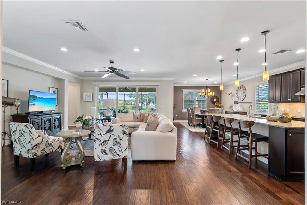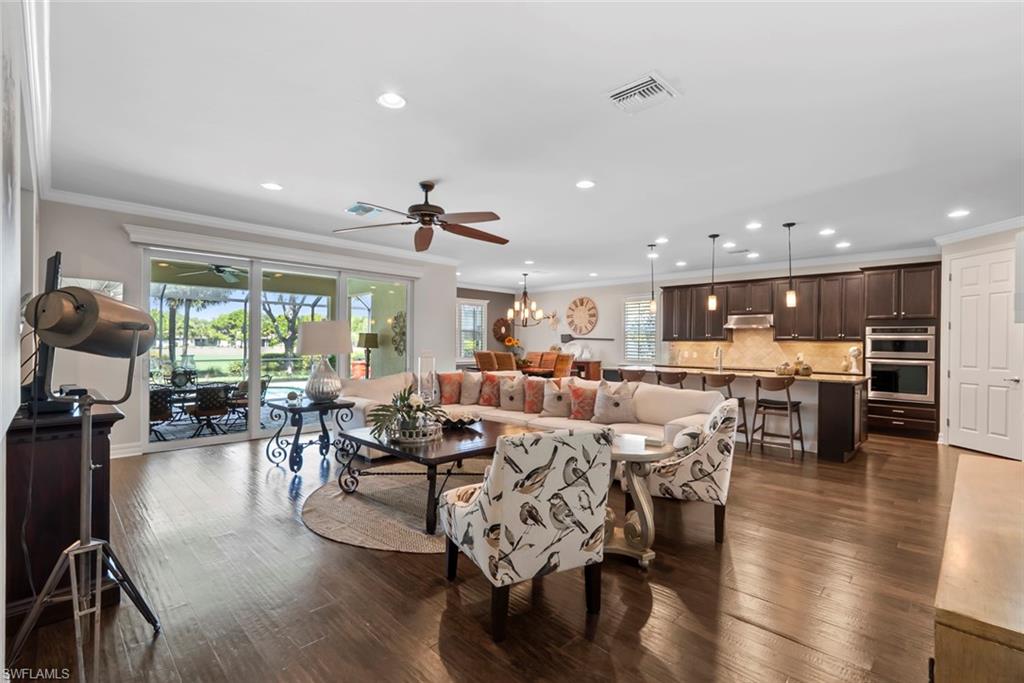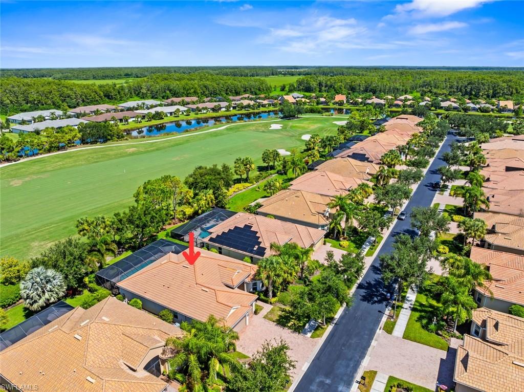 PREMIUM GOLF COURSE VIEW - Featuring the DUNWOODY floor plan—comparable to the beloved STELLAR model is located on the 2nd fairway of Panther Run Golf Course, offering breathtaking SUNSET and golf views in the 55+ Del Webb Naples community. Sellers will provide a GOLD HOME WARRANTY at closing - adding peace of mind for the buyer. This home features a GOURMET KITCHEN with a spacious island, UPGRADED APPLIANCES, and generous cabinetry with PULL OUT DRAWERS—ideal for everyday use and hosting guests. Throughout the home, you’ll find PLANTATION SHUTTERS, crown molding, and thoughtful finishes that elevate the space. You will have a peace of mind during storm season with the IMPACT RESISTANT WINDOWS. With 3 bedrooms plus a versatile den, there’s flexibility for guests, a home office, or hobbies. Step outside to your own private retreat: an EXTENDED SCREENED-IN LANAI with a sparkling SALTWATER POOL, perfectly positioned to capture stunning sunset views. The elegant PRIMARY SUITE offers a custom walk-in closet and a luxurious bath with dual vanities and a spacious walk-in shower. The 4-FOOT EXTENDED 3 CAR GARAGE provides ample room for a golf cart, workshop area, or additional storage. Recent updates include a NEWER POOL PUMP and FILTER, as well as a newer WATER HEATER for added peace of mind.This home seamlessly blends function, comfort, and luxury in one of Southwest Florida’s premier active adult communities. With FURNISHINGS NEGOTIABLE, this home is ready to move in NOW! GOLF LOVERS - Panther Run Golf Club offers optional MEMBERSHIPS with premium golf experiences just steps from your backyard. As a proud resident of Del Webb Naples, you’ll enjoy WORLD-CLASS AMENITIES that rival luxury resorts: dine at the Rusty Putter Restaurant, soak in the RESORT-STYLE or LAP POOLS, break a sweat in the state-of-the-art FITNESS CENTER, and play your way through PICKLEBALL, TENNIS, bocce, billiards—even a top-tier GOLF SIMULATOR! Need groceries, church, or a bite to eat? Just hop in your golf cart and cruise into town—Publix and the heart of Ave Maria are just minutes away. This isn’t just a home—it’s a LIFESTYLE UPGRADE in one of Southwest Florida’s most vibrant 55+ communities. Don’t miss your chance to live where fun, fitness, and friendships flourish year-round!
