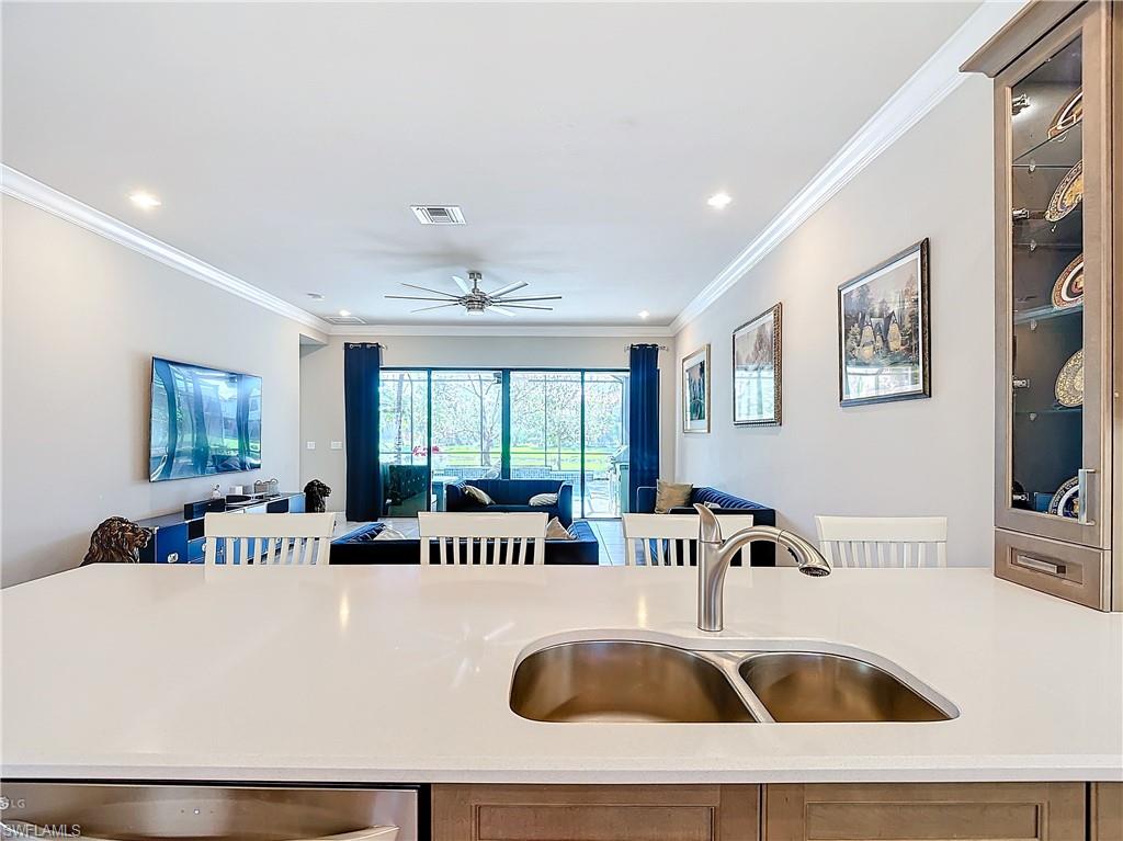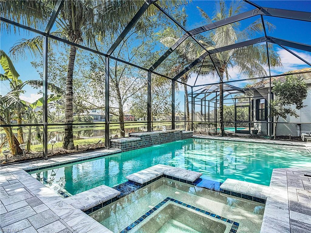 Motivated Sellers - Come check out your new beautiful Newcastle model home in Stonecreek! Please note property is rented from 12/25 to March 2026!This home is a cook's dream and has upgrade after upgrade. Quartz countertops, full height backsplash and large sitting bar. Natural gas. High Tech Refrigerator. Over and under cabinet lights. Large open main floor with 8” Crown Molding that led to the lanai with built-in kitchen area and natural gas grill. Large, natural gas heated, saltwater pool and spa overlooks the lake. Smart Screen Storm Shutters on remote control are over the covered lanai area and window above the outside grill. Ground floor Primary suite with trey ceiling, two walk-in closets with built-ins. Pocket doors in Primary and En-suite baths. En-suite upstairs with additional two bedrooms, full size bath and loft area. Full size bath with shower on ground floor. Feel safe in your home that has a full security system. REME Halo Air Purifier System built into both AC Units. First floor AC unit brand new May 2024; inside and outside units were replaced. Upstairs AC Unit installed in 2023; full maintenance done in May 2024 so just like new. Always keep your power on with the 22 KW Generac whole house emergency generator. Laundry room has under stairs storage and there is a Tesla Charging Station in the garage. For full list of upgrades, a Features and Upgrades List has been attached to the MLS documents. Stonecreek is a wonderful family community with a very desirable North Naples location that features a playground, kid splash pool, tennis, an indoor and outdoor basketball court and Pickleball! You won't want to miss seeing this one!