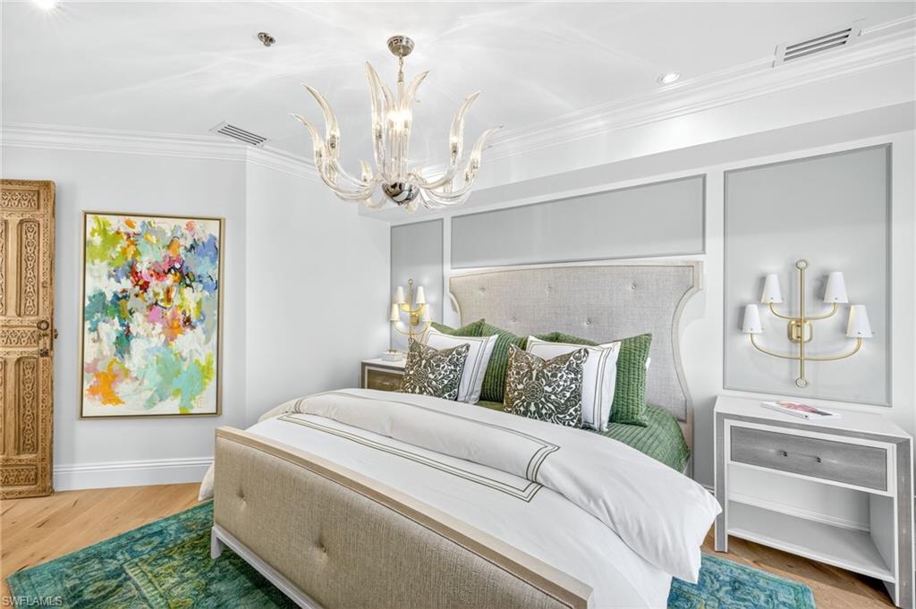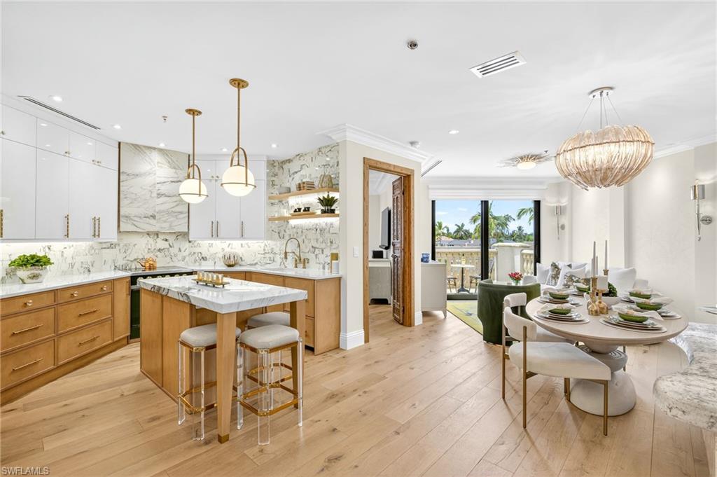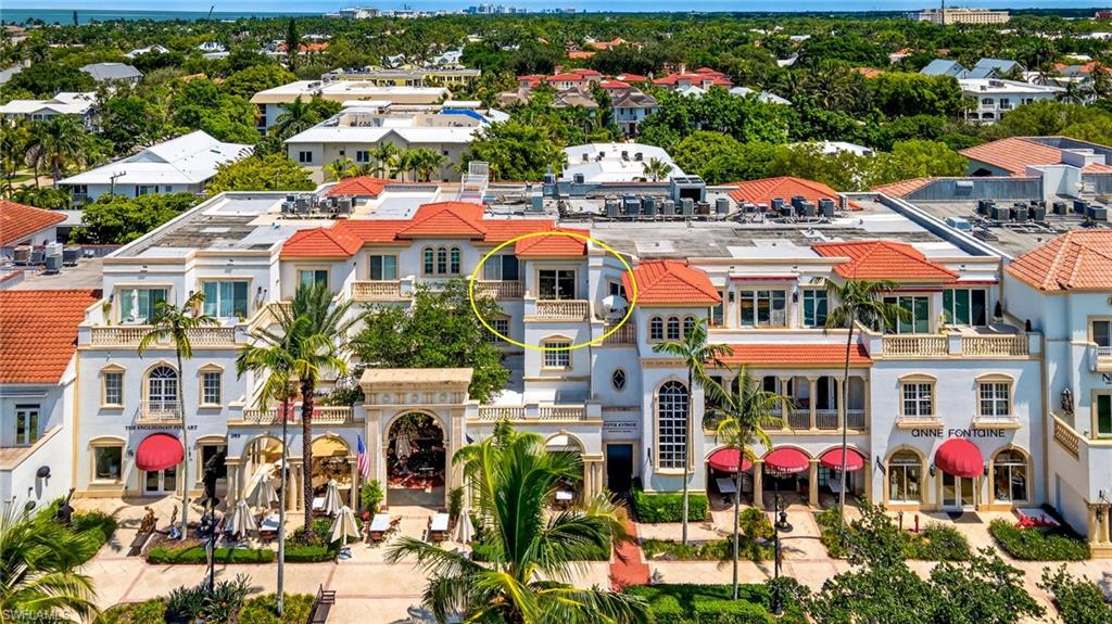 Rarely available! Spectacular 5th Avenue penthouse front and center to all that's special in Olde Naples! This gorgeous completely renovated condominium affords beautiful hardwood flooring, a fabulous kitchen with state of the art appliances including a kitchen island with a beverage refrigerator and microwave plus a new HVAC. Two exquisite bathrooms are equipped with unparalleled fixtures. Offer FURNISHED, you will be amazed at the dazzling luxury in this two bedroom unit! The double balcony is the perfect place to enjoy parades, annual car shows, morning coffee or quiet sunsets and al fresco dining. Two assigned parking places for the owners. Stroll the infamous 5th Avenue and enjoy a plethora of dining and shopping venues with this most enviable address. Only two blocks to the incredible Gulf beaches!