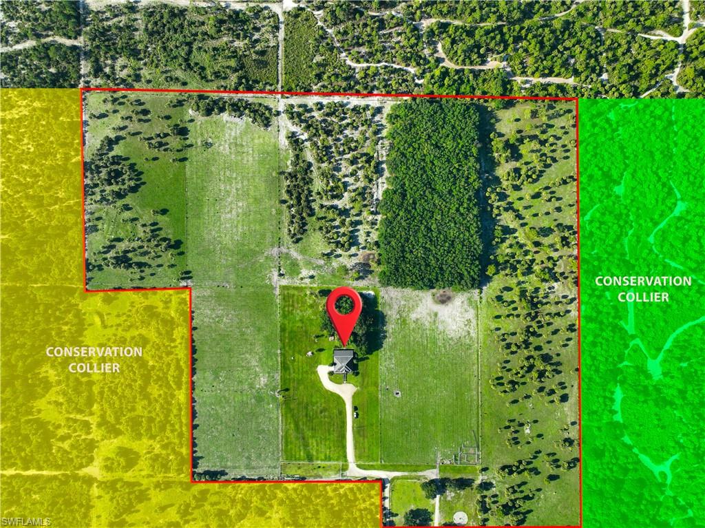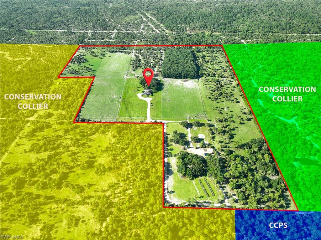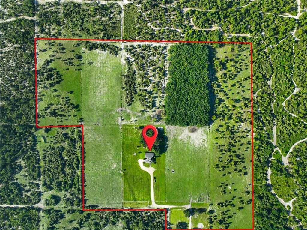Rare 55-Acre Agricultural Estate with Custom Home, Equestrian Facilities & Private Shooting Ranges offered in Naples, Florida – A Truly One-of-a-Kind Property! Discover an extraordinary opportunity to own 55 acres of pristine upland (with only ½ acre of wetlands) in one of Southwest Florida’s most desirable rural communities. Zoned Agricultural Base with a Rural Residential Overlay, this expansive estate offers unmatched versatility—ideal for farming, equestrian pursuits, outdoor recreation, or a private family compound. At the heart of the property sits a beautifully decorated 2,217 sq. ft. home, expertly designed with charm and comfort in mind. This residence offers a warm, inviting interior with thoughtfully curated finishes and ample space for family living or entertaining. Property Features Include: Multiple Agricultural Wells for high-volume irrigation or farm use Fully Fenced & Penned for horses and livestock, with dedicated riding trails throughout Private Shooting Ranges: Skeet shooting range, long gun range, and a pistol range Lush, Wooded Areas offering both natural beauty and privacy Riding & Walking Trails winding through mature hardwoods and native vegetation Rural Residential Overlay allows for private living while maintaining agricultural operations This property offers a rare blend of functionality and serenity, perfect for anyone seeking space to live, work, and play in nature—just a short drive from Naples’ beaches, shopping, and dining. Whether you're looking to expand your agricultural operations, enjoy equestrian living, or simply escape to a secluded outdoor haven, this is a once-in-a-generation opportunity to own one of the largest tracts of private land in the area.