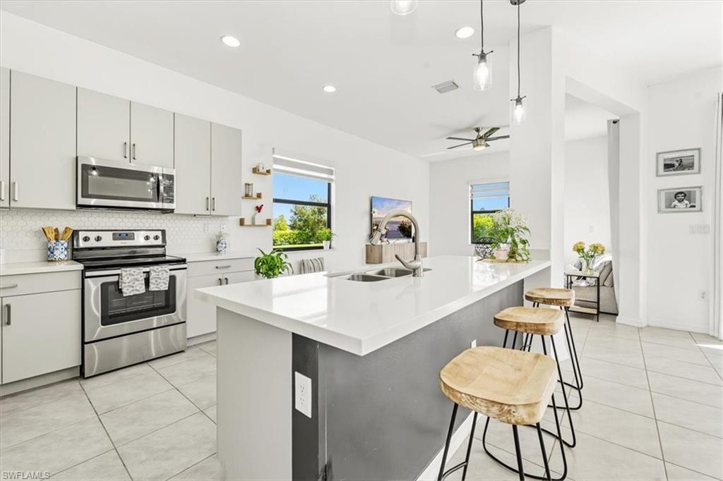 Step into this spectacular oversized corner lot home located in Coquina at Maple Ridge. This beautifully upgraded Balboa Model offers two stories of comfortable, modern living with 3 bedrooms, 2.5 bathrooms, and a 1-car garage. Inside, you'll find soaring 10-foot ceilings on the first floor and 9.4-foot ceilings on the second floor, creating an open and spacious atmosphere. The home features elegant 12x12 Dal-Tile flooring in the main living areas, 8-foot interior doors, a Mediterranean-style roof, a keyless garage entry, and an open-concept great room filled with natural light. The kitchen is designed with style and functionality in mind, offering sleek 42-inch upgraded cabinetry, quartz countertops throughout, stainless steel appliances, recessed lighting, and contemporary light fixtures. The expansive owner’s suite includes dual sinks, a seamless glass shower, a walk-in closet, and an additional closet for added convenience. Enjoy stunning side lake views from your private corner lot, offering a sense of space and serenity. Located in Flood Zone X, this home requires no flood insurance, providing peace of mind. Living in Maple Ridge at Ave Maria gives you access to a wealth of amenities, including a vibrant clubhouse, entertainment spaces, walking and jogging trails, tennis, pickleball and bocce courts, a dog park, water park, soccer field, multiple playgrounds, a fitness center, and more. Don’t miss the opportunity to make this upgraded and move-in-ready home yours—schedule your private showing today.