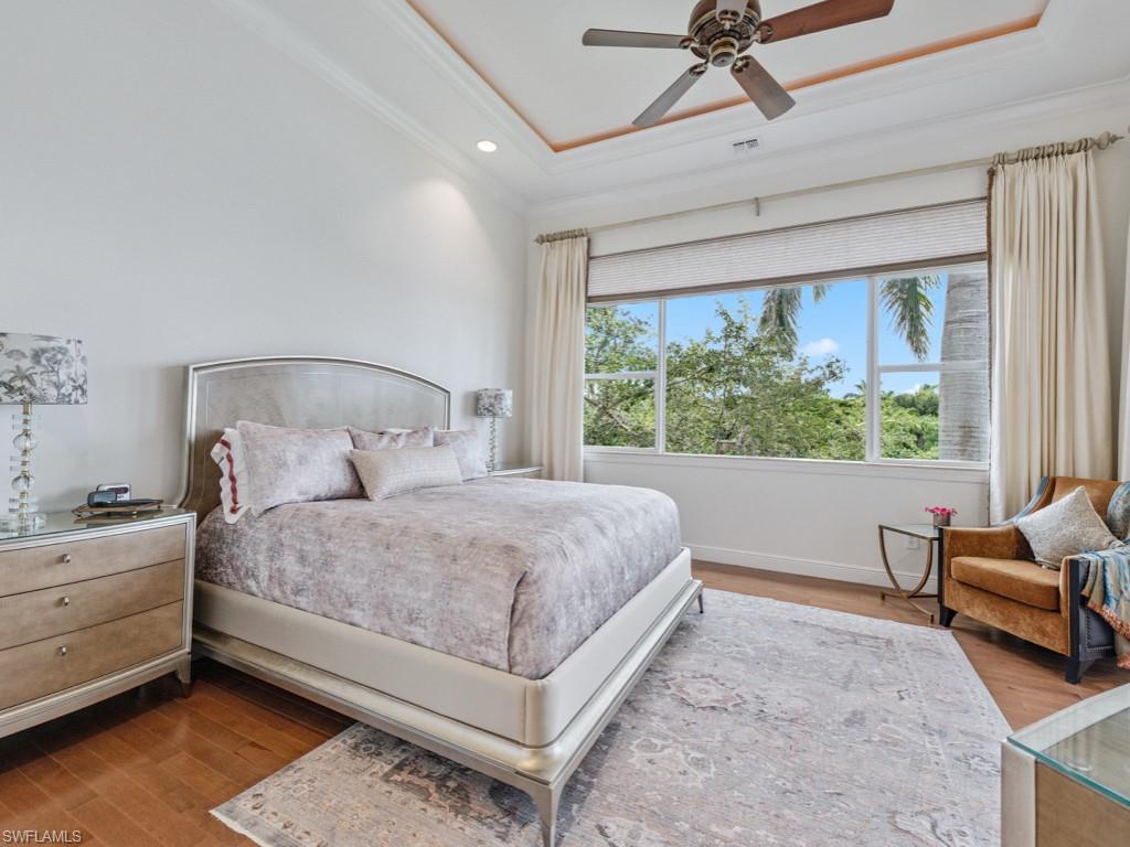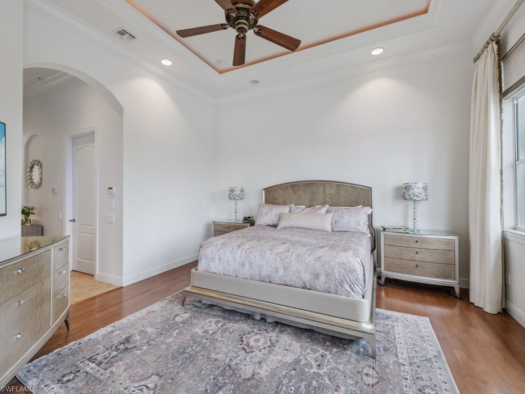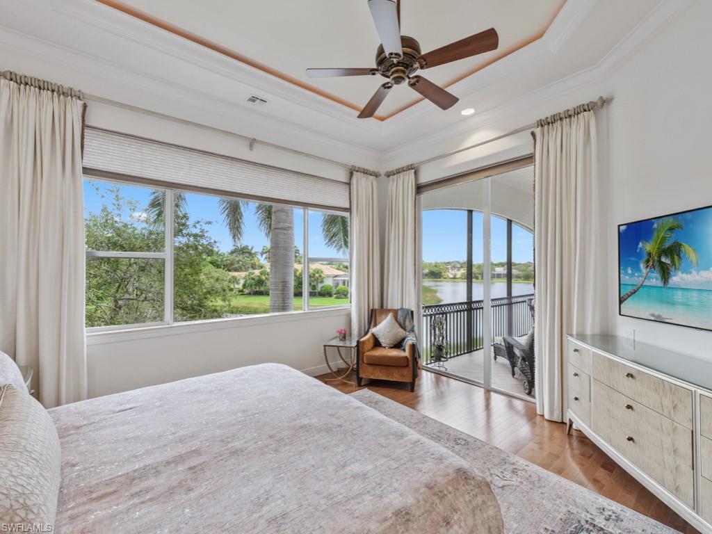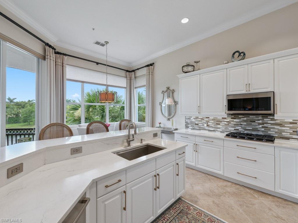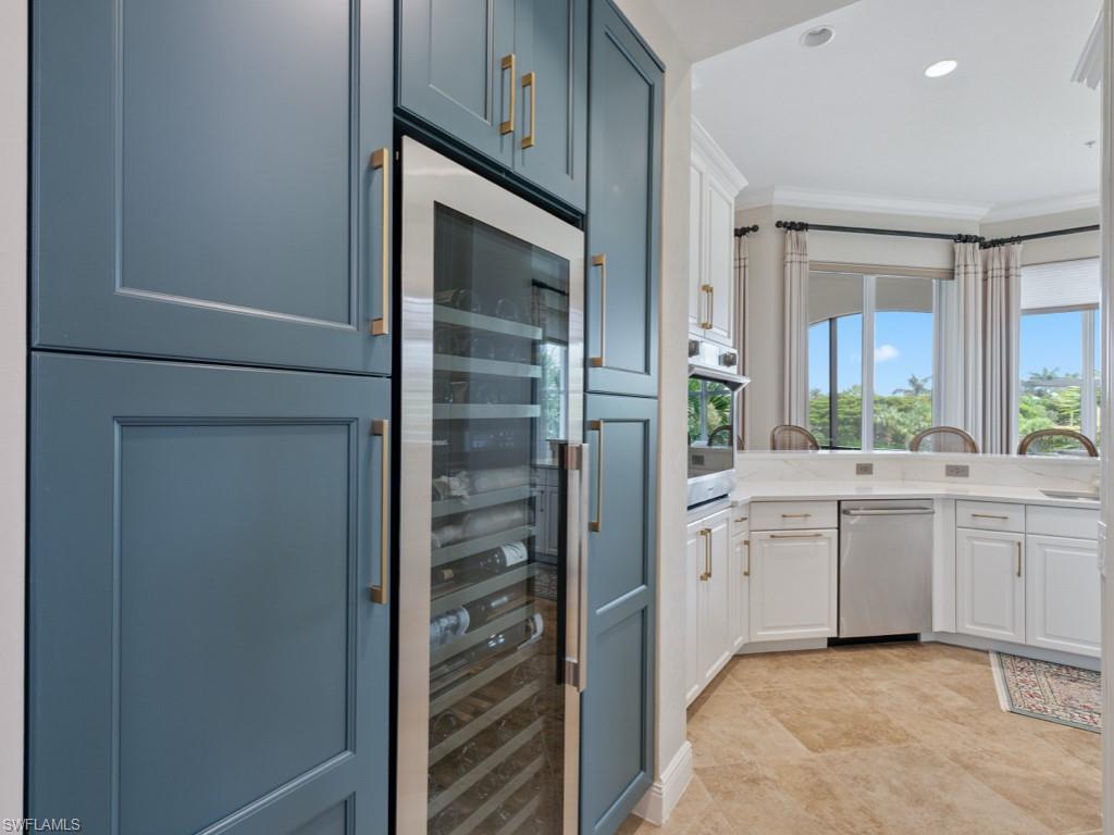 NO WAITING! GOLF MEMBERSHIP SLOT AVAILABLE IMMEDIATELY! Located in the prestigious golf & country club community of Mediterra in Naples, FL. Elegantly updated and move-in ready, this exceptional second-floor coach home in Mediterra offers timeless luxury and effortless comfort. Arrive through your private elevator to a light-filled open layout featuring three spacious bedrooms, a versatile den, and a two-car attached garage. The updated kitchen is stunning, featuring quartz countertops, soft-close cabinetry, stainless steel appliances, and a built-in wine cooler. The expansive living area boasts soaring tray ceilings and opens seamlessly to a large screened lanai with peaceful lake views. The primary suite is a private retreat with hardwood floors, oversized windows, lanai access, and a spa-worthy updated bathroom complete with a freestanding tub, two vanities, and a striking walk-in shower. Additionally, it features a laundry room with built-in cabinetry and a prep sink, a stylish breakfast nook, and upgraded finishes throughout. The home is also just steps from the neighborhood pool and spa in Calabria. Mediterra is a prestigious luxury golf & country club community featuring Two championship Tom-Fazio golf courses for avid golfers, a private beach club with restaurant & bar, multiple tennis courts, pickle-ball & bocce, fitness center, pristine bike & jogging trails, and luxurious dining at the private country club restaurant. The Mediterra Beach Club offers an escape to a 10,000 sq. ft two-story private oceanfront paradise on the Gulf of Mexico. Featuring a restaurant & bar that serves members via indoor & outdoor dining, this private facility boasts a heated swimming pool, a sundeck, and cabana beach service for chairs, umbrellas & refreshments.