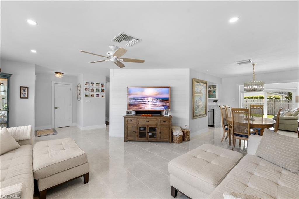 This is a classic mid-century modern home that has been extensively, thoughtfully, and lovingly updated in an A++ location. Consistently well cared for over time inside and outside, large manicured lot, big open south facing fenced in backyard. High and dry, no storm surge or flooding, no wind damage, no insurance claims, sought after hard to find ”X” zone. No HOA. All rooms in the home are generous sizes with terrific natural lighting throughout. This home has a great open feeling yet has clearly defined rooms and spaces … lives fantastically. Superb floor plan with large living room and separate family room plus formal dining area are the beginning of what this 3 bedroom, 2.5 bath home with large 2-car garage … big garage can accommodate large SUV like Suburban or Yukon XL or full-size Escalade plus sedan or minivan. Family room currently utilized as a generous office / flex area. Updates include: new roof ~ new ac and large water heater ~ quartz kitchen surface with waterfall edge ~ home rewired and new electrical panel installed plus structured panel for cable / internet / ethernet ~ all exterior windows and sliders replaced with PGT impact glass ~ front door with sidelight and laundry room side door replaced both are impact rated ~ impact rated garage door installed and motor etc. all replaced except for rails ~ installed irrigation system including electronics and below ground irrigation lines ~ all interior doors and baseboards replaced ~ master bath renovated ~ kitchen updated ~ overhead LED lighting installed ~ backyard LV lighting ~ and lots more great functional and practical touches. Large laundry room, home is generator ready, uniform large tile flooring throughout residence. Location is amazing … just across US 41 from Park Shore, bike to Clam Pass Park or Seagate beach accesses, close to Sea Gate Elementary School, close to Waterside and Venetian Village, almost equidistant to Mercato and 5th Avenue South, conveniently close to anything and everything you may need or want day-to-day and then some. Sought after school districts. The pictures give you a strong sense of what this home offers but seeing it in person is even better … come for a visit. If value and location are important to you then you do not want to miss this home.