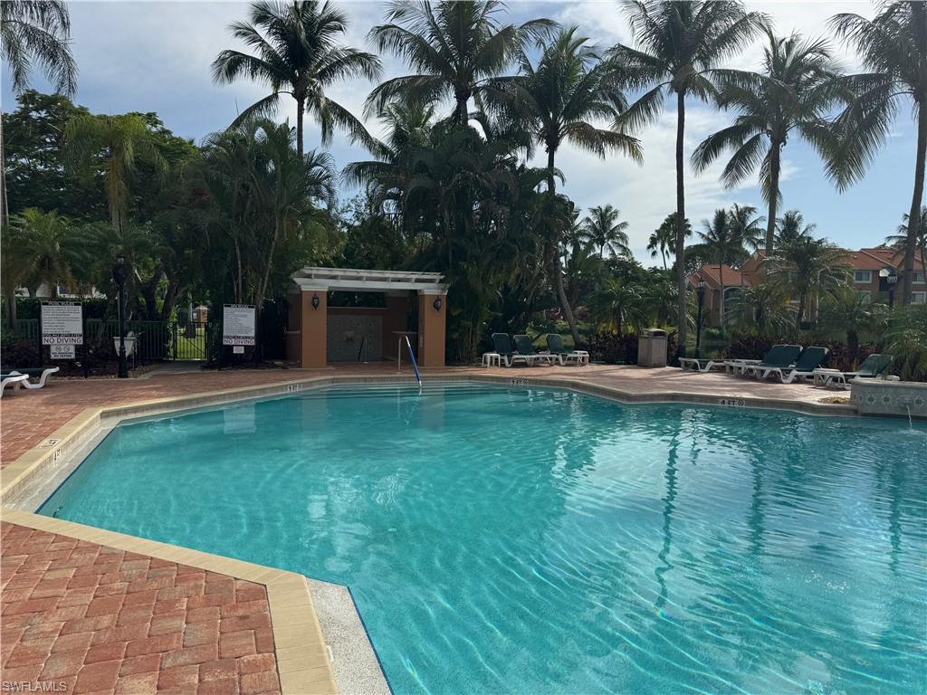 Welcome to The Enclave of Naples. THREE BED GROUND FLOOR WITH GARAGE. A hidden secluded gated community tucked away from busy roads and loud noise. Great room style kitchen, living and dining with a split bedroom floor plan. HOA dues are reasonable. The community is well looked after and cared for by a long standing onsite manager. Amenities include swimming pool / spa, billiards room, library/lounge, weights and racket ball. Outdoor grilling and tables at the club house are available to use. Newer AC, New Refrigerator, New Microwave, Newer range and dishwasher.