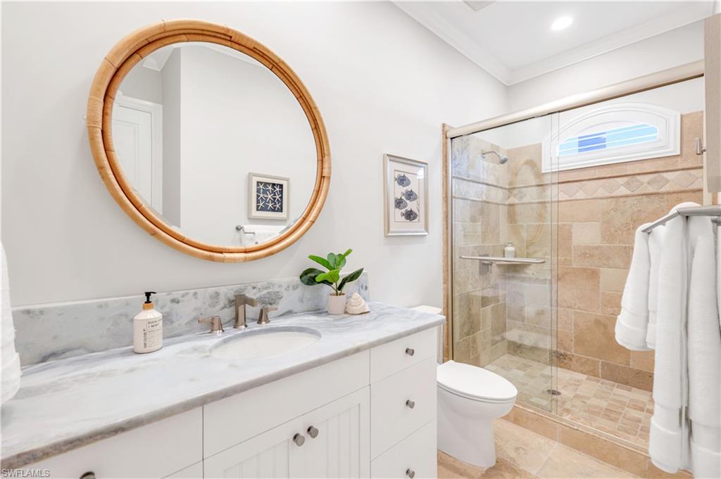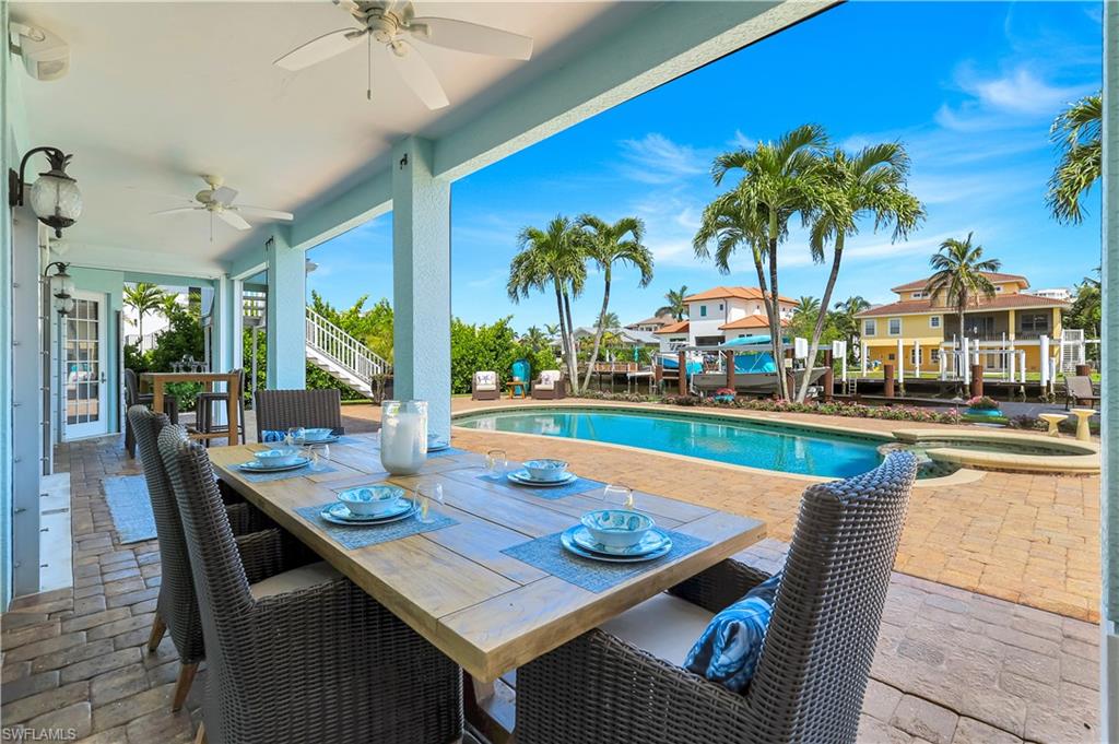Luxury Waterfront Smart Home in North Naples – Gulf Access, No HOA, Weather Wise Experience luxury coastal living in this custom-built Stiles-Sowers 3-story smart home with direct Gulf access via Wiggins Pass, Pool, Spa, boat dock and countless upgrades! Designed for storm readiness, the property includes impact-resistant windows, whole house generator, flood panels, buried LP gas tank, multiple sump pumps, and elevated pool equipment housing. Integrated smart-home and security systems provide remote control of lighting, climate, music, temperature, and security for effortless living. The ground level includes a spacious game room with billiards, full bath, and cabana suite, plus multiple garages with epoxy floors, built-in storage, refrigerators, and workbench—perfect for guests, in-laws, or hobbyists. The main living level features an open-concept coastal design with coffered ceilings, travertine stone flooring, granite counters, and custom cabinetry. A formal dining room with casement windows, gourmet chef’s kitchen with gas range, oversized island, and gathering bar, plus a wet bar with wine cooler and ice maker, make entertaining seamless. A gas fireplace with lighted built-ins adds warmth and sophistication. The owner’s suite spans the top floor with a private den/office, spa bath with Jacuzzi tub, custom closets, wood flooring, and private balcony. Additional bedrooms are generously sized with designer finishes. Enjoy resort-style outdoor living with multiple balconies, covered seating areas with ceiling fans, integrated speakers, expansive paved deck, and a heated pool & spa. The property’s captain’s walk dock, 15,000 lb boat lift, and seating deck create the ultimate waterfront retreat. Set on a professionally landscaped, fenced lot with dual brick paver driveways, this premier address west of US-41 is walkable to Delnor-Wiggins State Park, white-sand beaches, shopping, dining, entertainment and top Naples schools.