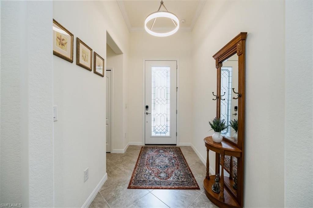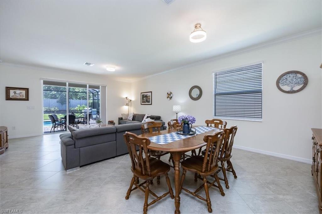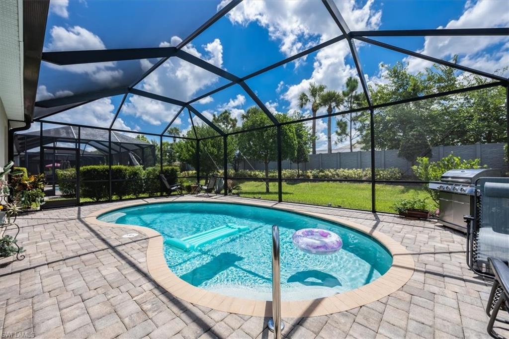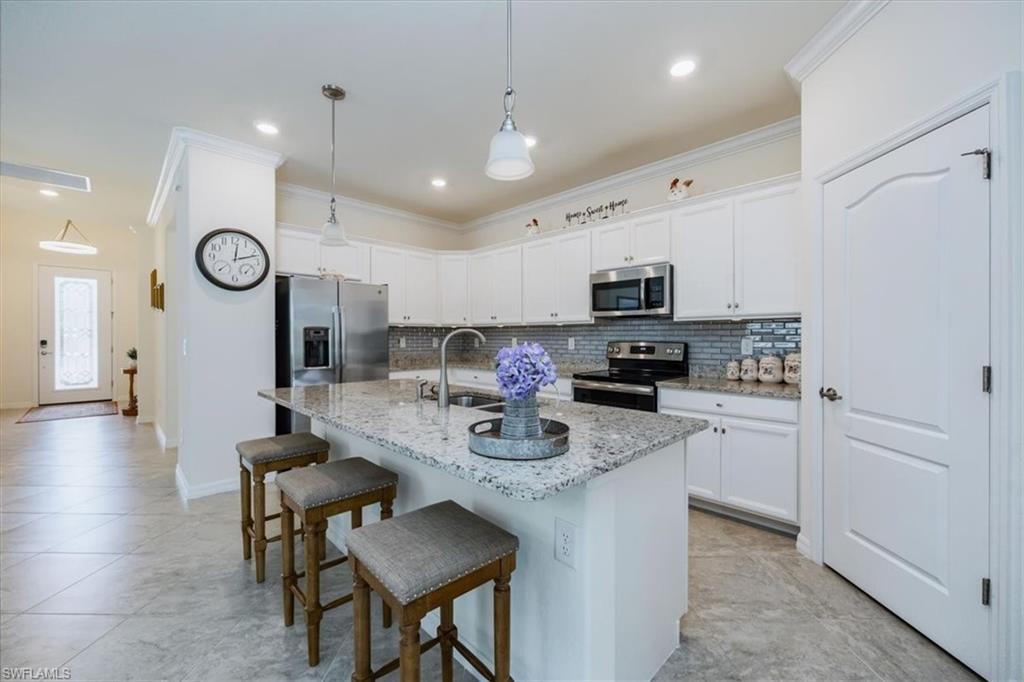 Step into the Florida lifestyle you’ve been waiting for—this 4-bedroom, 3-bath pool home in the gated community of Bonita Landing offers modern design, everyday comfort, and a true sense of retreat. Just 8 years young, the home welcomes you with soaring ceilings, tile floors throughout, and a bright open floor plan that makes entertaining effortless. The chef’s kitchen features granite countertops, a designer backsplash, stainless steel appliances, a large center island with breakfast bar, and a roomy walk-in pantry. The spacious dining area flows seamlessly into the living room and out to the lanai, creating a natural gathering space for family and friends. The split-bedroom layout provides privacy for guests, while the primary suite boasts dual sinks, an oversized shower, linen closet, and two walk-in closets. Step through sliding glass doors to your private oasis: a heated, screened pool surrounded by lush tropical landscaping—a serene backdrop for morning coffee, weekend barbecues, or sunset cocktails. Additional features include smart-home technology, an insulated 2-car garage with attic storage, and low HOA fees that cover cable and internet. Bonita Landing is a quiet, pet-friendly community centered around a 40-acre lake, with amenities including fishing, tennis, basketball, a children’s park, and a fishing pier. Across the street, the CREW Flint Pen Strand conservation area offers miles of trails for hiking and biking. All this, just minutes from the fabulous Midtown Bonita, dining, shopping, I-75, golf, and the pristine Gulf beaches. This isn’t just a home—it’s a lifestyle. Come experience it for yourself—schedule your private showing today.