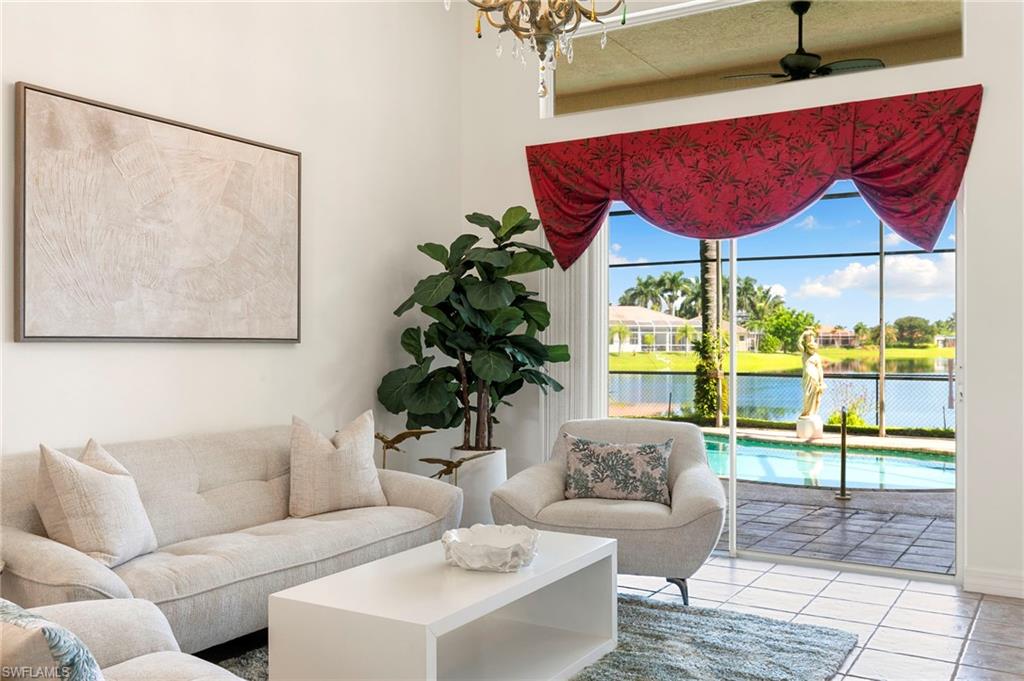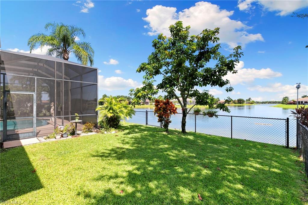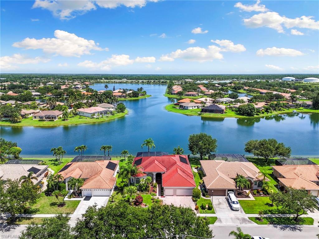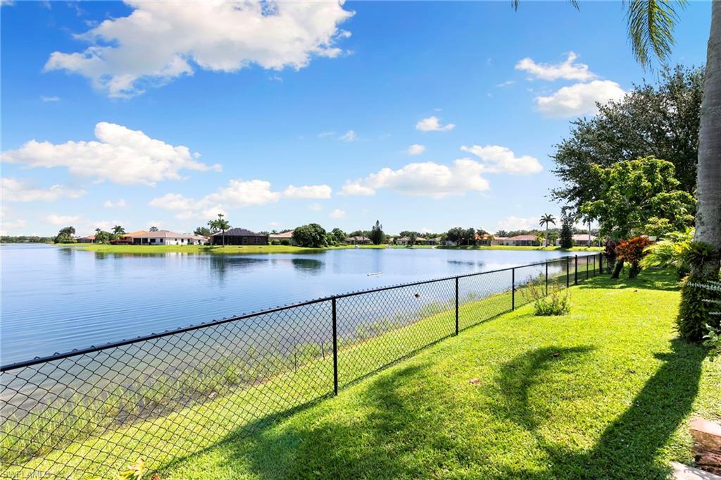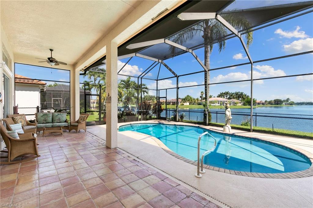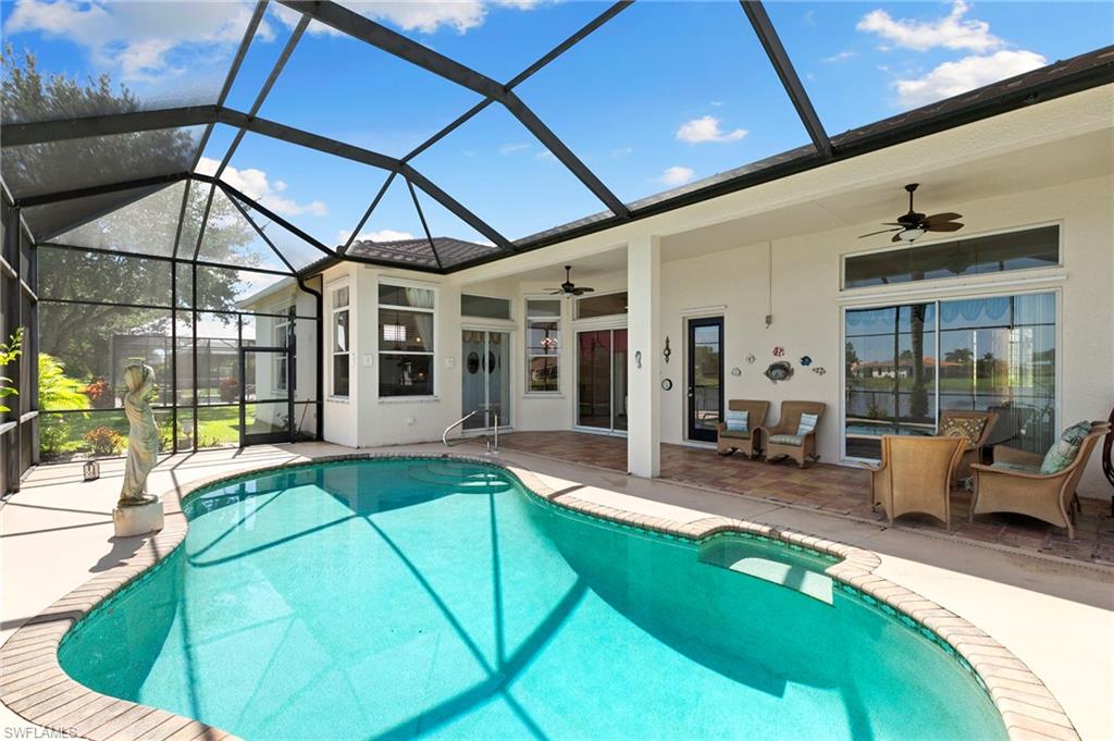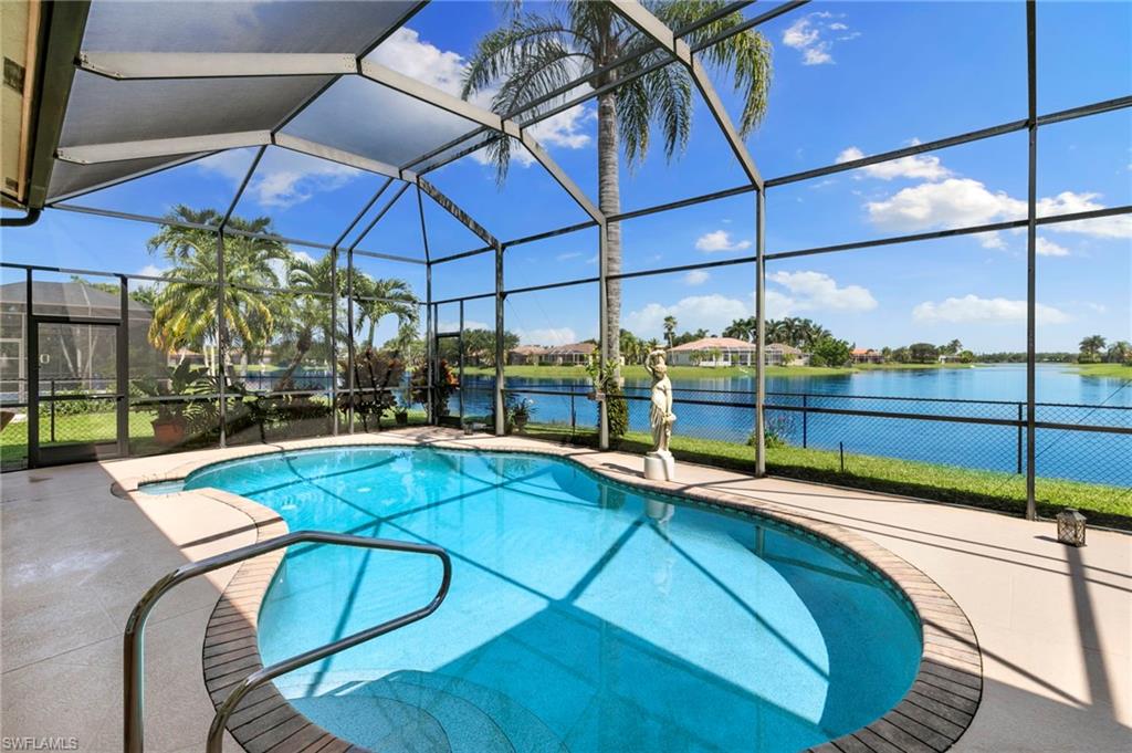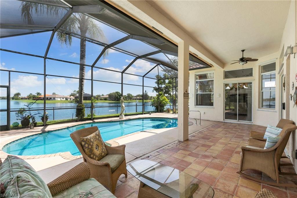 Discover Your Dream Home in Waterways – Now Available! Set in an X flood zone within the peaceful and picturesque Waterways community, this beautifully maintained single-family home offers the perfect blend of relaxation, luxury, and comfort. Unwind by the sparkling pool as you take in endless, tranquil lake views from your private screened lanai—your personal outdoor oasis. This spacious 4-bedroom + den, 3-bath residence is designed for effortless living and memorable entertaining. Step through the welcoming foyer and be immediately captivated by panoramic lake views framed by the home’s expansive rear windows. A bright, airy den sits to the left, overlooking the lushly landscaped front yard filled with vibrant blooms and greenery. Multiple living spaces—including a sunlit sitting area with lanai access and a charming dining room illuminated by an elegant chandelier—offer flexibility and flow. The open-concept family room also leads out to the lanai, creating a seamless indoor-outdoor experience. The heart of the home is the large, well-appointed kitchen featuring rich granite countertops, stylish white backsplash, warm wood cabinetry, stainless steel appliances, a convenient prep island, breakfast bar seating, and a built-in desk area. A walk-in pantry and nearby laundry room with sink and cabinetry add essential functionality. Three generously sized bedrooms share a spacious full bath with dual sinks, a shower/tub combo, and ample storage. On the opposite side of the home, a dedicated pool bath provides easy access for outdoor entertaining. The expansive owner’s suite is a true retreat—complete with tray ceiling, private lanai access, dual walk-in closets, and a luxurious ensuite bathroom featuring a soaking tub, separate glass-enclosed shower, dual vanities, storage closet, and water closet. Outside, enjoy a fully paved lanai, in-ground pool, sweeping lake views, and a fenced backyard ideal for pets or play. Residents of the gated Waterways community enjoy a wealth of amenities, including cable and Wi-Fi as part of the HOA dues, as well as access to a community clubhouse with pool and fitness center. The neighborhood also offers basketball and tennis courts, volleyball, a BBQ area, a park, and even an on-site boat and RV storage area available to homeowners. Located in the sought-after Estates area, this home offers quiet living just minutes from A-rated schools, Founder's Square, Publix, I-75, and the Gulf beaches. This is Florida living at its finest—don’t miss your opportunity to own this exceptional lakefront home!