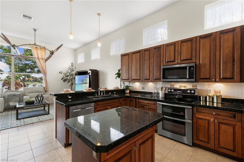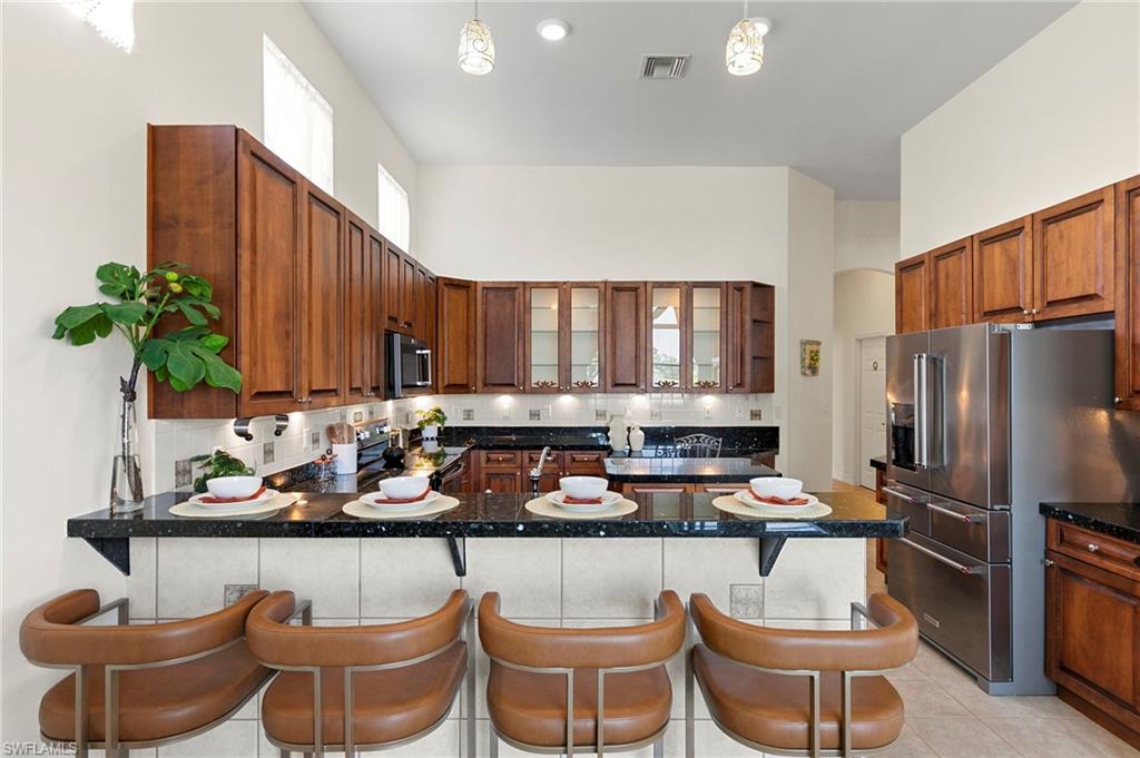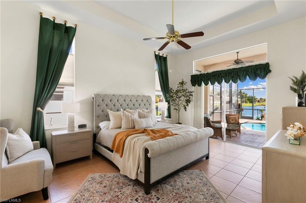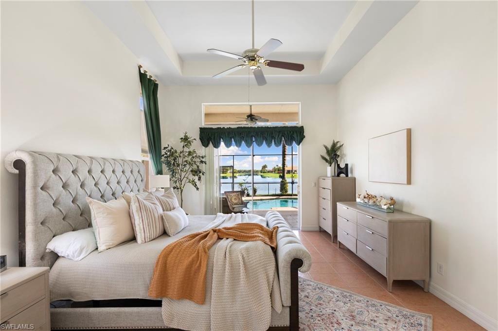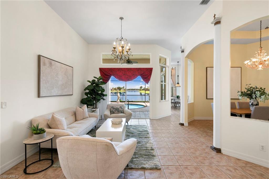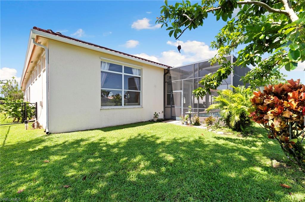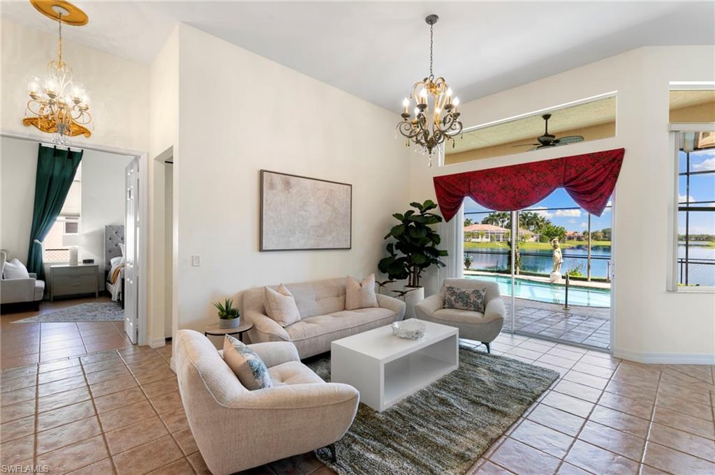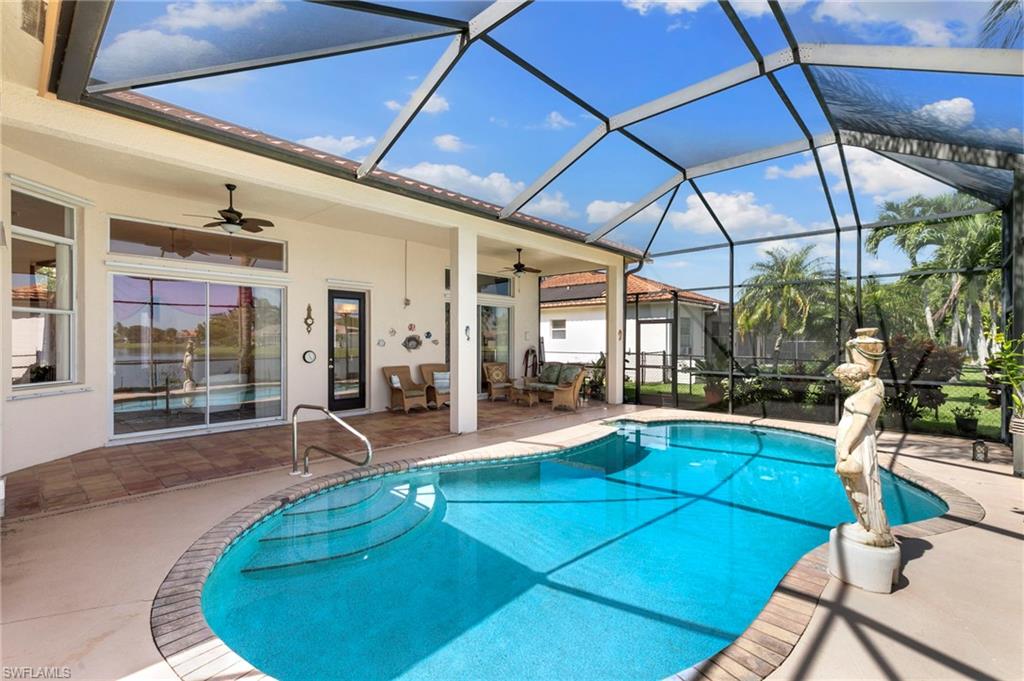 Discover Your Dream Home in Waterways – Now Available! Set in an X flood zone within the peaceful and picturesque Waterways community, this beautifully maintained single-family home offers the perfect blend of relaxation, luxury, and comfort. Unwind by the sparkling pool as you take in endless, tranquil lake views from your private screened lanai—your personal outdoor oasis. This spacious 4-bedroom + den, 3-bath residence is designed for effortless living and memorable entertaining. Step through the welcoming foyer and be immediately captivated by panoramic lake views framed by the home’s expansive rear windows. A bright, airy den sits to the left, overlooking the lushly landscaped front yard filled with vibrant blooms and greenery. Multiple living spaces—including a sunlit sitting area with lanai access and a charming dining room illuminated by an elegant chandelier—offer flexibility and flow. The open-concept family room also leads out to the lanai, creating a seamless indoor-outdoor experience. The heart of the home is the large, well-appointed kitchen featuring rich granite countertops, stylish white backsplash, warm wood cabinetry, stainless steel appliances, a convenient prep island, breakfast bar seating, and a built-in desk area. A walk-in pantry and nearby laundry room with sink and cabinetry add essential functionality. Three generously sized bedrooms share a spacious full bath with dual sinks, a shower/tub combo, and ample storage. On the opposite side of the home, a dedicated pool bath provides easy access for outdoor entertaining. The expansive owner’s suite is a true retreat—complete with tray ceiling, private lanai access, dual walk-in closets, and a luxurious ensuite bathroom featuring a soaking tub, separate glass-enclosed shower, dual vanities, storage closet, and water closet. Outside, enjoy a fully paved lanai, in-ground pool, sweeping lake views, and a fenced backyard ideal for pets or play. Residents of the gated Waterways community enjoy a wealth of amenities, including cable and Wi-Fi as part of the HOA dues, as well as access to a community clubhouse with pool and fitness center. The neighborhood also offers basketball and tennis courts, volleyball, a BBQ area, a park, and even an on-site boat and RV storage area available to homeowners. Located in the sought-after Estates area, this home offers quiet living just minutes from A-rated schools, Founder's Square, Publix, I-75, and the Gulf beaches. This is Florida living at its finest—don’t miss your opportunity to own this exceptional lakefront home!