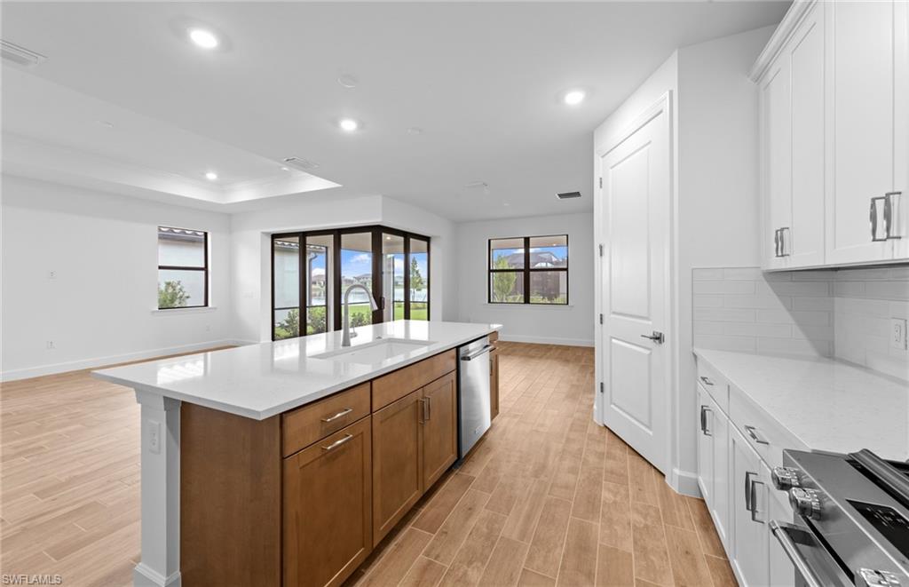 Step into this stunning single-family home offering 3 bedrooms, 3 bathrooms, a versatile den, and a spacious 2-car garage with a 4-foot extension. Designed for both comfort and style, the open-concept gathering room features a tray ceiling and dramatic zero corner sliding glass doors that open to an extended covered lanai—ideal for seamless indoor-outdoor living. The fully upgraded laundry room includes cabinets, countertops, and a sink for added convenience. Throughout the home, you’ll find 8' interior doors, 5" baseboards, and impact-resistant windows, all under a durable tile roof. Additional features include an epoxy-finished garage floor and a tankless water heater, blending luxury with everyday practicality. Your dream home and lifestyle awaits within the gates at Verdana Village. Here you will find a wide array of resort-style amenities right outside your front door including indoor and outdoor pickleball, indoor and outdoor tennis, basketball courts, gym, movement studio, cafe, tennis shop, play area, stunning pool with cabanas, plus additional community features coming soon. Opportunities are endless at Verdana Village!