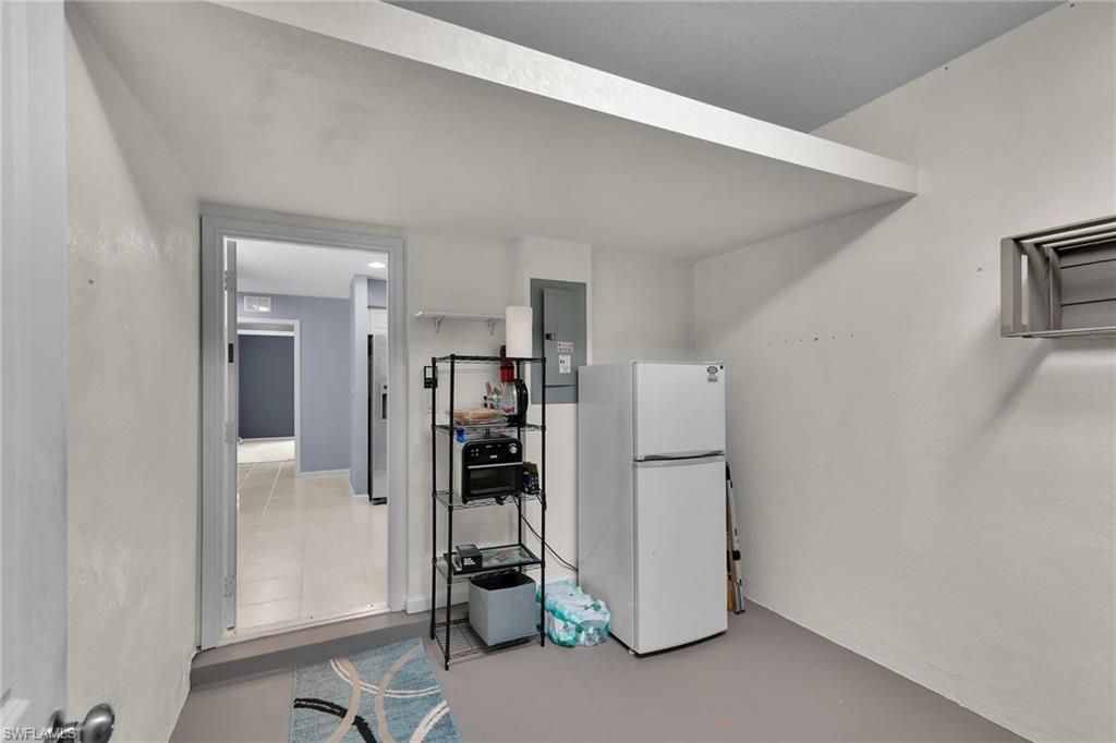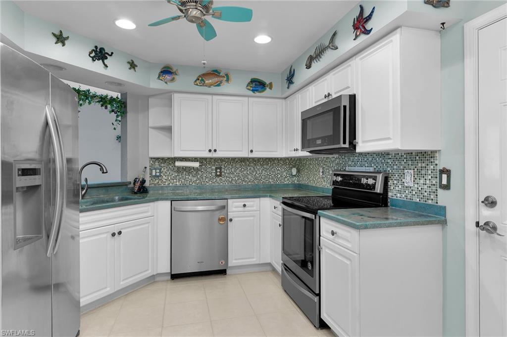 Welcome to 25054 Peacock Lane, Unit 102 - a charming and versatile first-floor condo located in the desirable waterfront community of Orchid Cove at Port of the Islands. This 2-bedroom, 2-bathroom residence offers a serene, park-like setting surrounded by mature trees and peaceful green space. Inside, you’ll find a thoughtful layout with an eat-in kitchen featuring stainless steel appliances, a spacious living and dining area, and a large primary suite complete with a walk-in closet, generous storage, and a private bath with a walk-in shower. Unique to this unit is a creative use of the attached one-car garage: a portion has been thoughtfully converted into a bonus room - perfect for a craft area, playroom, or small office. The remaining section of the garage offers excellent storage, and the entire space can easily be returned to its original garage layout if desired. Additional highlights include in-unit laundry, a private screened lanai for relaxing and enjoying the tranquil setting, and an extra-long driveway offering ample parking for guests. Orchid Cove residents enjoy access to a community pool and spa, clubhouse, tennis and pickleball courts - all within walking distance. Port of the Islands is a true boater’s haven, offering a public marina with boat launch, ship’s store with fuel and bait, and 24/7 on-site fire and EMS services. Located just 15 minutes from Publix, 20 minutes from Marco Island, and 30 minutes from downtown Naples, this community offers both peace of mind and prime convenience.