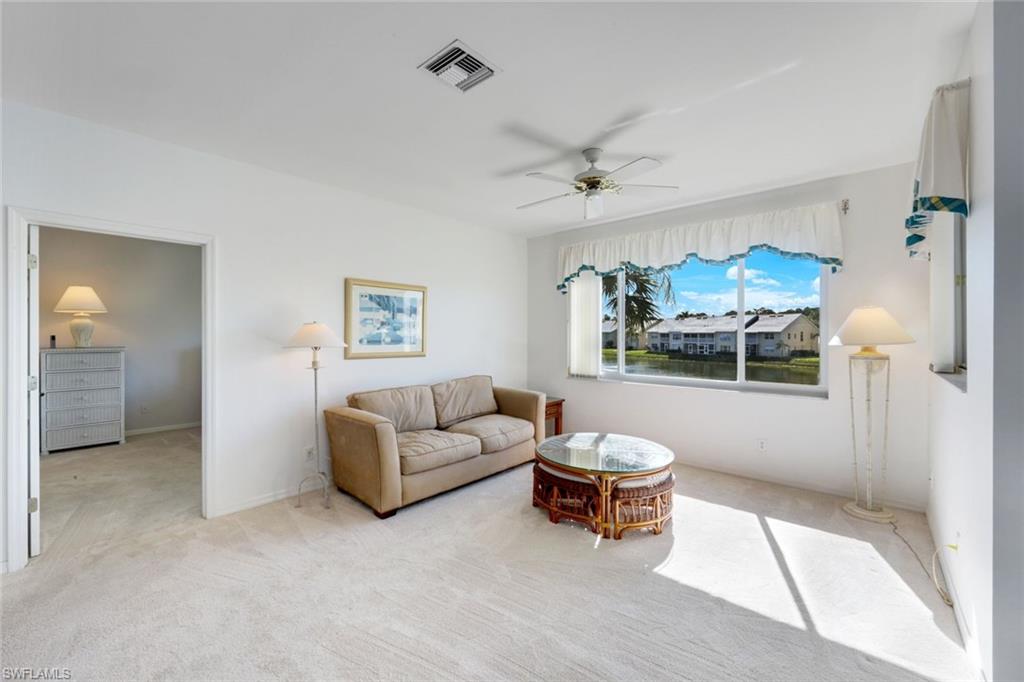 Beautiful lake views from this light-filled coach home. Located in The Villages of Bonita, in the center of town. 5 minutes from the cafes, dining and parks of pedestrian-friendly Downtown Bonita, 5 minutes to Coconut Point, 15 minutes to beaches and 25 minutes to RSW airport. The Villages of Bonita offers a community pool and spa, exercise room, tennis & pickleball courts, shuffleboard, billiards and offers a resident social calendar with happy hours, community dinners, water aerobics and other events. This property is an excellent value, with both impact glass + electric hurricane shutters, no CDD fee and low condo fees (no Master HOA fees), water, sewer, cable & internet included. Pick up trucks and pet-friendly (1 dog or 1 cat or 2 birds OK). BBQ grills allowed to be used with limitations (agents please see provided docs in supplements). Prospective home buyers that inquire directly with listing agent for showings will be asked to provide an up-to-date pre-approval letter or proof of funds.