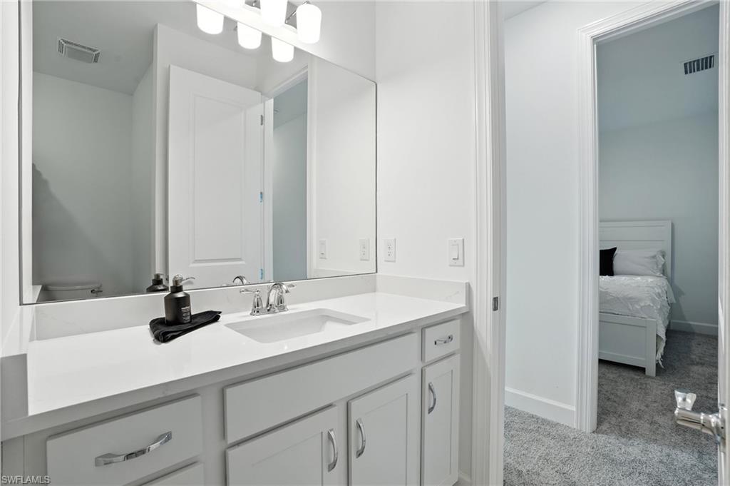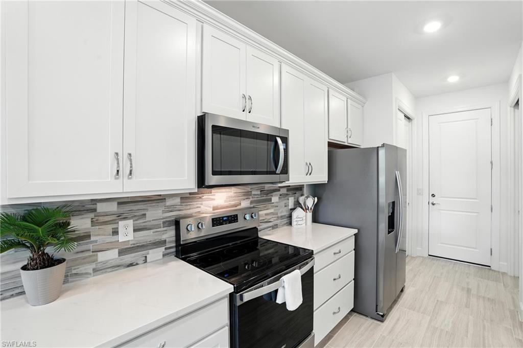 Rare Opportunity in SOLD OUT Sonoma Oaks! Own the last available Augusta model townhome in this meticulously cared-for North Naples community. Just a few months old, this 3 bed, 2.5 bath and highly desirable 2-car garage home includes active, transferrable Pulte warranties. Enjoy an open-concept layout with a spacious living/dining area, oversized quartz island, stylish tile backsplash, and brand-new stainless steel appliances. Gorgeous tile floors flow throughout the main level, while all bedrooms are carpeted upstairs for comfort and privacy. Motorized window coverings add a sleek touch in several rooms. This south-facing lake view screened-in patio offers tranquility and extra privacy. The owner’s suite features a large walk-in closet, dual sinks, tiled shower, and serene lake views. Down the hall, you'll find an upgraded laundry room with built-in cabinetry and sink. Two guest bedrooms offer ample light, large closets, and a shared full bath. Sonoma Oaks amenities include a heated pool, cabana, and grilling area just steps from your doorway. Located minutes from Founders Square, dining, gyms, and Vanderbilt Beach. This is the newest, most updated and move-in-ready home in the neighborhood—don’t miss it! Special financing incentive available toward an interest rate buy-down with seller’s preferred lender – ask for details!