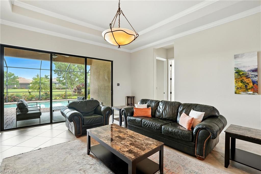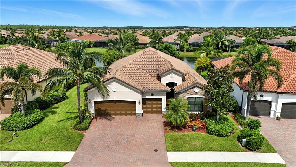 Social Membership included. Experience resort-style living in this beautifully appointed 4-bedroom, 3-bathroom home with a 3-car garage and 2,267 sq ft of living space, located in the resort style, gated community of Bonita National Golf & Country Club. From the paver driveway and entryway to the tray ceilings and diagonal tile flooring, every detail of this home is designed with elegance and comfort in mind. The spacious kitchen features stainless steel appliances, a large island, stone countertops, an abundance of cabinets with crown molding, and both a breakfast nook and formal dining room. The large primary bedroom offers a tranquil retreat with a tray ceiling, his and hers walk-in closets, and a luxurious en-suite bathroom complete with dual vanities, a soaking tub, and a glass-enclosed shower. Three additional bedrooms and two full bathrooms provide ample space for family and guests. Step outside to your private screened-in lanai with an in-ground pool and spa, overlooking a peaceful lake. Bonita National offers top-tier amenities, including a stunning clubhouse, poolside bar and grill restaurant, resort-style pool and spa, cabanas, fitness center, spa, popular tennis programs, pickleball coming soon, golf available to social members out of season, and so much more. Located just off Bonita Beach Road, you’re minutes from world class dining, shopping, entertainment, and the beautiful Gulf beaches of Bonita Springs and Naples. Don't miss your chance to own this slice of paradise in one of Southwest Florida’s most sought-after communities. This home is sold with design services included! Whether you love the home as is, or you are dreaming of making it your own- we have taken the guess work out. Ask for more information!