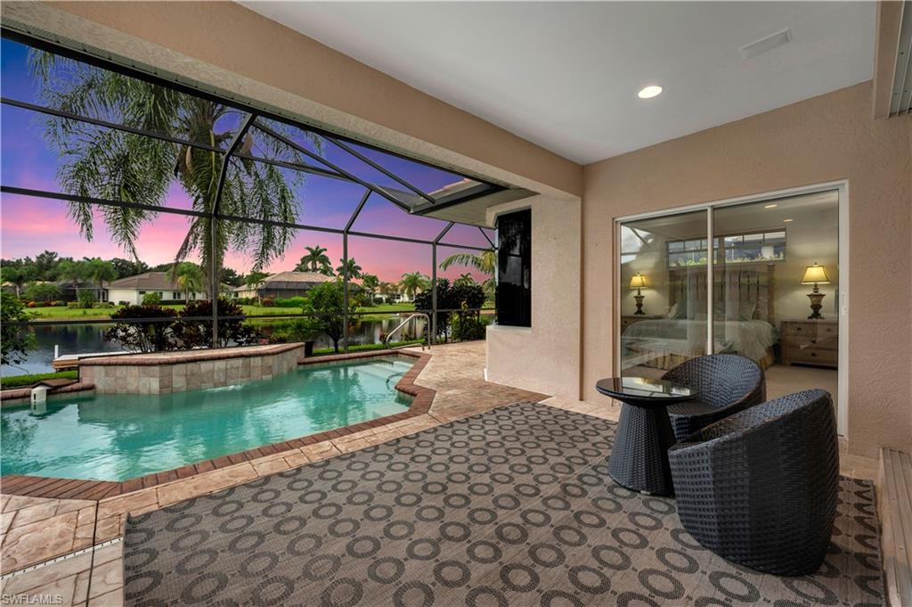 Lovely Longshore Lake! BRAND NEW A/C and WATER HEATER! This great single family home featuring 3 bedrooms, 2 full baths, and a 2-car side-entry garage is situated on the lake with its own private dock, complete with ALL NEW Trex decking. This residence offers a sparkling private heated pool with both rear screened lanai and screened front entry for enjoying the Florida lifestyle year-round. Inside, you’ll find nearly 2,000 square feet of living space with tiled floors throughout the main areas and carpet in two bedrooms. The roof, only 7.5 years old, adds peace of mind, while the FRESHLY PAINTED neutral INTERIOR provides a bright and welcoming canvas. With western exposure, you’ll be treated to spectacular sunsets over the water each evening. Located in the highly sought after North Naples gated community of Longshore Lake, residents enjoy a truly unique lifestyle centered around an 88 acre lake. The community’s clubhouse serves as a social hub with a lakeside restaurant and bar, a modern fitness center, and a premier tennis facility with nine Har-Tru courts and a full-time pro, offering play both day and night. Outdoor enthusiasts will love boating, kayaking, fishing, and taking in sunset cruises right from their backyard. Additional amenities include a basketball court, playground, miles of walking and biking paths, and access to Naples’ top rated school district. Seasonal reciprocal privileges with other private clubs and a variety of fitness and social programs create an active yet relaxed lifestyle. Perfectly positioned in North Naples, this home offers quick access to public and private golf courses, upscale shopping, dining, and world-class beaches, as well as I-75 and RSW International Airport just 25 minutes away. Located in the most desired X flood zone, no flood insurance is required. It is time to experience this exceptional lakefront property and all that Longshore Lake living has to offer!