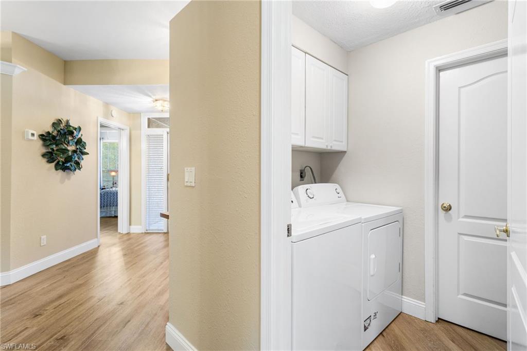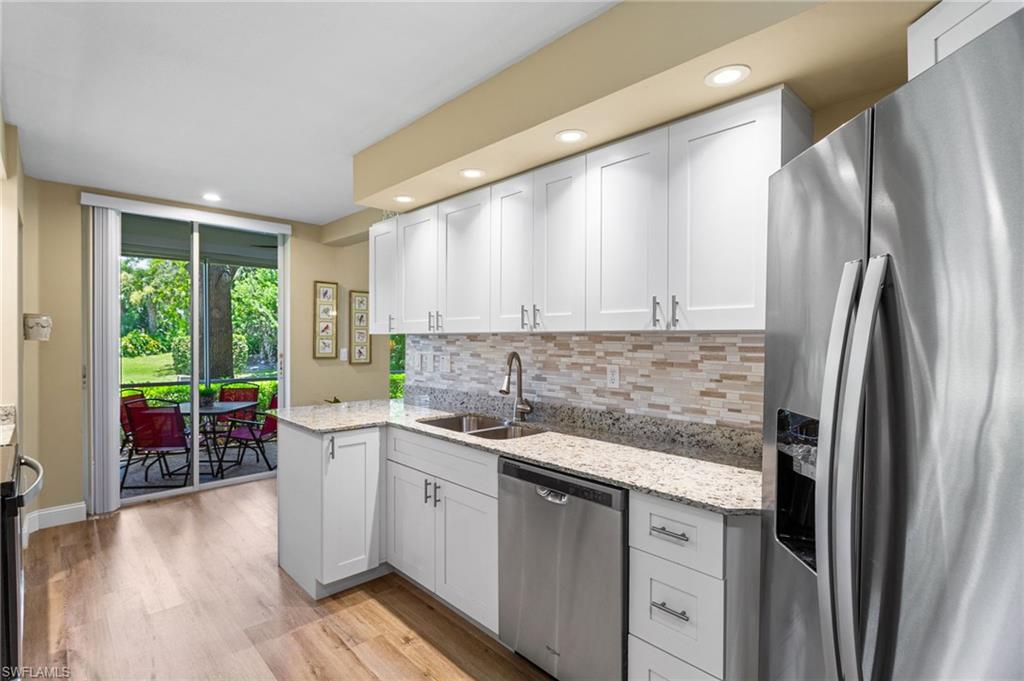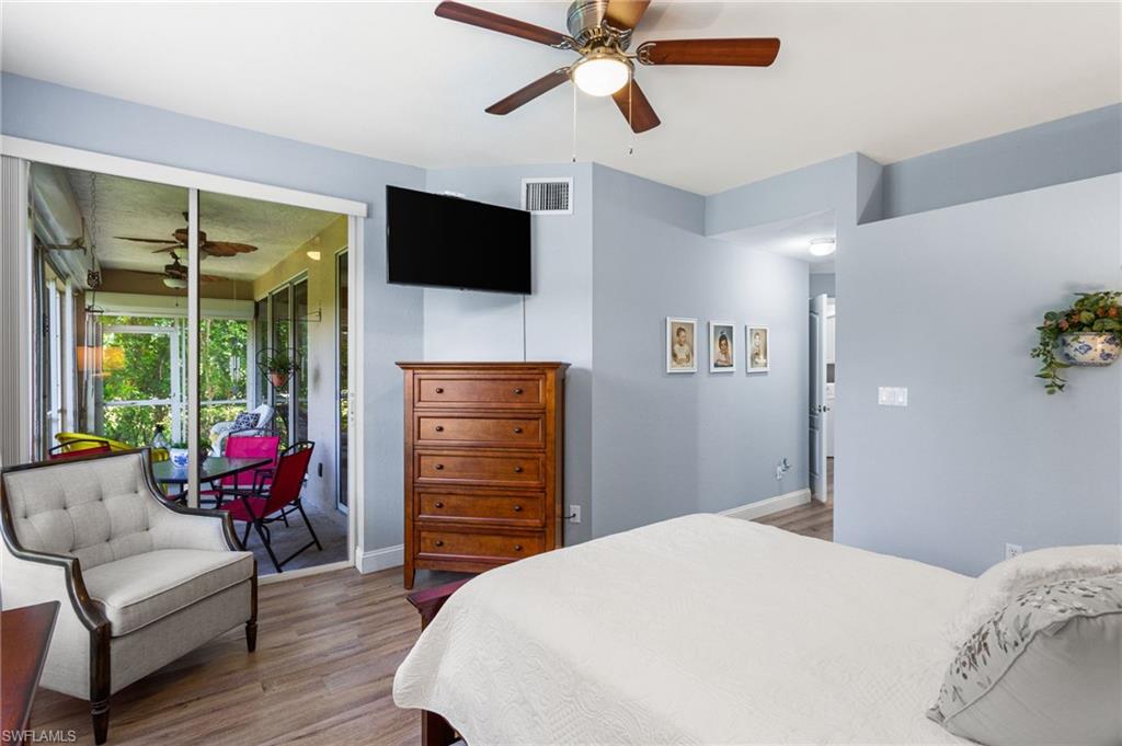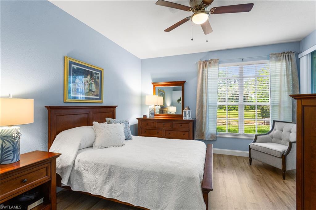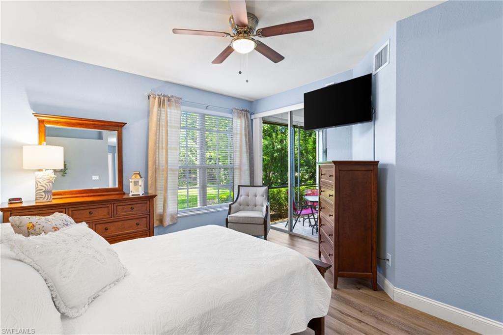 Southwest Florida living at its finest in the heart of Bonita Springs! A beautifully updated first-floor condo located in the desirable gated community of Vanderbilt Lakes. This 3-bedroom, 2-full bathroom home offers a perfect blend of comfort, style, and convenience just minutes from Bonita Beach and Barefoot Beach. Step inside to an open and airy layout featuring luxury laminate floors throughout and a neutral palette that complements any décor. The spacious kitchen boasts a breakfast bar and plenty of cabinet space, ideal for entertaining. The primary suite offers lanai access, a walk-in closet, and an en-suite bath with dual vanities and a walk-in shower. THIS HOME HAS NEVER BEEN FLOODED! Relax and unwind on your screened lanai overlooking a peaceful lake — a perfect spot for morning coffee or evening sunsets. Additional highlights include a laundry room and hurricane shutters for peace of mind. Enjoy the resort-style community pool and spa and being a prime location just minutes from fine dining, shopping, and entertainment at Mercato, The Promenade, and Coconut Point. Whether you’re looking for a seasonal retreat or a year-round residence, this home offers everything you need to embrace the Florida lifestyle.