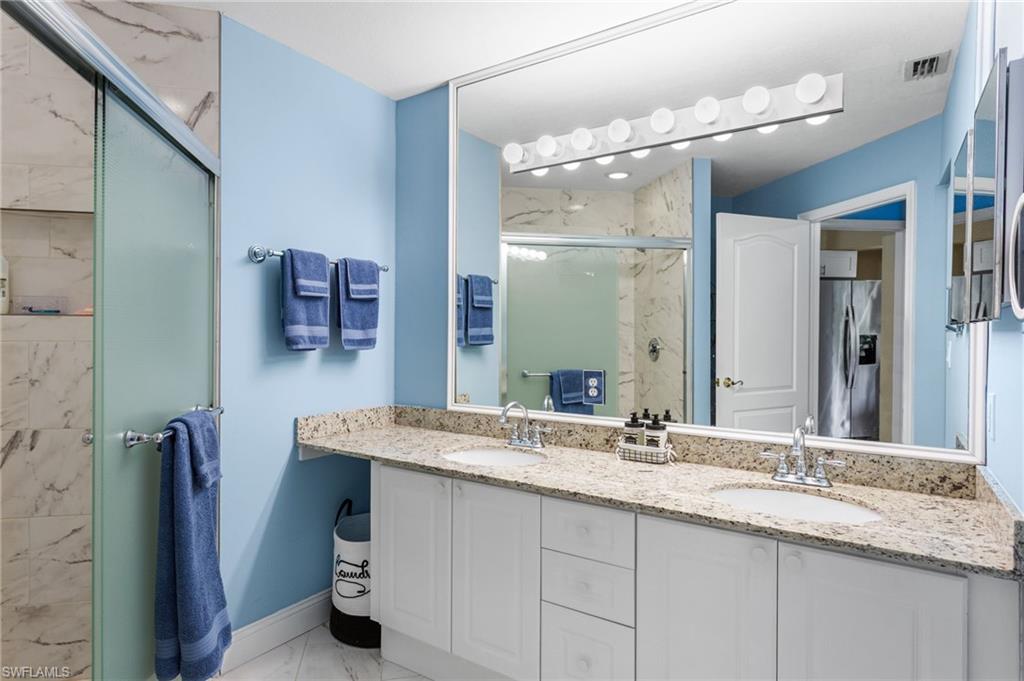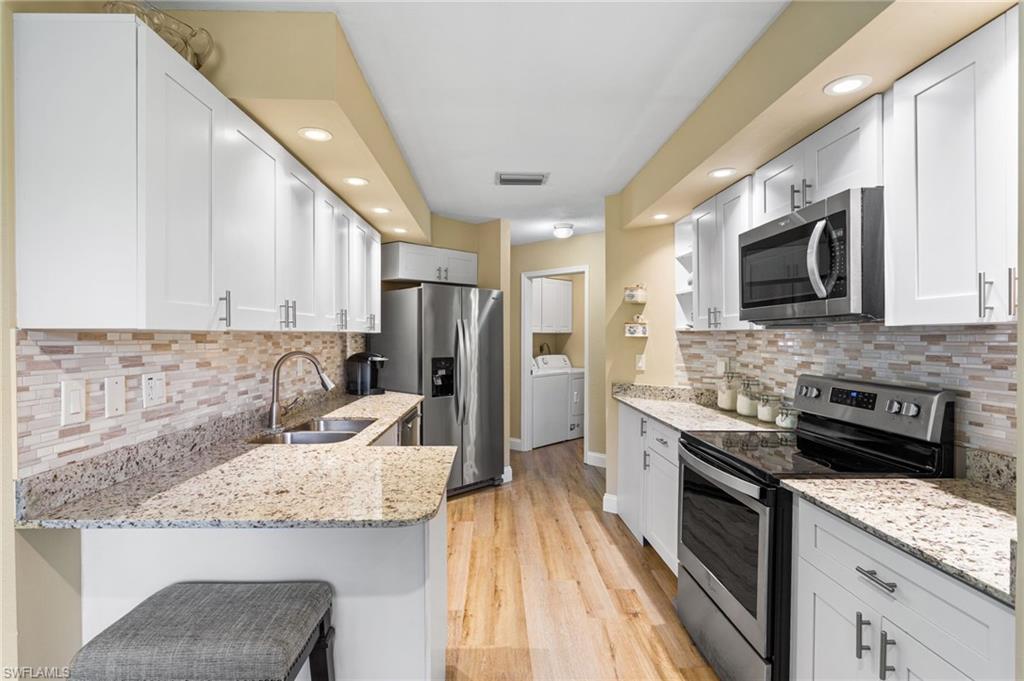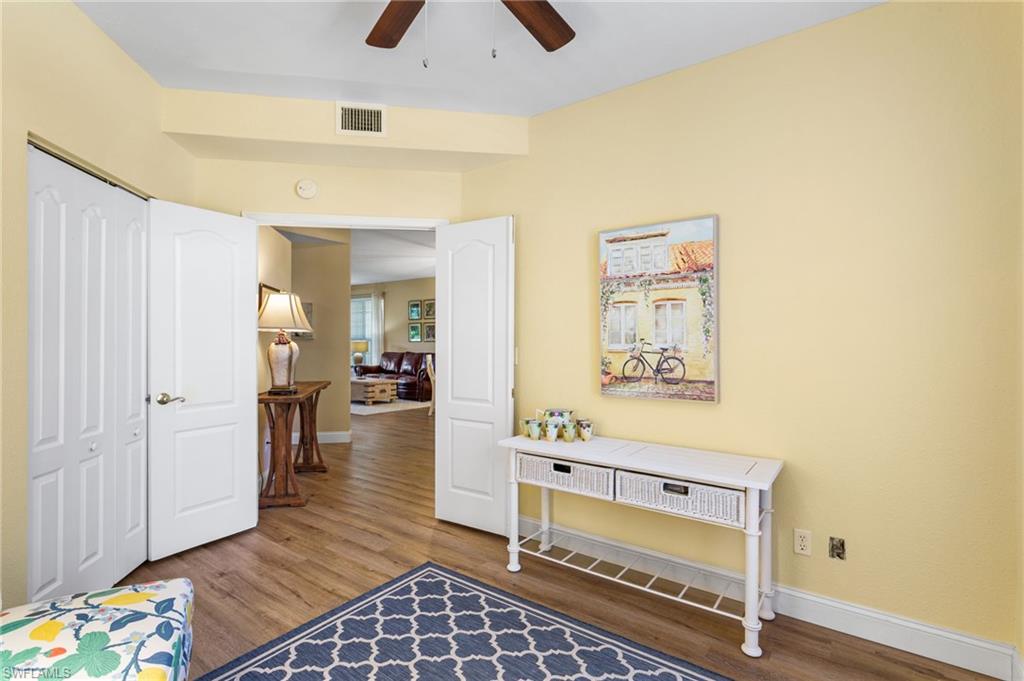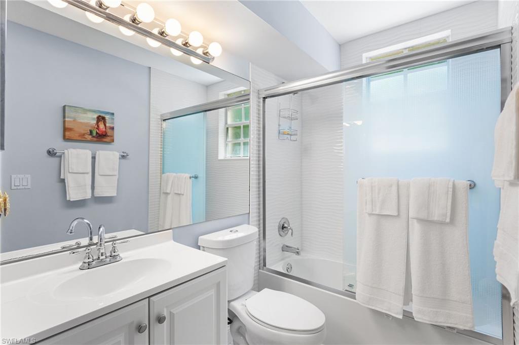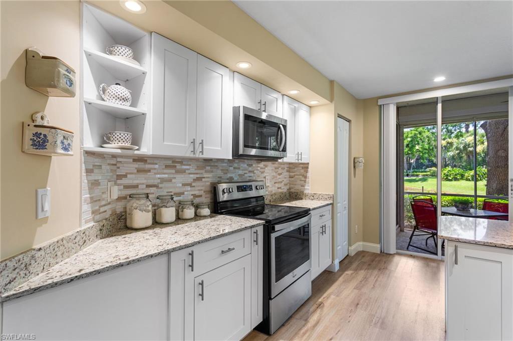 Southwest Florida living at its finest in the heart of Bonita Springs! A beautifully updated first-floor condo located in the desirable gated community of Vanderbilt Lakes. This 3-bedroom, 2-full bathroom home offers a perfect blend of comfort, style, and convenience just minutes from Bonita Beach and Barefoot Beach. Step inside to an open and airy layout featuring luxury laminate floors throughout and a neutral palette that complements any décor. The spacious kitchen boasts a breakfast bar and plenty of cabinet space, ideal for entertaining. The primary suite offers lanai access, a walk-in closet, and an en-suite bath with dual vanities and a walk-in shower. THIS HOME HAS NEVER BEEN FLOODED! Relax and unwind on your screened lanai overlooking a peaceful lake — a perfect spot for morning coffee or evening sunsets. Additional highlights include a laundry room and hurricane shutters for peace of mind. Enjoy the resort-style community pool and spa and being a prime location just minutes from fine dining, shopping, and entertainment at Mercato, The Promenade, and Coconut Point. Whether you’re looking for a seasonal retreat or a year-round residence, this home offers everything you need to embrace the Florida lifestyle.
