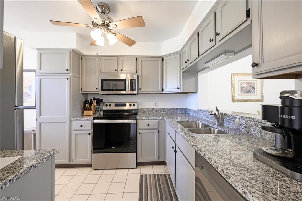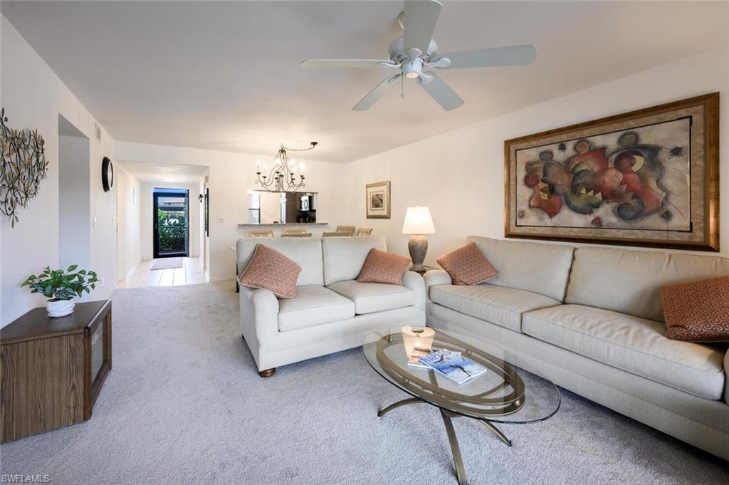 Come and see what they're all talking about ! Here you go a full golf membership first floor fully furnished two bedroom , two bath impeccable condo with a fabulous view you will truly appreciate ! Just move in and enjoy this beautifully decorated condo. New paint and carpeting. Newer stainless steel appliances in kitchen. New hot water heater. One minute walk to the newly renovated clubhouse ( July 2025) and resort style pool as well as golf . No need for a second car the amenities are so close by to enjoy. Fantastic 18 hole golf , driving range, beautifully brand new renovated indoor and now outdoor dining, brand new resort style pool with bar area and food, tennis complex, attended fitness center with classes, bocce ball and pickle ball ! Countryside has it all now a completely renovated resort style community with reasonable fees. ! All of this and so close to downtown Naples and the beaches . Fitness center in the morning followed by golf before heading to the beach for the afternoon , then back to the club for dinner with friends . You will love the Naples lifestyle in one of Naples friendliest full golf and resort communities Countryside!