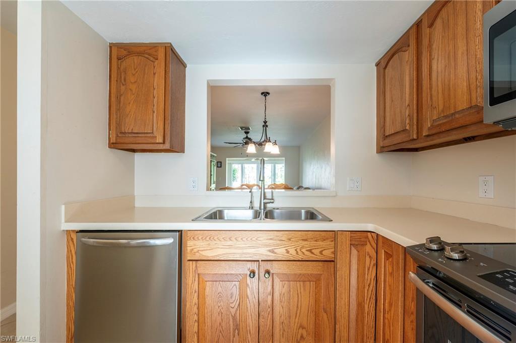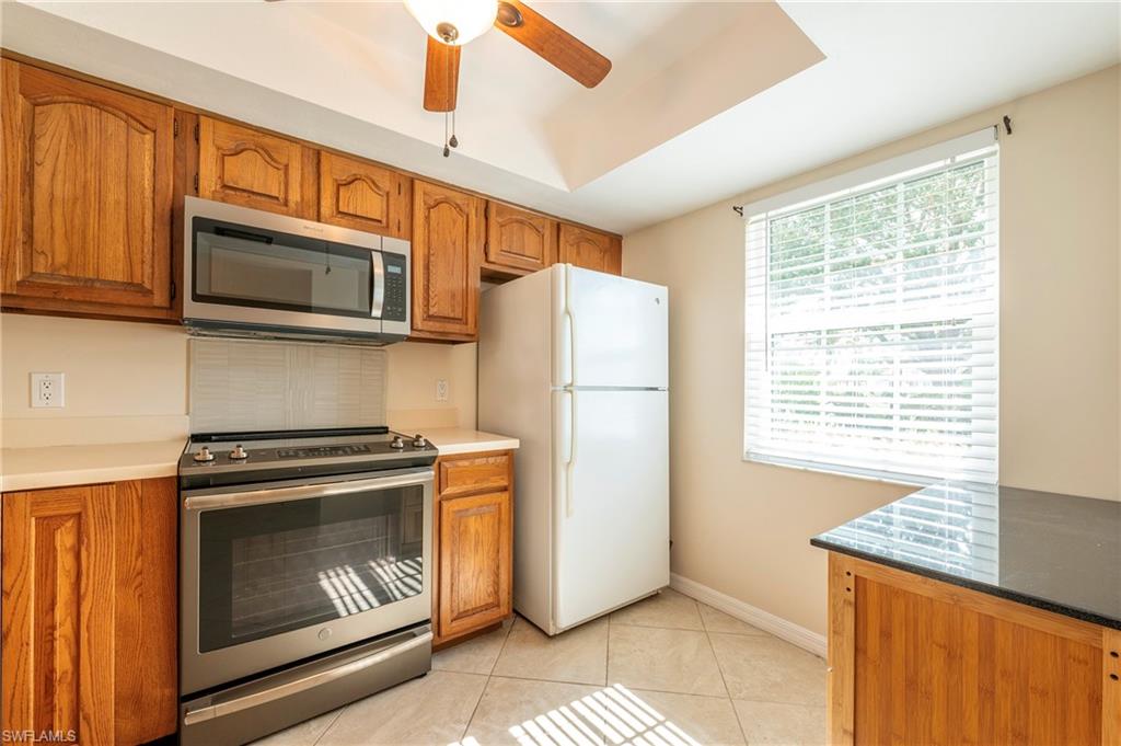 Charming 2-Bed, 2-Bath Villa in Lakewood – A Hidden Gem in Naples! Welcome to your slice of paradise in the sought-after Lakewood community! This ground-floor villa offers the ultimate in privacy—no neighbors above—and comes with covered parking and extra storage for all your Florida lifestyle essentials. Step inside to discover diagonally laid tile floors throughout—no carpet anywhere! The spacious layout flows seamlessly into an enclosed lanai with impact-rated sliding doors, leading to an extended patio where you’ll soak in serene lake views and lush tropical landscaping. Enjoy peace of mind with impact windows and a 2018 roof, plus a host of recent upgrades: Range, dishwasher & water heater (2019), Microwave (2022), HVAC system (2017), and Brand-new reverse osmosis water system (2025), new plumbing fixtures in guest bath and kitchen (2025), Master Shower is handicap accessible. Boca Ciega Village is a low-density, pet-friendly community with low fees and a sparkling pool steps away. You're only minutes from Naples’ world-famous beaches, scenic parks, pickleball courts, public golf, and a vibrant mix of dining, shopping, and entertainment. With rental restrictions in place—no rentals allowed until 3 years of ownership—your investment is protected, making this villa ideal for a primary residence or vacation retreat. Move-in ready and waiting for you! Don’t miss out on this rare opportunity to own a peaceful, well-maintained home in one of Naples’ most charming communities.