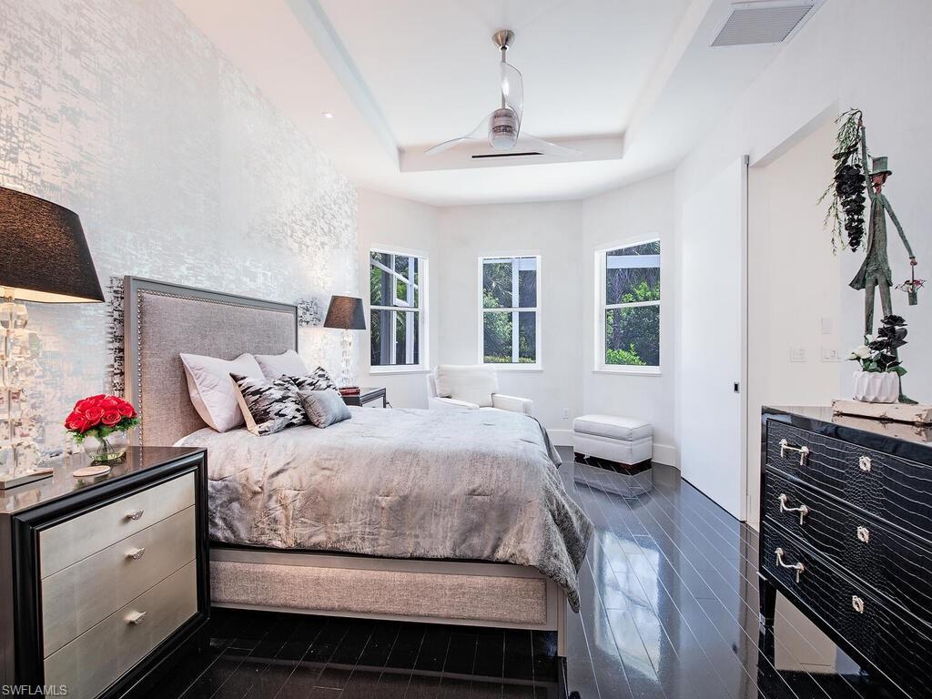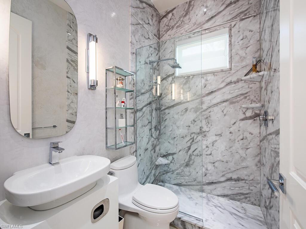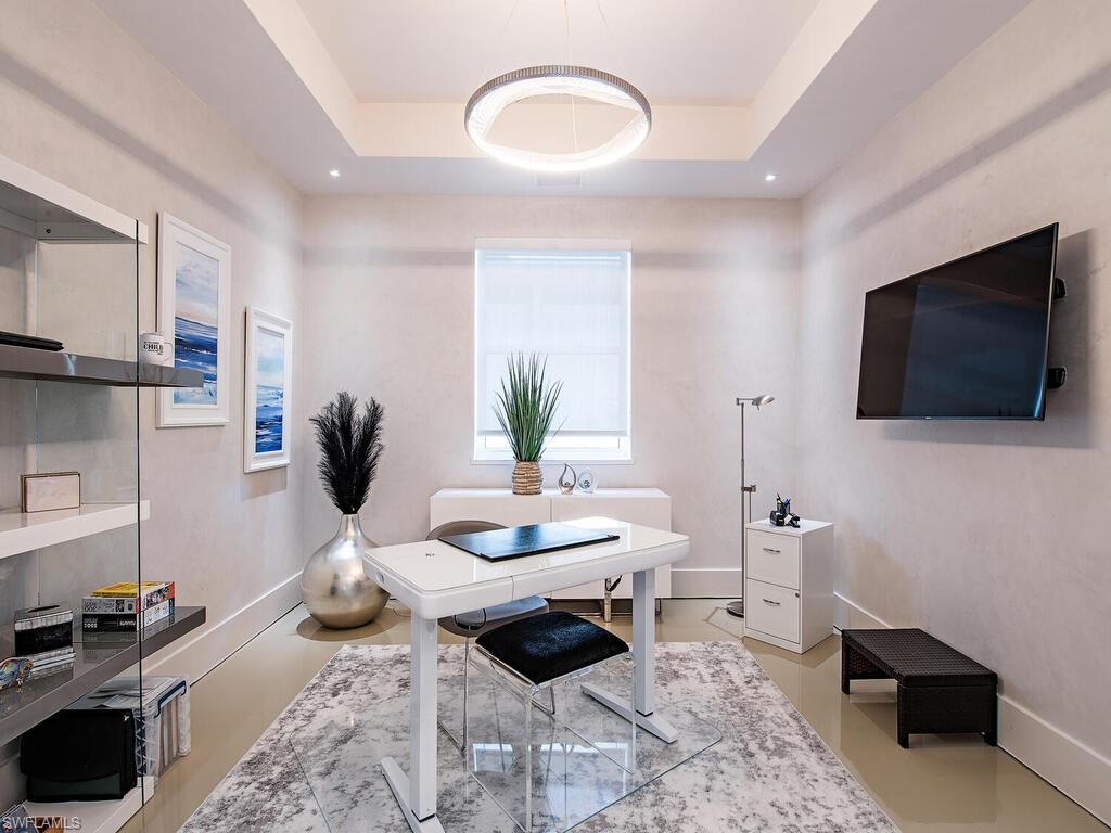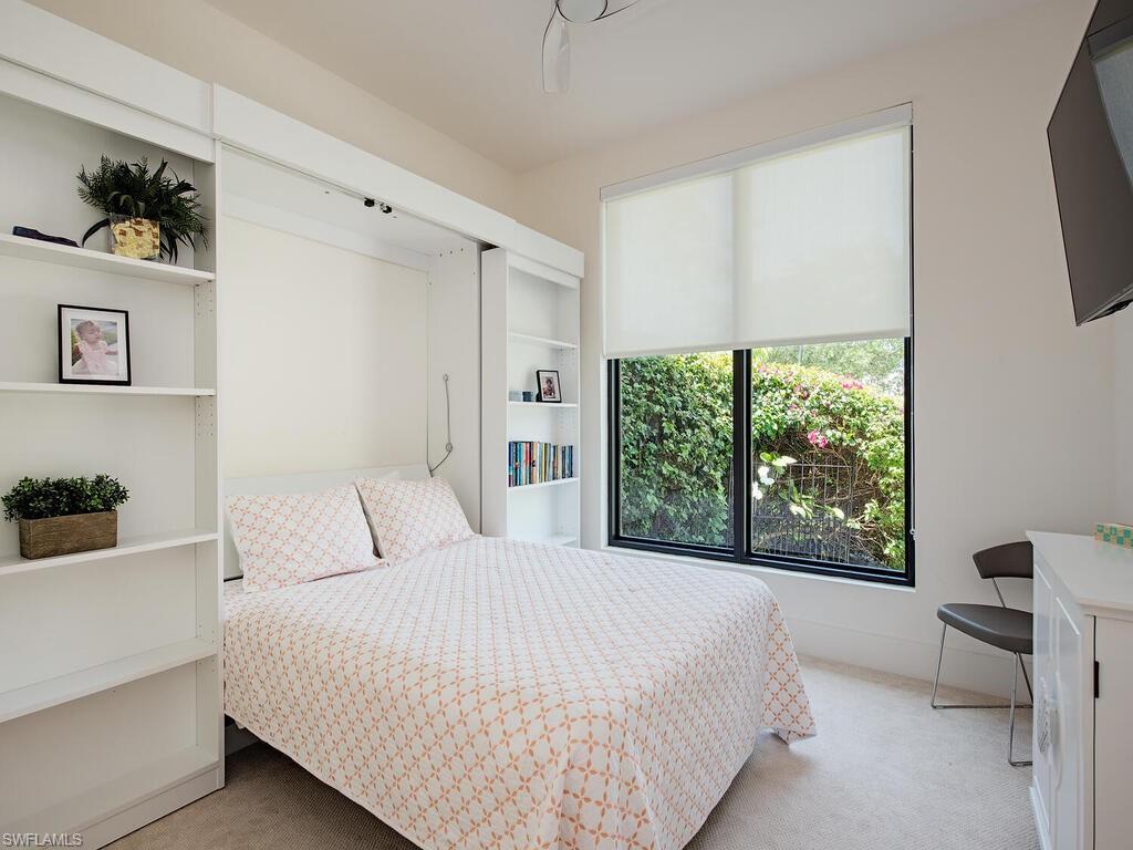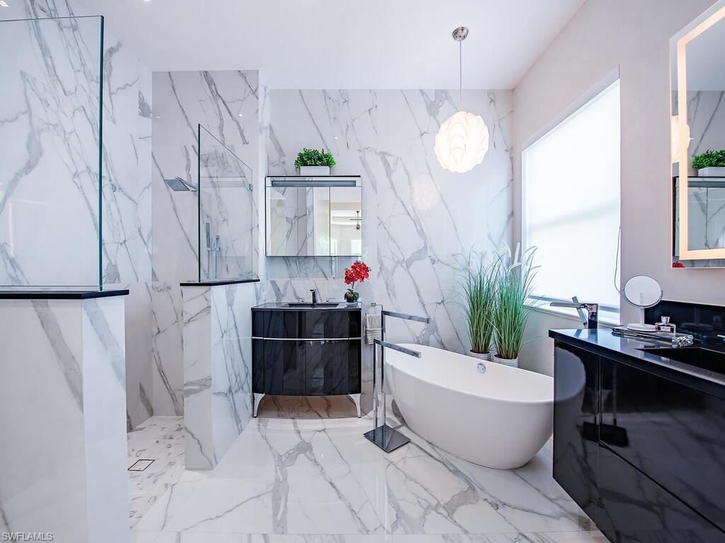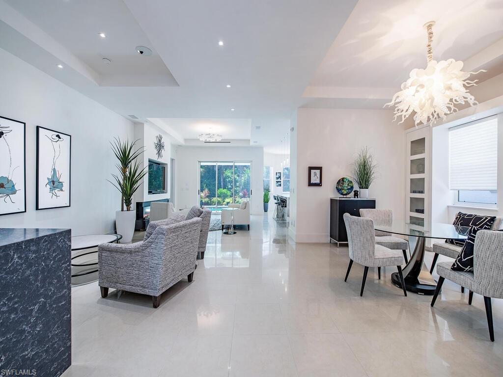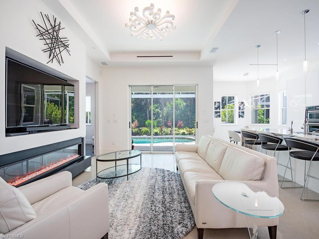 Contemporary Elegance Meets Comfort in This Exquisite Remodeled Home Fully reimagined in 2021, this stunning residence blends innovative design with modern sophistication. From the moment you arrive, you’ll be captivated by its fresh, contemporary curb appeal—featuring a newer paver driveway, flat tile roof, and a striking high-impact front door. Step inside to discover an open, airy layout perfect for both everyday living and entertaining. The interior showcases marble flooring, soaring ceilings, and designer fixtures illuminated by sleek LED lighting. A stylish conversation area includes a built-in bar and wine cooler—ideal for hosting guests. The heart of the home is a custom German-designed kitchen, complete with double slab quartzite waterfall island, Miele induction cooktop, and Bosch dishwasher. The family/living room features a cozy fireplace, creating a warm and inviting atmosphere. Retreat to the luxurious primary suite with rich wood floors, suede-lined custom closets, soft-textured accent wall, and remote-control window shades. The spa-inspired bath boasts high-gloss cabinetry, a soaking tub, expansive walk-in shower, and elegant 4’ x 4’ porcelain tiles. Additional features include: Two guest bedrooms with high-end Murphy beds Dedicated office with double French pocket doors Screened lanai with private pool—perfect for outdoor relaxation Epoxy marble-finished garage floor with built-in storage and workbench Located in a peaceful gated community, this home offers the perfect blend of privacy and convenience—just minutes from beaches, 5th Ave S, shopping, hospitals, schools, and fine dining.