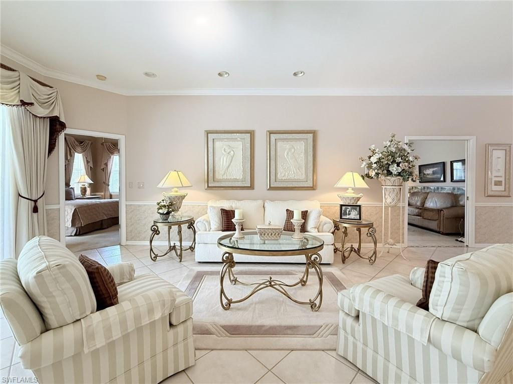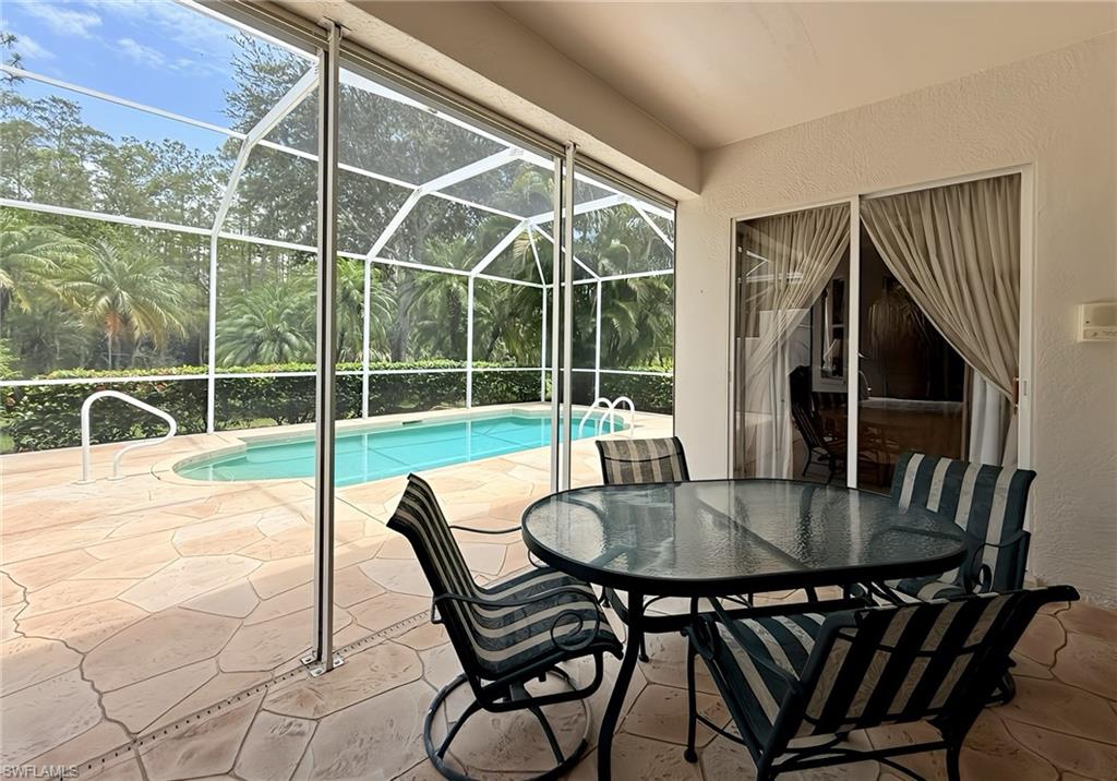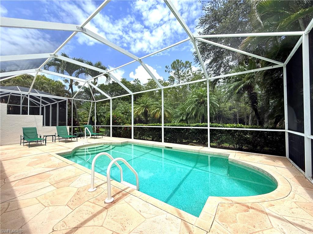 VILLA w/ 2 CAR GARAGE + POOL ... NAPLES HERITAGE GOLF & COUNTRY CLUB - Meticulously care for / Original owner / Open Concept / Turnkey. Villa offers what many with this same floor plan don’t … a spacious primary bath with separate walk-in shower, soaking tub and walk-in closet (remodelers love having the space to reconfigure bath). Exteriorly enjoy relaxing with family or cooking out with friends poolside. Private pool is in excellent condition and pool deck offers room to entertain. Lot also offers what many don’t … privacy of beautiful preserve view along with rarely found spacious yard between Villa and preserve that allows plenty of sunlight on pool deck and in home. Upon entering you’ll first notice the open floor plan and ease of flow from dining room, living room and kitchen. Layout is perfect for everyday living and entertaining. Home is full of natural light. Neutral tile floors are found throughout main living areas - foyer, living room, den, dining room, kitchen, laundry and baths. 10 foot ceilings throughout … with heavy crown molding in main living areas. Kitchen has breakfast room, breakfast bar, and 2 pantries. Door from kitchen allows access to laundry room with large storage closet and utility sink. Located just off the foyer is guest bedroom and guest bathroom - pocket door allows you to create private suite for guest when desired. Den off main living room is flex space and can serve as home office or third bedroom when needed. Spacious primary bedroom on back side of Villa (split from guest room for privacy) looks out to pool and preserves. Primary bath exceeds space of other primary baths with this same floor plan. Villa ownership is very similar to a single family home without the all the upkeep of a single family home. Let the HOA take care of maintaining your yard/landscaping / exterior paint / roof replacement / irrigation system ++ WHILE you spend your time living the lifestyle you’ve dream about. Naples Heritage Golf and Country Country is a gated, private bundled golf community situated on 550 acres of pristine lakes & preserves. Amenities include: pristine 18 hole golf course / clubhouse with year round social calendar / golf pro shop / indoor + outdoor dining options / 4 pickle ball courts / tennis complex / community resort style pool and hot tub / poolside cabana bar / fitness center with class instructors, cardio/weight room, studio rooms and massage therapist / walking trails with 2 large lakes for fishing / side walks throughout community with lush landscaping. From front gate just minutes from downtown 5th Ave and beaches … from back gate just minutes from Marco Island.