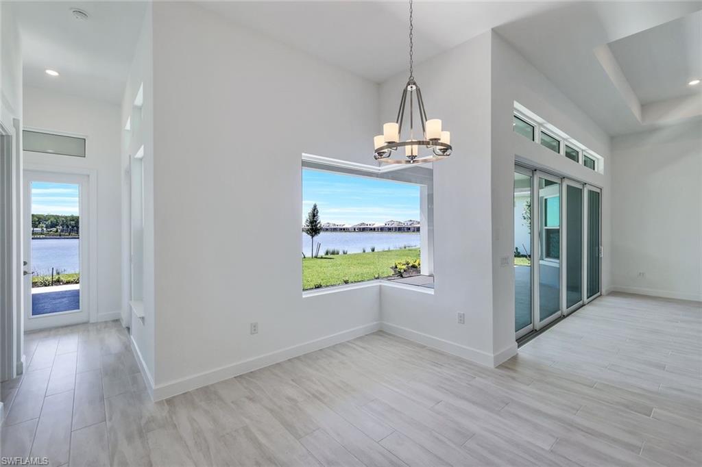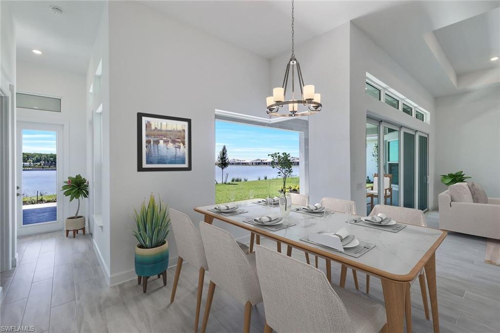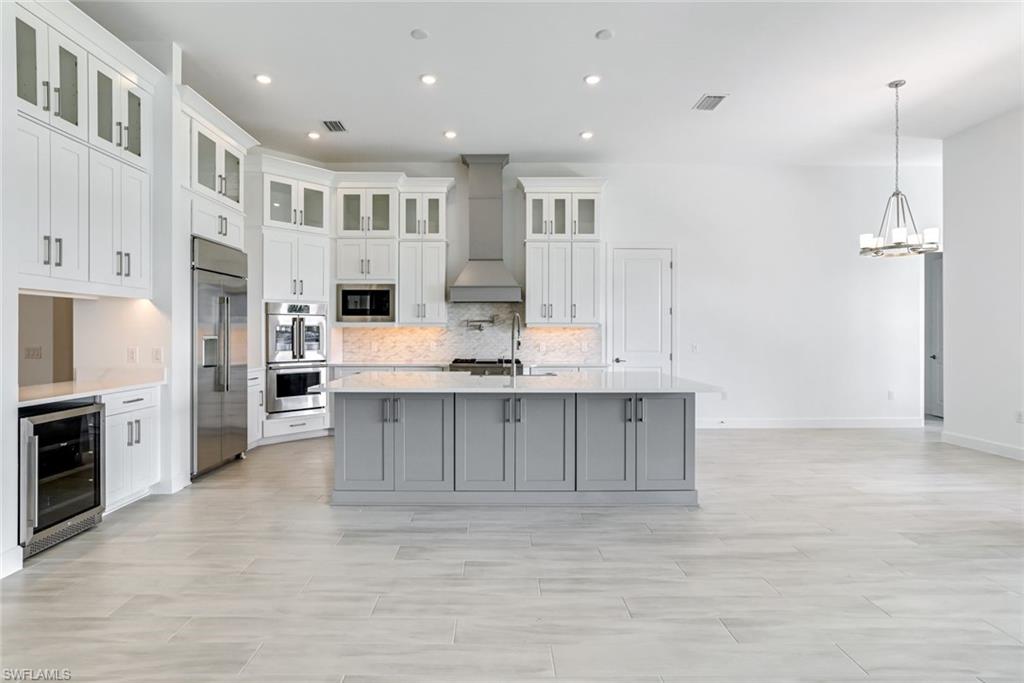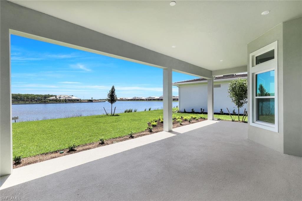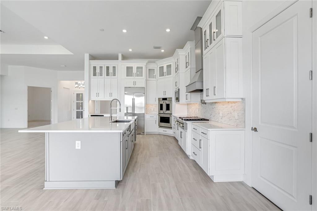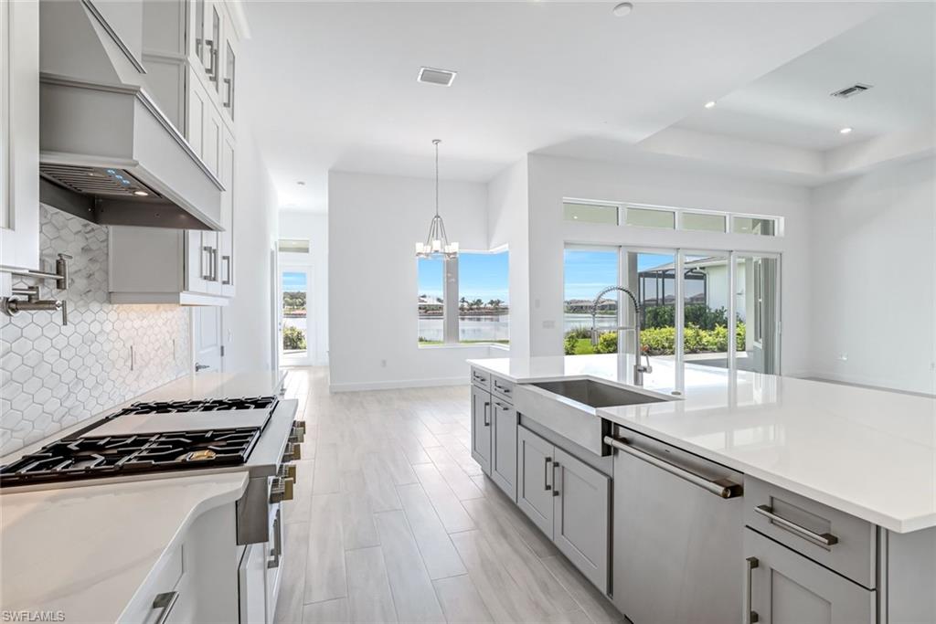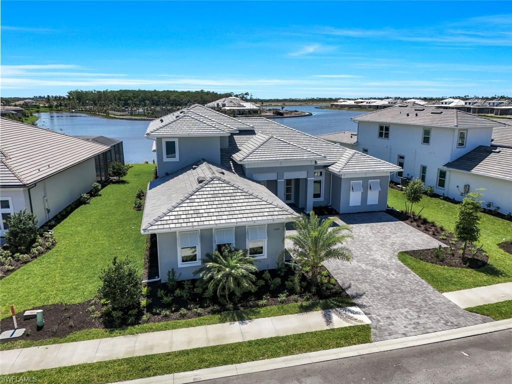 Showcasing a recent $25,000 custom upper-cabinet upgrade, this elegant Beacon with Loft, featuring a refined coastal elevation in timeless hues. Its striking curb appeal opens to a modern floor plan with porcelain tile flooring, 12-foot ceilings, and 8-foot solid-core doors. Impact glass ensures beauty, security, and tranquility. The spacious living area, prepped for a gas or electric fireplace, offers comfort and flexibility. The Chef’s Kitchen boasts shaker cabinetry, under-cabinet lighting, a farmhouse sink, large island, GE Monogram appliances, griddle, and pot filler, 24-inch upper cabinets with glass doors including custom molding will be installed soon. The primary suite features bay window views, two walk-in closets, and a spa-style bath with dual sinks and an oversized dual shower-head shower. Upstairs, the loft includes a private suite, generous living space, and wet bar—ideal for guests or versatile living. Sliding doors lead to a lanai with serene water and palm views, prepped for a custom pool and outdoor kitchen. Nestled in the prestigious Esplanade by The Islands on a prime water lot, the community’s luxurious amenities. Wellness Center, Bahama Bar & Grill, Dog Park, Massage Treatment Room, Fitness Center, Pickleball, Tennis, Bocce Ball, and Resort-Style Pool & Spa with a Culinary Center planned. Enjoy an exceptional upscale lifestyle. Close to dining, shopping, entertainment, downtown Naples, and Marco Island, this home offers refined living. Schedule your private showing today.