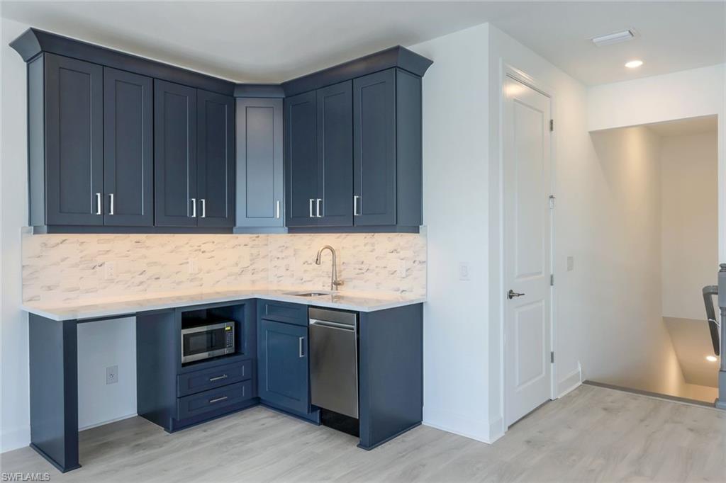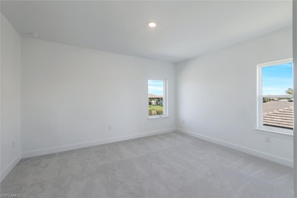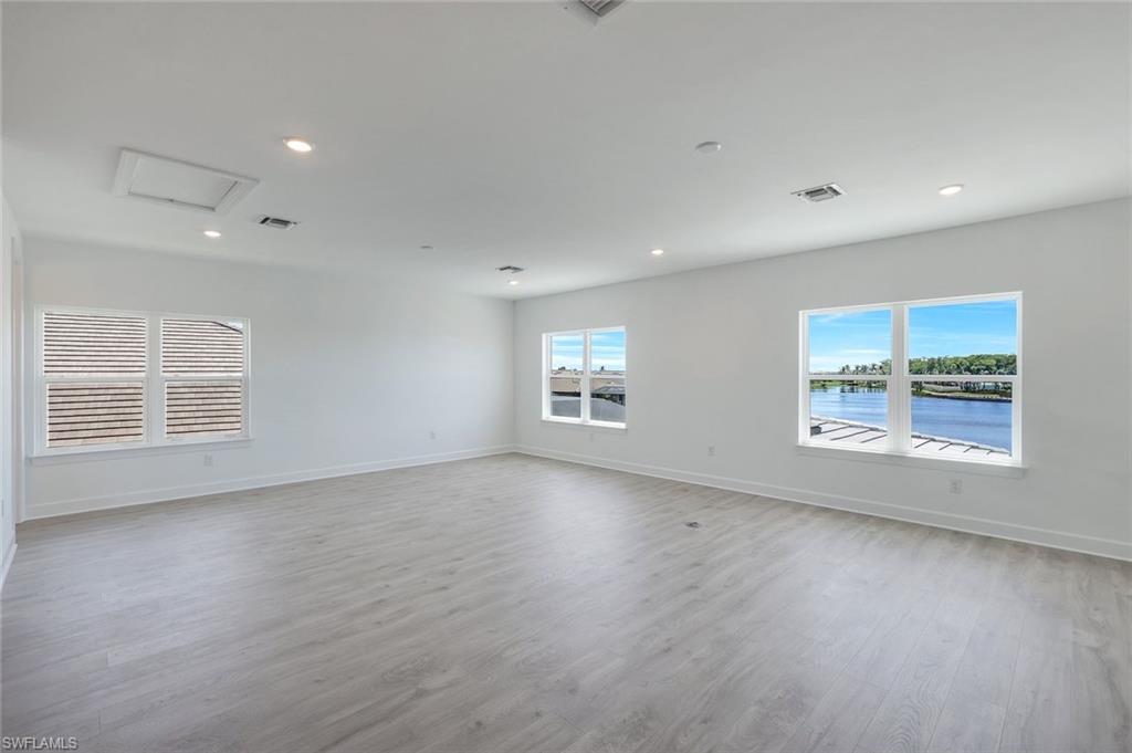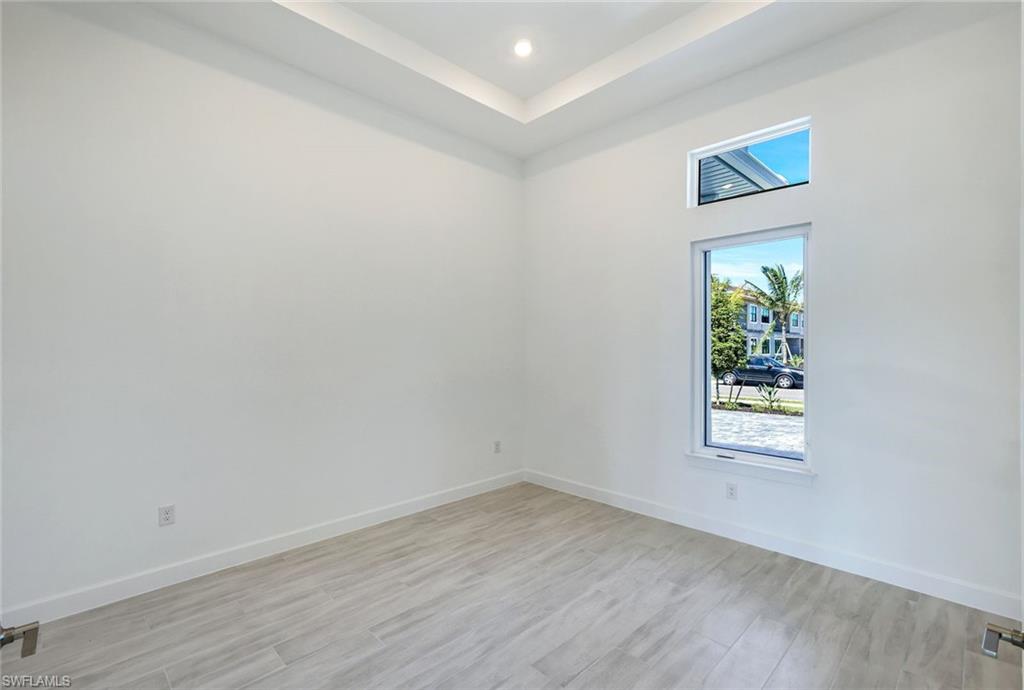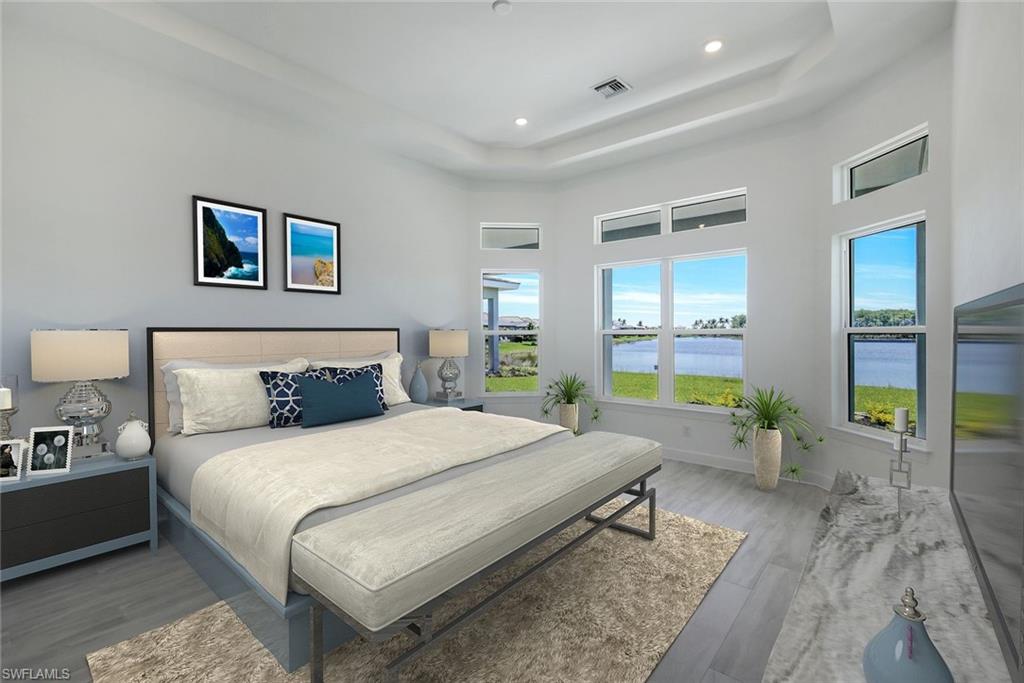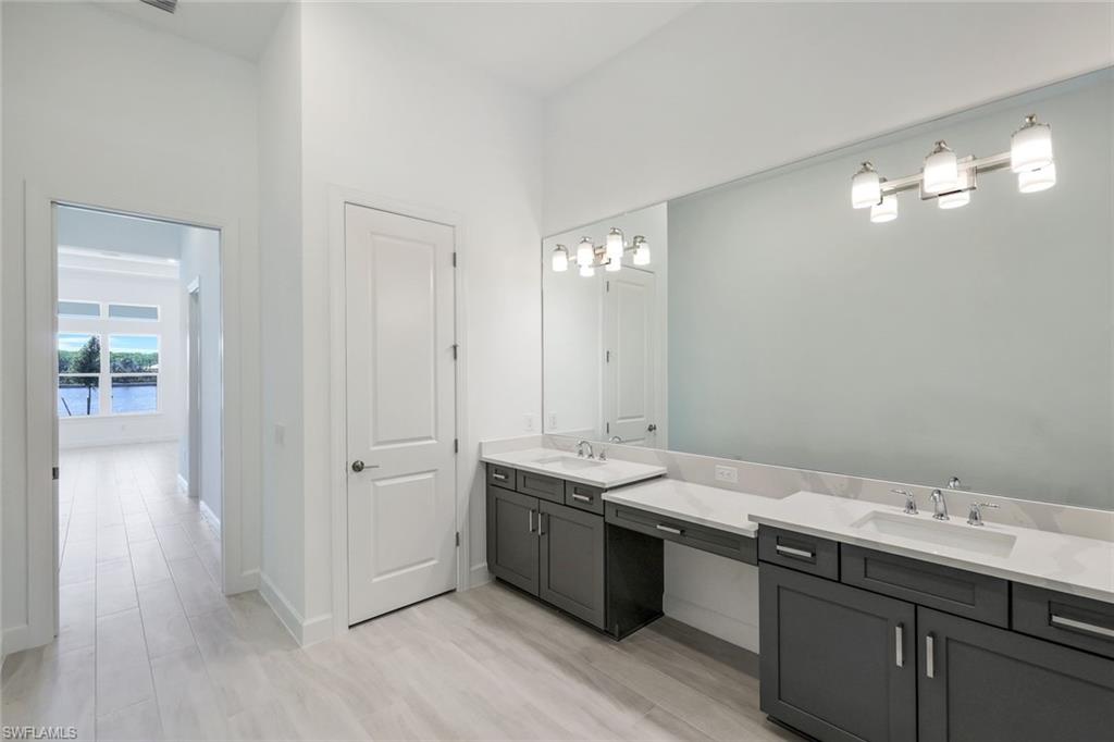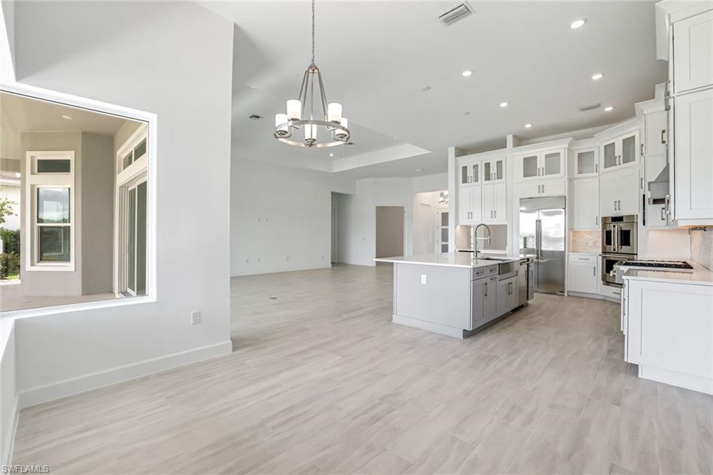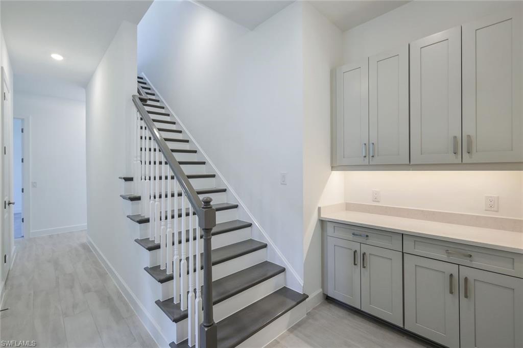 Showcasing a recent $25,000 custom upper-cabinet upgrade, this elegant Beacon with Loft, featuring a refined coastal elevation in timeless hues. Its striking curb appeal opens to a modern floor plan with porcelain tile flooring, 12-foot ceilings, and 8-foot solid-core doors. Impact glass ensures beauty, security, and tranquility. The spacious living area, prepped for a gas or electric fireplace, offers comfort and flexibility. The Chef’s Kitchen boasts shaker cabinetry, under-cabinet lighting, a farmhouse sink, large island, GE Monogram appliances, griddle, and pot filler, 24-inch upper cabinets with glass doors including custom molding will be installed soon. The primary suite features bay window views, two walk-in closets, and a spa-style bath with dual sinks and an oversized dual shower-head shower. Upstairs, the loft includes a private suite, generous living space, and wet bar—ideal for guests or versatile living. Sliding doors lead to a lanai with serene water and palm views, prepped for a custom pool and outdoor kitchen. Nestled in the prestigious Esplanade by The Islands on a prime water lot, the community’s luxurious amenities. Wellness Center, Bahama Bar & Grill, Dog Park, Massage Treatment Room, Fitness Center, Pickleball, Tennis, Bocce Ball, and Resort-Style Pool & Spa with a Culinary Center planned. Enjoy an exceptional upscale lifestyle. Close to dining, shopping, entertainment, downtown Naples, and Marco Island, this home offers refined living. Schedule your private showing today.