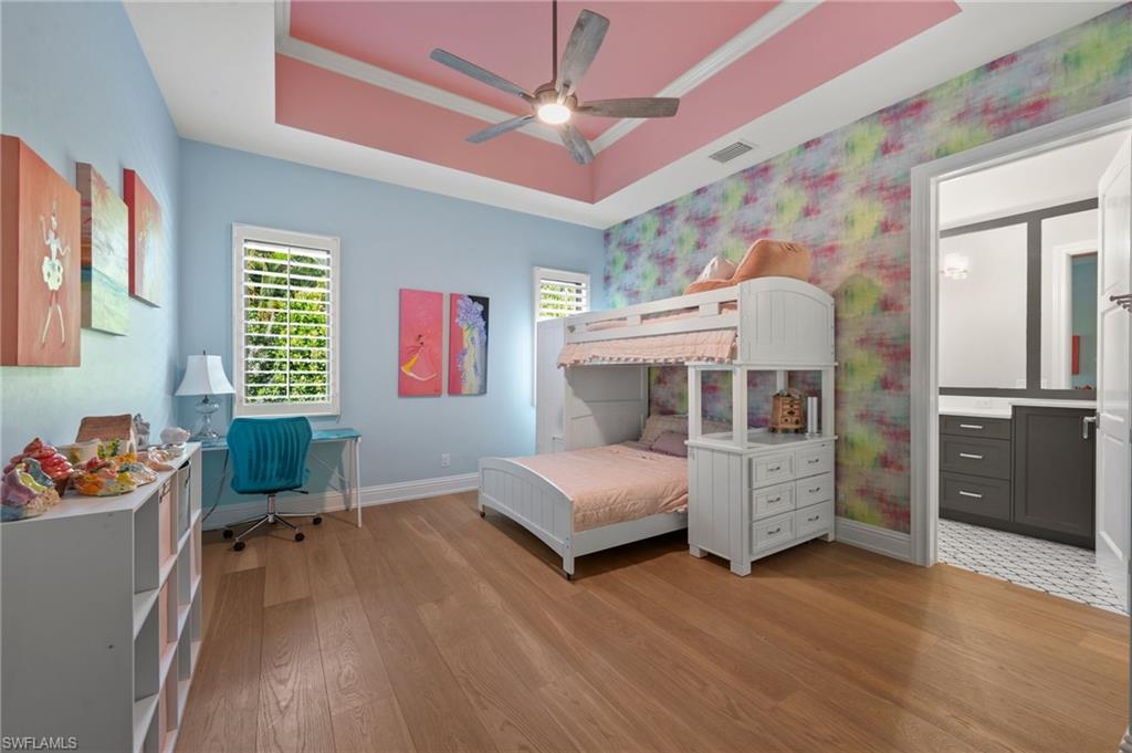 IMMEDIATE GOLF MEMBERSHIP AVAILABLE with this stunning custom home built by Florida Lifestyle. Elevated 16'1 feet above sea level and equipped with impact-resistant glass and a full-house generator, this home was meticulously designed for peace of mind and modern comfort. Every detail has been thoughtfully curated—from wide-plank Legno Bastone flooring to a 1,000-gallon propane tank, water filtration system, elevator, full security setup, and Sonos sound throughout. Beautifully furnished by Clive Daniel and Norris, this home is move-in ready for effortless Florida living. The chef’s kitchen is an entertainer’s dream, featuring dual porcelain islands, Thermador appliances, a wine refrigerator, and a spacious auto-lit walk-in pantry. A nearby bar area includes an additional wine fridge and seamlessly connects to the dining space for relaxed hosting.The luxurious primary suite offers a tranquil retreat with a custom ceiling accent, blackout shades, dual walk-in closets, and a spa-like bath with new shower heads and dual water closets. Two additional en-suite guest rooms are located on the main level in a split-bedroom layout, providing ultimate privacy.Take the elevator upstairs to a spacious fourth bedroom with double vanities and ample closet storage. This upper-level guest suite also features a lounge area, TV space, kitchenette, bar, and Sub-Zero wine cooler. The upstairs private screened lanai offers gorgeous golf views. On the main level, enjoy a generously sized laundry room with pull-out bins, extra cabinetry, a storage closet, and an additional refrigerator. The oversized four-car garage includes built-in storage, a refurbished four-seat “Hole In One” golf cart, and yet another refrigerator. For even more storage, a built-in mudroom with cubbies keeps everything organized. Entertain in style on the expansive lanai, featuring a beautiful wood ceiling, gas fireplace, covered lounging and dining areas, an air-conditioned pool bath, and a two-story panoramic cage. The fully equipped outdoor kitchen includes three TVs and custom drapes, creating an intimate yet chic setting for outdoor living. With western exposure and breathtaking water and golf course views, you’ll enjoy glorious sunsets from the gas-heated saltwater pool and spa.This home truly has it all—style, functionality, and luxury—ready for you to enjoy the ultimate Florida lifestyle.