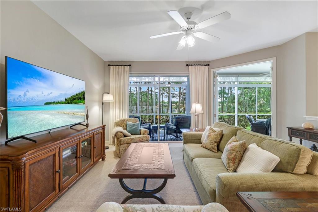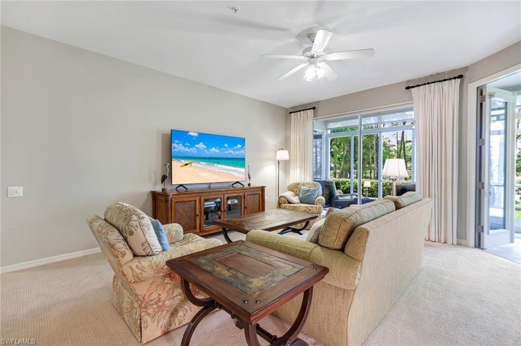 Vanderbilt Country club is an exceptional BUNDLED GOLF COMMUNITY with a well-respected golf course & driving range to islands. You can play golf on DAY one This well-maintained South facing first floor residence offers newer appliances and a breakfast nook opening to a enclosed spacious lanai. This highly sought-after carriage home, has a stunning view of the pond and nature preserve. The residence has an abundance of parking. First floor lends itself to the feeling that the entire course is your backyard. Multiple upgrades include quartz counters in kitchen and baths, newer faucets, stainless steel appliances, newer washer dryer completely furnished and turnkey. Recent updates include new paint, sprinkler systems installed on lanai, Golf cart included, Wi-Fi thermostat, and new entry lock. GOLF CART INCLUDED. Multiple pools, tennis, pickleball bocce dances, formal and casual restaurants and most importantly a friendly, fun-loving community enhance the lifestyle of all that come to live and visit. The Terrace bar is adjacent to the pool and island vibe. PT, personal training, with multiple classes, are at your back door. Main pool and designated bocce courts nearing completion with state-of-the art design and lap lines. Don't miss out on this one! Ready for the season! Don't miss out on this gem.