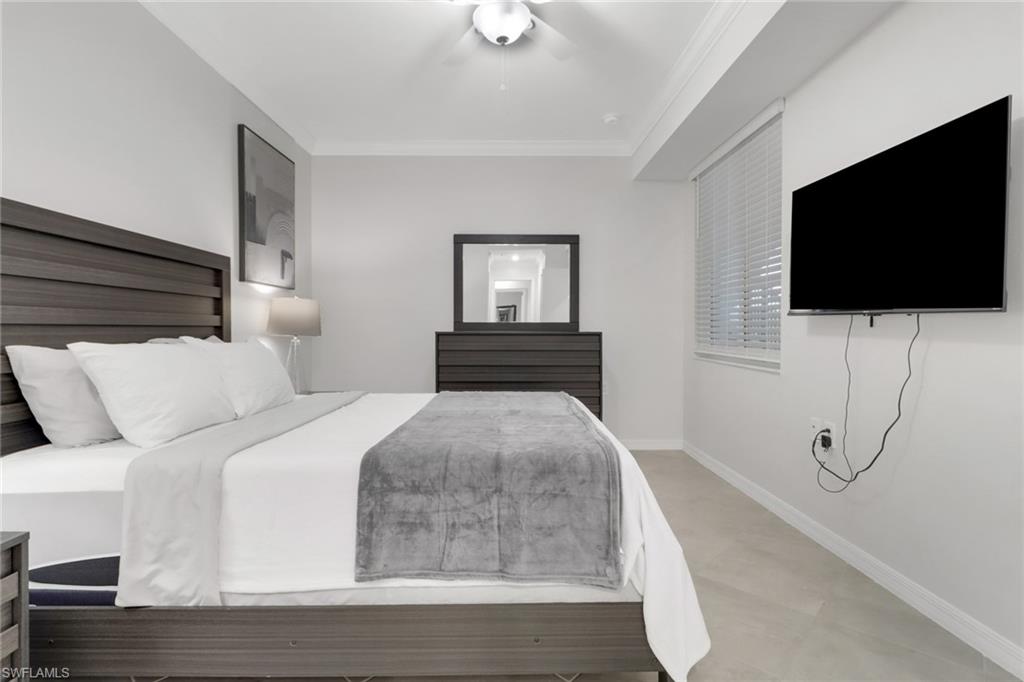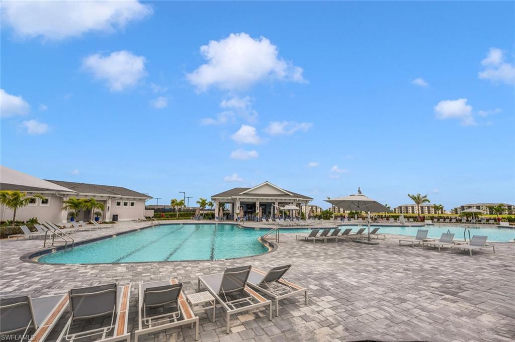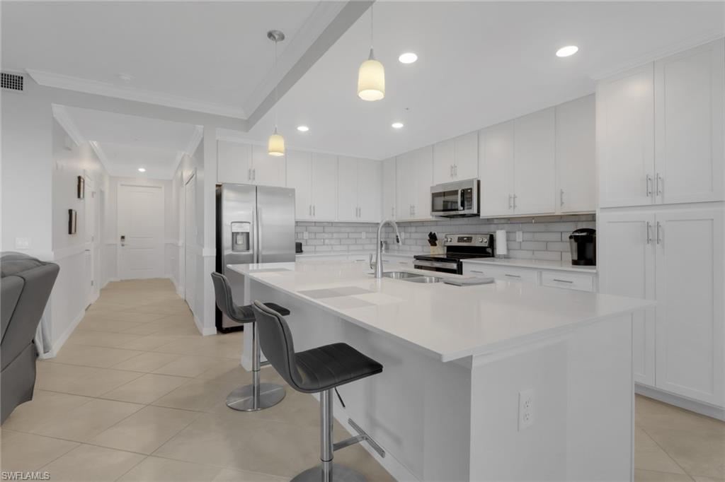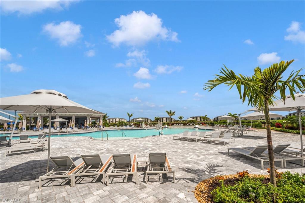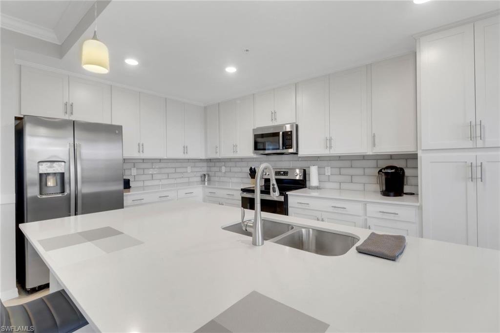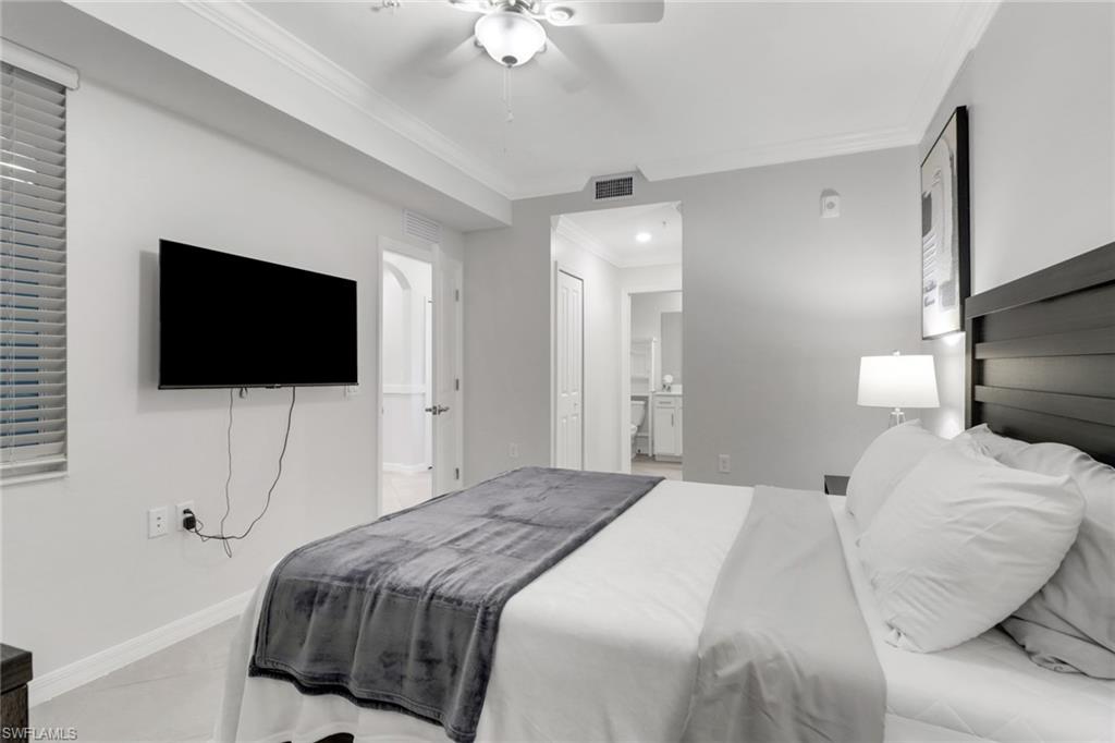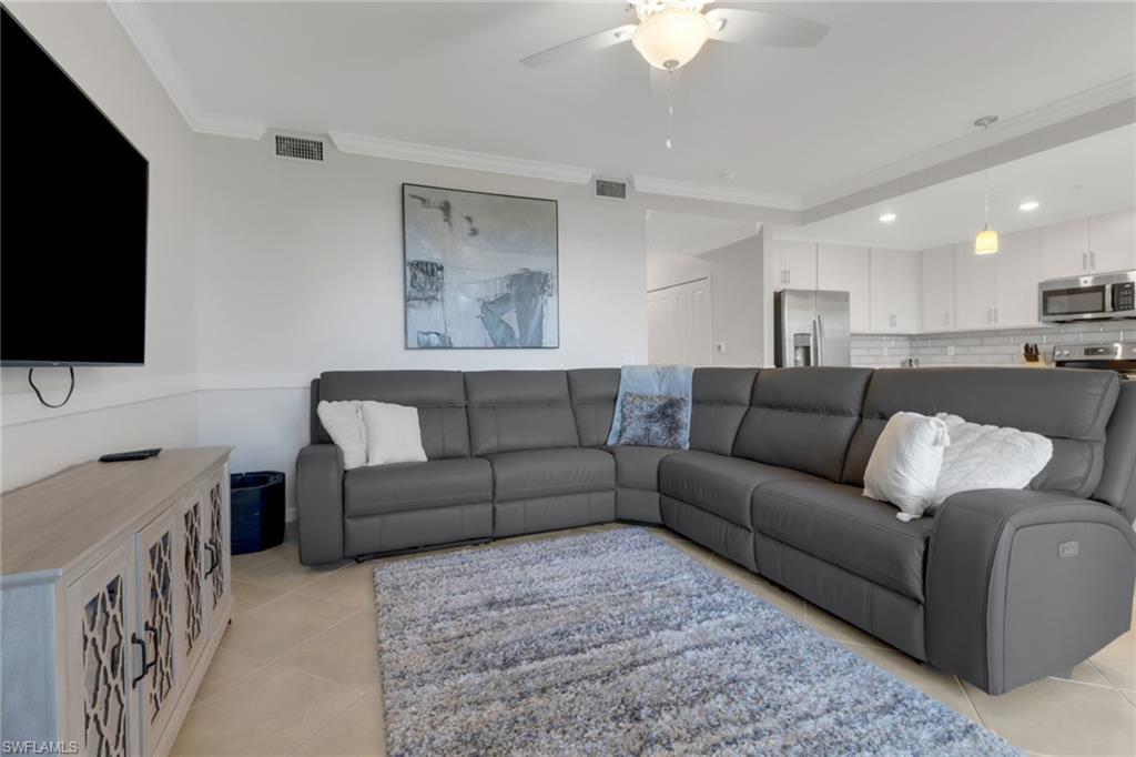 Step into this beautifully upgraded 2-bedroom, 2-bathroom first-floor condo, offered turnkey furnished with sleek, modern furnishings and a true designer touch. This like-new residence features tile flooring throughout, crown molding, chair rail detailing, and an upgraded backsplash, a perfect blend of style and comfort. Enjoy an open-concept layout with a spacious kitchen boasting a large island, ideal for entertaining or casual dining. Take in breathtaking golf course and lake views from your private lanai, offering a peaceful backdrop for morning coffee or sunset cocktails. Included with the home is a bundled golf membership, granting you immediate access to championship golf without substantial membership fees. The property also includes a deeded, covered parking space for added convenience. Located in a premier resort-style community featuring top-tier amenities such as on-site dining, a state-of-the-art fitness center, resort-style pools, and an impressive golf course, you’ll feel like you’re on vacation every day. This is luxury, convenience, and lifestyle all wrapped into one incredible opportunity.