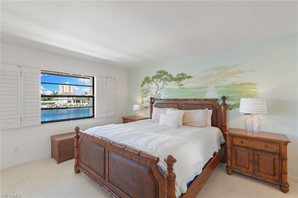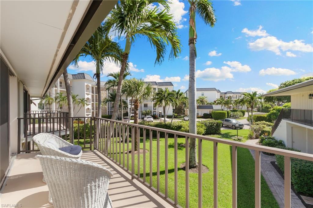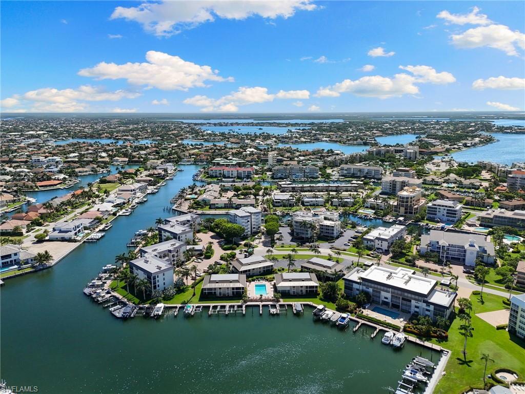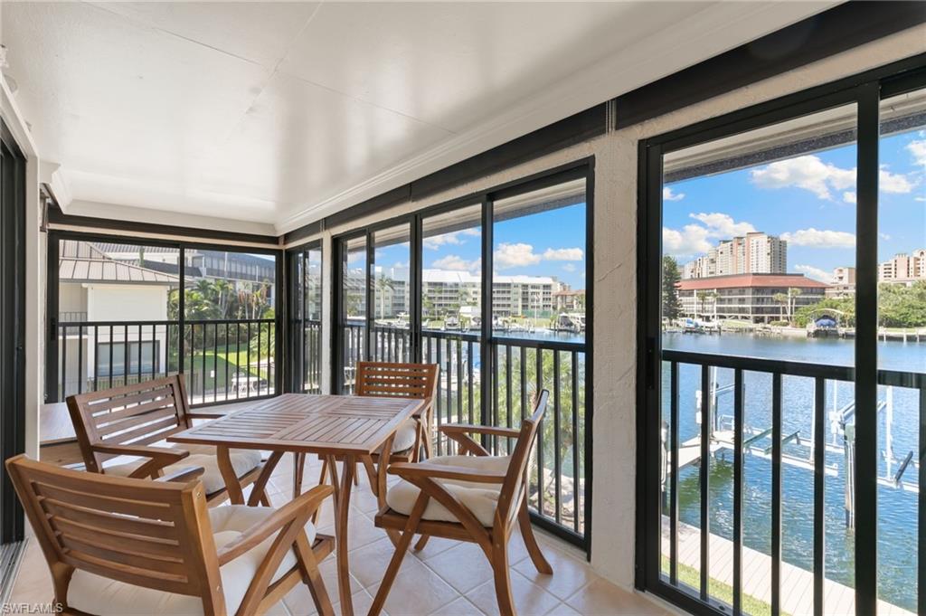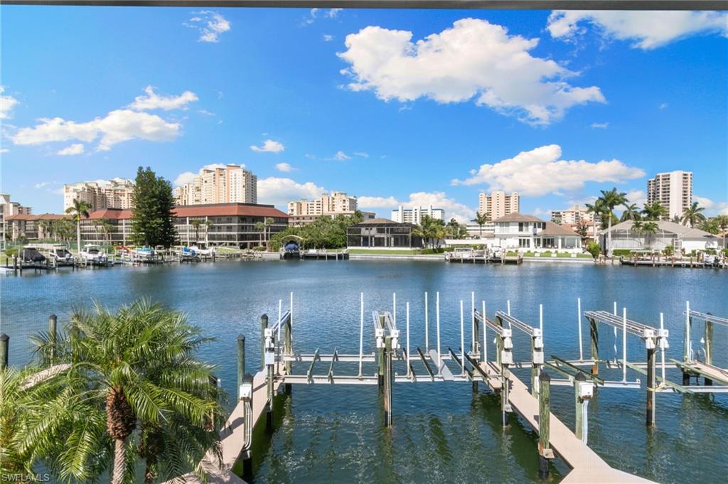 Discover boating bliss on Marco Island with this beautifully maintained 2 bedroom, 2 bathroom second floor condominium with magnificent wide water views, ideally located on the beloved south end of the Island. Flourish with direct water access by virtue of your DEEDED BOAT DOCK and 10,000 pound lift, perfect for cruising down Marco's iconic canals and finding the perfect fishing spot, setting anchor on one of the Ten Thousand Islands, or enjoying the natural wonders of the gulf. The split-bedroom floor plan offers privacy and comfort, while the pleasant living area opens to an ample-sized glassed-in lanai with western exposure and pocket sliders, providing sensational afternoon sunshine over a wide canal; access this lanai from a private door outside the unit as well! One lanai might sound lovely, but this unit boasts a second lanai as well, and each bedroom has access to their respective lanai. Enjoy a tastefully updated kitchen with granite countertops and exquisite modern cabinetry. The home includes numerous conveniences, including an in-unit washer and dryer, assigned parking, and a location offering a short distance to Marco Island's white sand beaches, restaurants, and shopping. The unit also possesses windows that include plantation shutters, perfect for controlling the natural light; additionally, primary lanai includes sun shades for when you need a break from the sunshine. Carpet and tile throughout. Whether you're looking for a permanent residence, seasonal getaway, or investment property, this waterfront gem seated on a picturesque canal is a must-see!