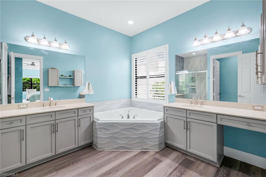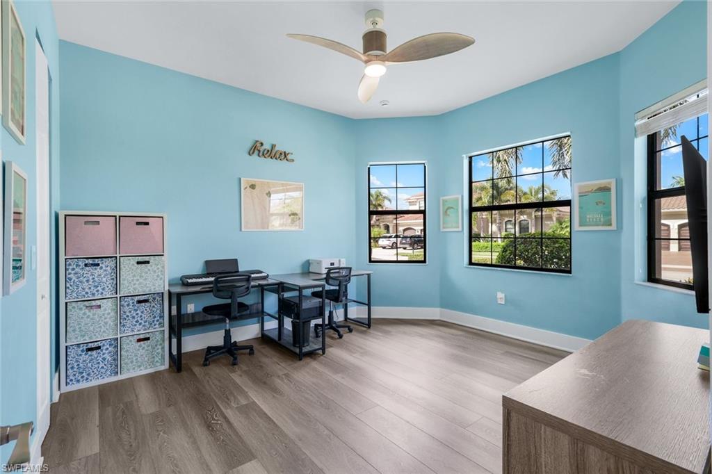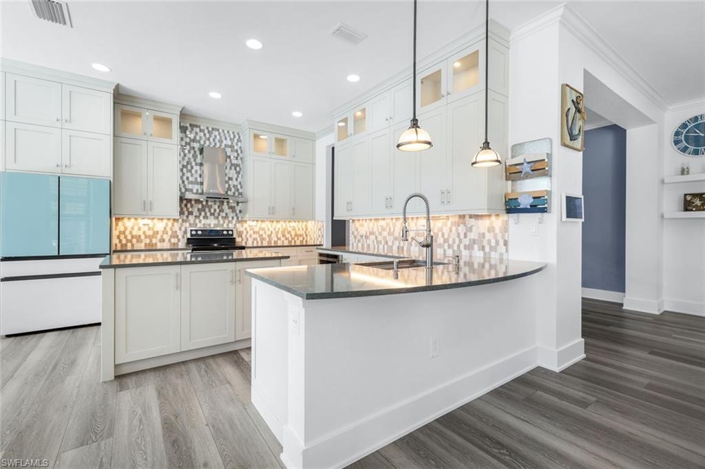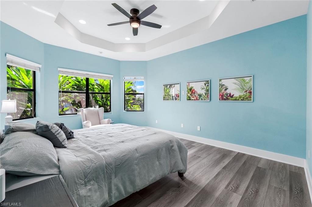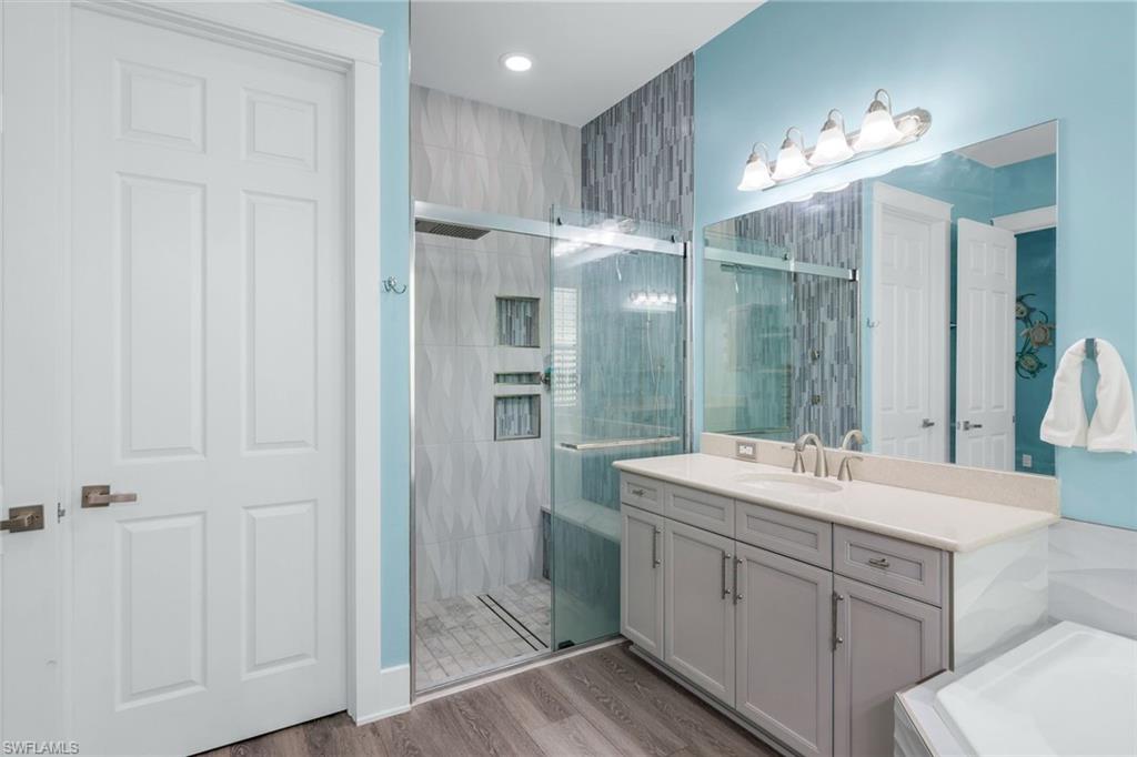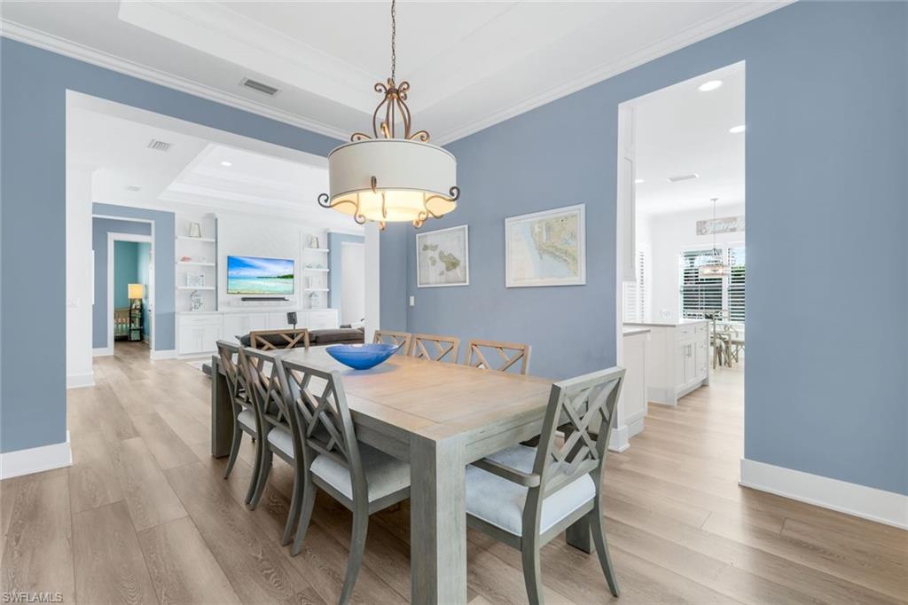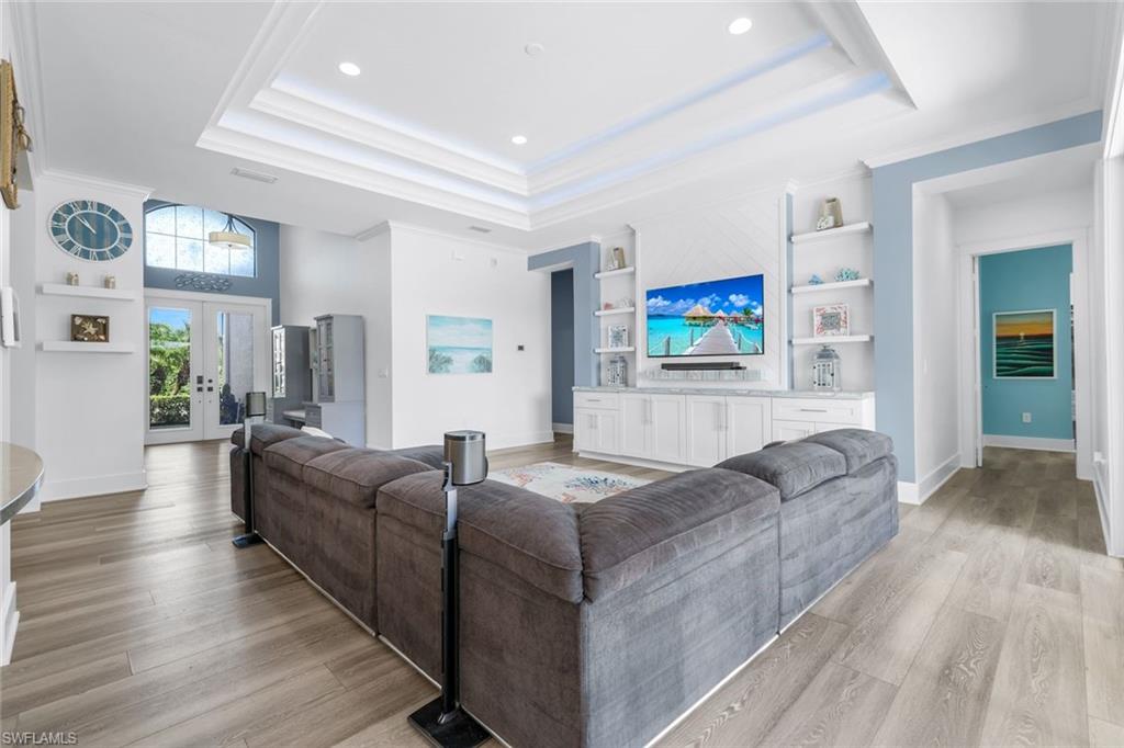 Escape the ordinary and discover your own private oasis. This updated Riverstone home offers 2,609 sq. ft. of beautifully refreshed living space and a backyard designed for both relaxation and play—perfect for enjoying the vibrant Naples lifestyle. Step inside and be greeted by a soaring 14-foot foyer that opens to a bright and inviting great room, complete with a custom built-in, shiplap accents and a dramatic double trey ceiling with color-changing uplighting. Entertain with ease in the remodeled gourmet kitchen featuring granite counters, floor-to-ceiling shaker cabinetry with glass accents and lighting, pull-outs, pot drawers, a vented hood, tile backsplash, and a central island. A Samsung Bespoke refrigerator, newer appliances, and a casual dining nook complete the chef’s dream space. The spacious primary suite is a true retreat, offering room for a sitting area, two custom walk-in closets, and a stunning updated bath with frameless glass shower, rain head and jets, a liner drain, and re-tiled tub surround. There’s room for everyone with three additional bedrooms, with versatility to use one as a den, office, or hobby room, plus two guest baths. Fine finishes include built-in closets throughout, LVP flooring, plantation shutters, tall baseboards and crown molding. A finished laundry room with 2024 LG washer/dryer, cabinets, and sink add both function and style. Peace of mind comes with a new A/C system (2024) with UV light and Iflow cleaning system. Out back, discover your own outdoor oasis. A custom, extra-large heated saltwater pool (2022) with sandblasted marble paver lanai anchors a private, fully fenced, landscaped setting. Relax or dine under the covered lanai, enjoy music through outdoor speakers, and let evenings glow with permanent LED soffit lighting. A fenced yard with lush landscaping and playset makes it as practical as it is fun. Located in Riverstone, a social, vacation-inspired community zoned for "A" rated schools. Recreation area includes a fitness center, social hall, resort & lap pools, spa, 5 Har-Tru tennis courts, basketball & pickleball court, tot lot & activities coordinator. Why wait for a vacation to feel tranquility when you can experience paradise every day?