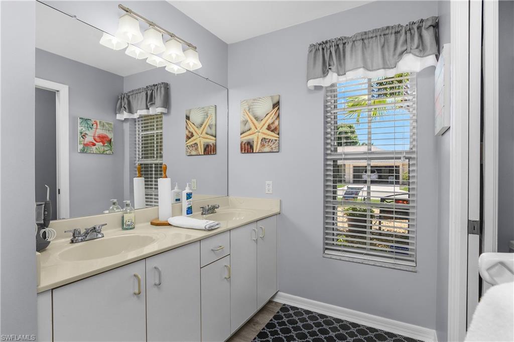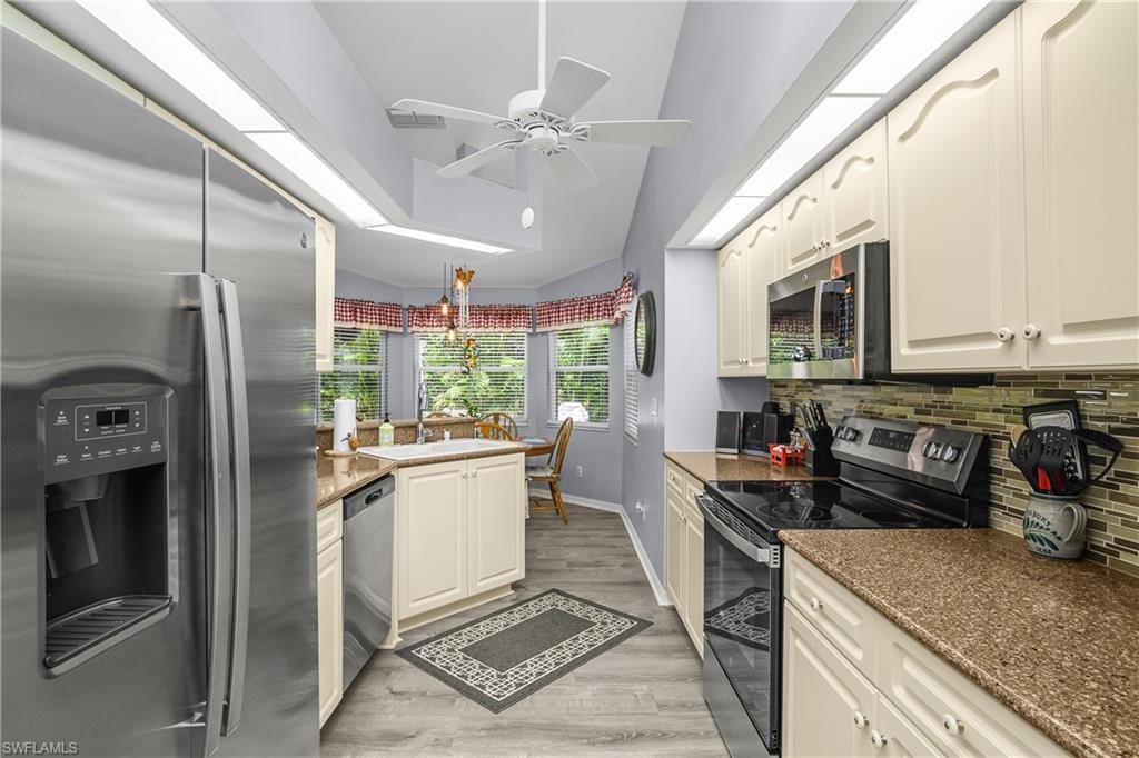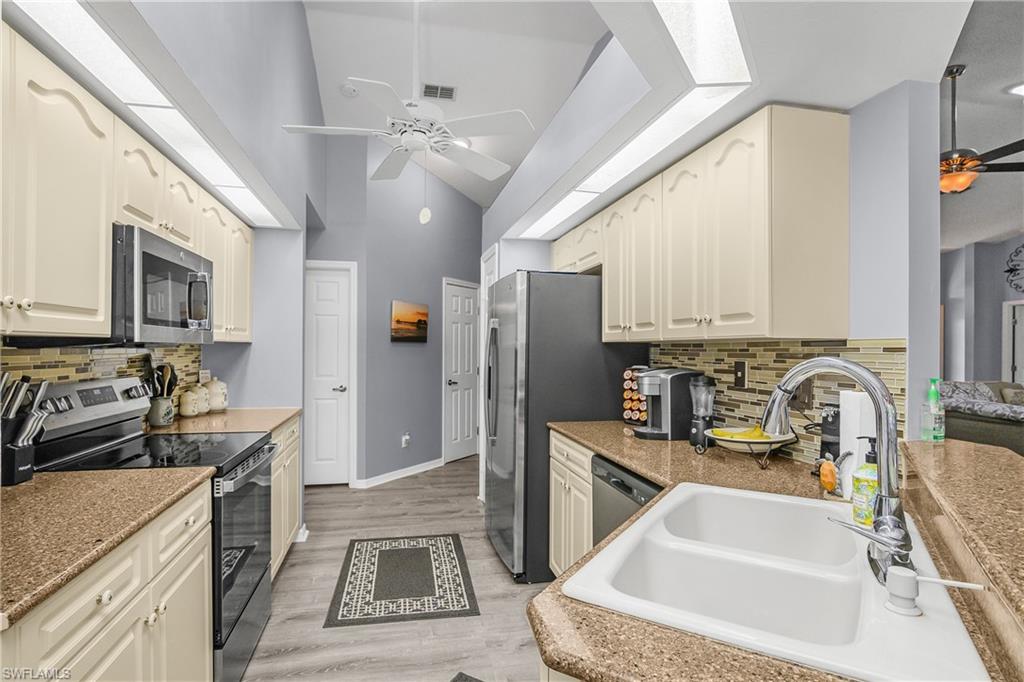 X-Flood zone, no flood insurance is required here! Fountain Lakes has a history of doing incredibly well in the hurricanes but yet is a short drive to the beach! This 3-bedroom 2-bath gem offers a private backyard for all your barbeques & outdoor get-togethers. The kitchen stands out with its sleek new stainless steel appliances installed in July 2025, quartz countertops and upgraded cabinetry. The primary suite offers a walk-in closet and a beautiful on-suite bathroom. Both bathroom showers in the home were tastefully remodeled in 2025 and feature stunning new tile. The entire house is connected through a Luxury Lifeproof Floor. Step outside to enjoy the expanded paver patio and professionally landscaped yard. Whether sipping your morning coffee in the lanai or hosting friends in the backyard, this home makes outdoor living a daily pleasure. Fountain Lakes is well-known for doing very well in the hurricanes, it's convenient location to Coconut Point Mall, low HOA fees—just $380 quarterly—while offering a long list of amenities. Residents enjoy a 9-hole golf course (included with HOA), a community pool, tennis, bocce, shuffleboard, pickleball, a fitness center, library, billiards, BBQ and picnic areas, a clubhouse, and walking trails. It’s a welcoming neighborhood that encourages an active and social lifestyle. This home’s unbeatable location puts you minutes from world-class shopping, dining, beaches, medical facilities, and RSW Airport. Whether you’re looking for a full-time residence or a seasonal retreat, this property offers so much. Come see why Fountain Lakes remains one of Estero’s most beloved communities.