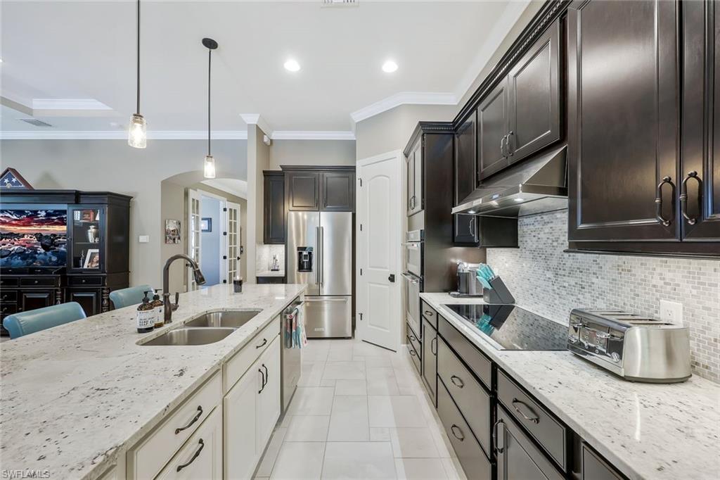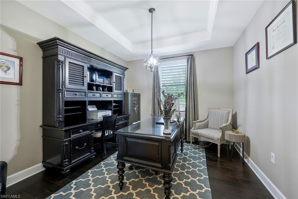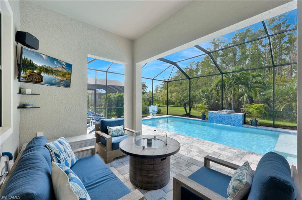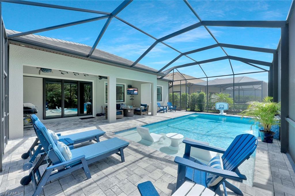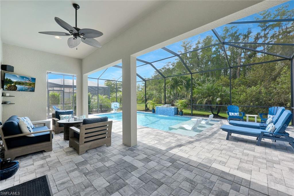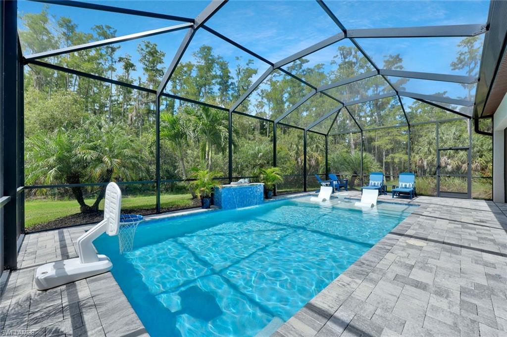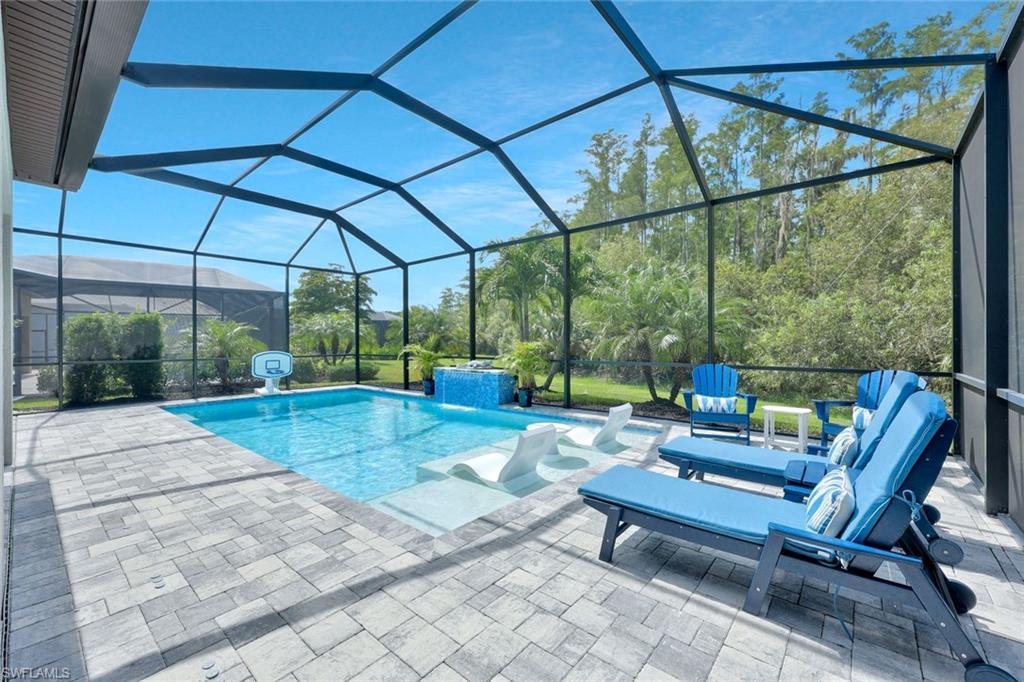Stunning custom built pool home (Summerwood model) in absolute pristine condition. This home is outfitted with 3 large bedrooms, an enclosed office, and 2 bathrooms. Hurricane impact windows and doors, extended driveway, custom built pool with southern exposure overlooking the expansive preserve. Interior upgrades include granite counter tops, two tone 42' kitchen cabinets, built-in kitchen appliances, crown molding, plantation shutters, extended living room, walk-in master shower, Monte Carlo fans, solid wood interior doors, and more. Being Sold Partially Furnished! Corkscrew Shores is a resort styled community in the heart of Estero; amenities include 24 hours gates, clubhouse, pool/spa, restaurant, fitness facility, pickleball, tennis, kayak launch, nature trail and more. NO CDD & NOT IN A FLOOD ZONE!